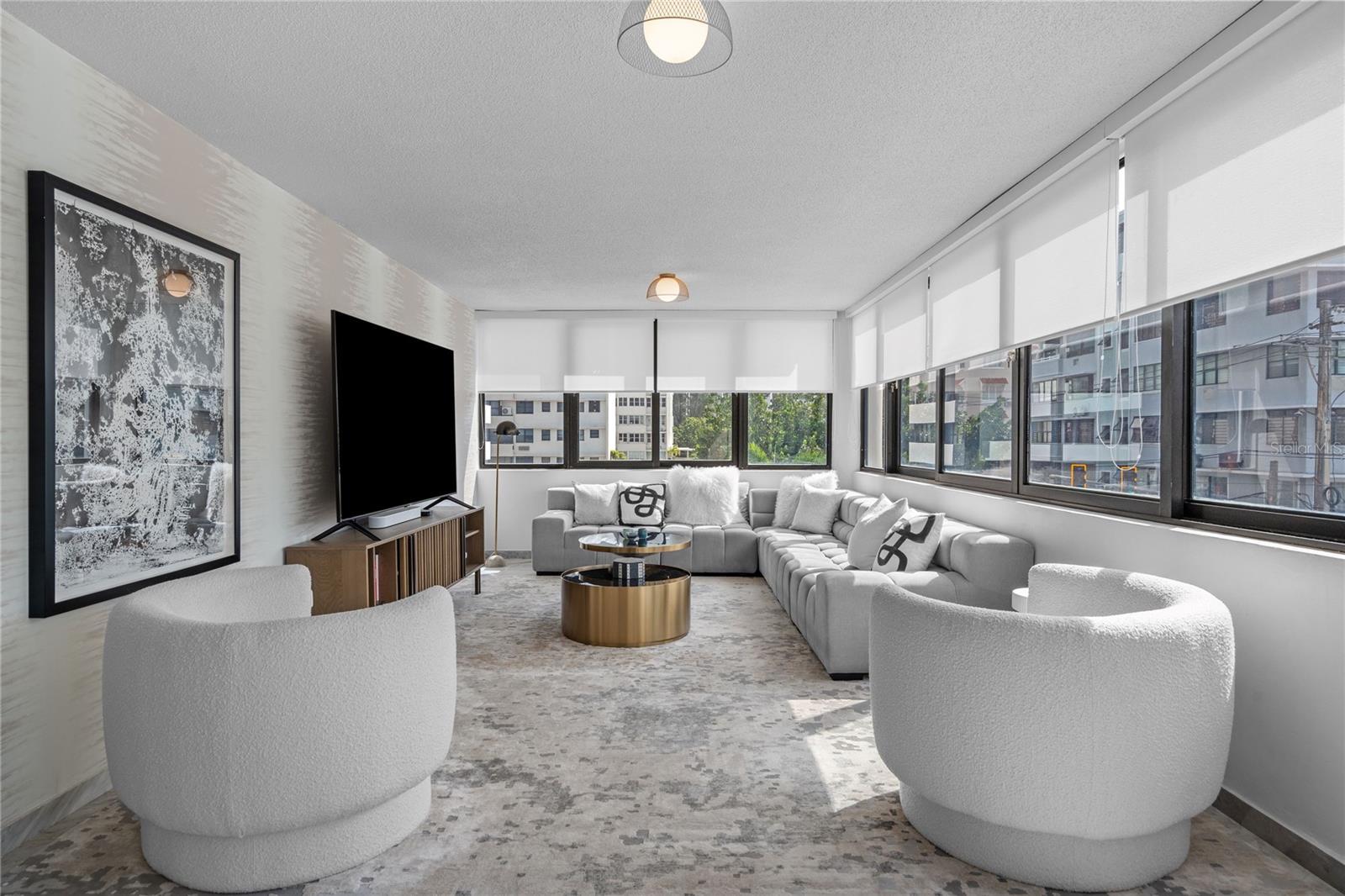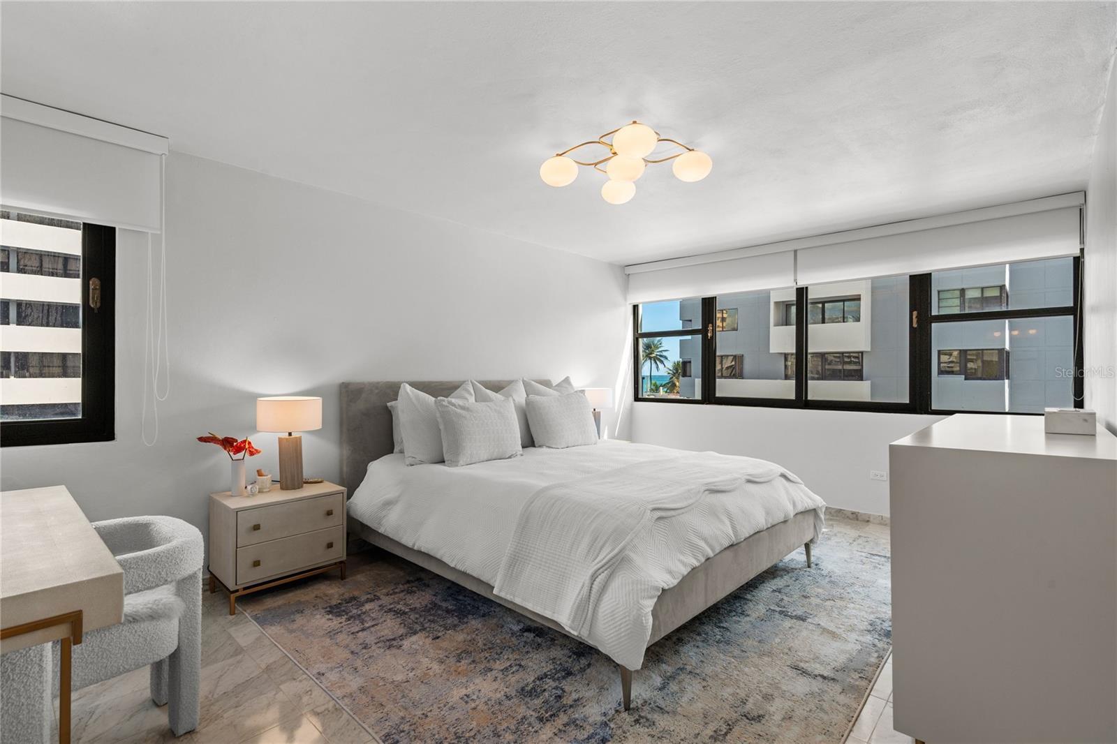 This spacious 4-bedroom, 3-bath residence spans 2,249 sq. ft. and is located on the 3rd floor of La Ceiba Condominium, offering city and ocean views. The home features an ideal layout with a bright, open-concept living space. As you enter, you're welcomed by a seating area that flows seamlessly into the dining area, remodeled kitchen, and a cozy media area — perfect for both entertaining and everyday living. The first bedroom and full bath, featuring stunning views, sit just off the media room. The remaining three bedrooms and two baths are located to the left of the main entrance, providing privacy and comfort. The kitchen and all bathrooms were fully remodeled, adding a modern touch throughout the home. Additional conveniences include 3 designated parking spaces (2 covered and 1 uncovered). La Ceiba Condominium offers partial security, a full power generator, and a water cistern for peace of mind. Centrally located, it’s just two blocks from St. John’s and Robinson School, 2 blocks away from the park and Condado/Ocean Park beach, and near restaurants, grocery stores, pharmacies, offices, and more.