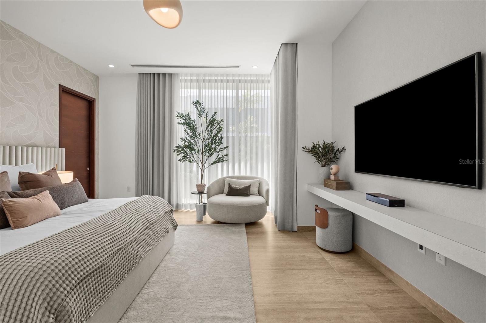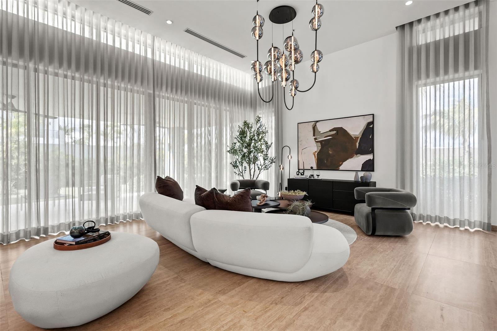 - Built-in Features, Eat-in Kitchen, High Ceilings, Kitchen/Family Room Combo, Living Room/Dining Room Combo, Open Floorplan, Primary Bedroom Main Floor, Smart Home, Stone Counters, Walk-In Closet(s), Window Treatments