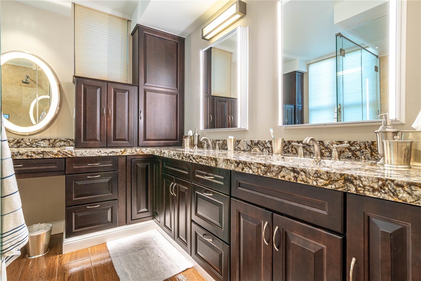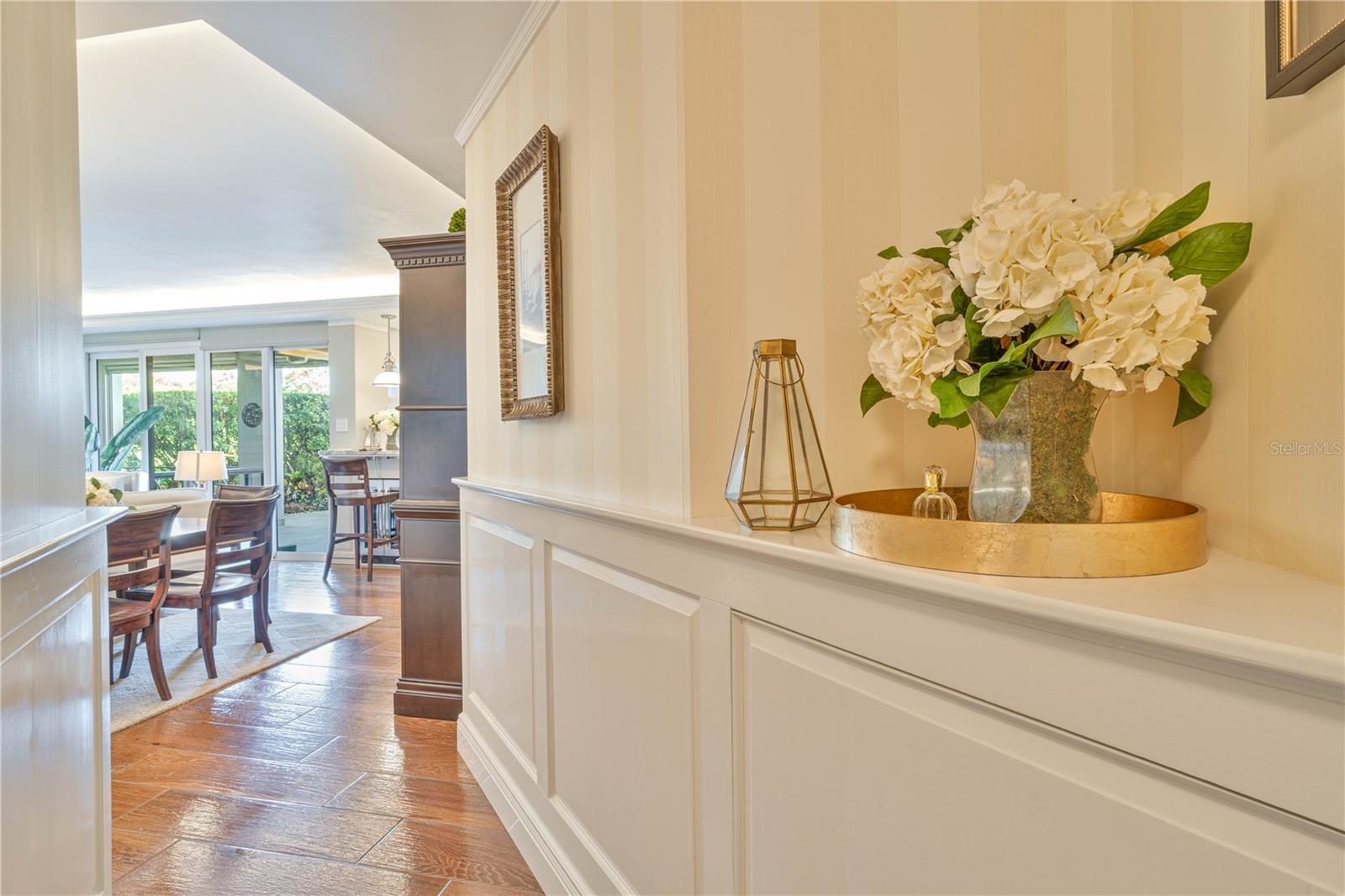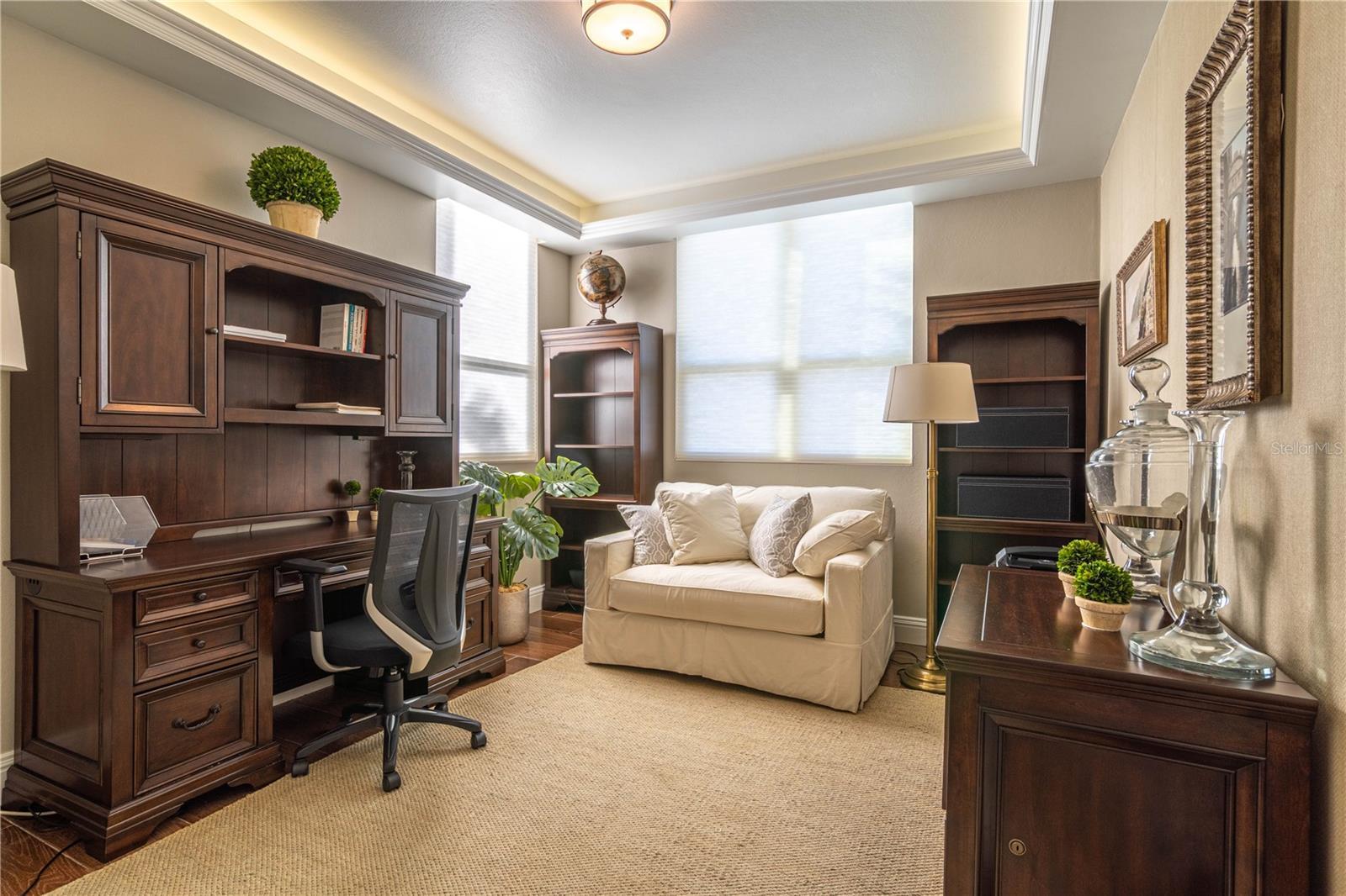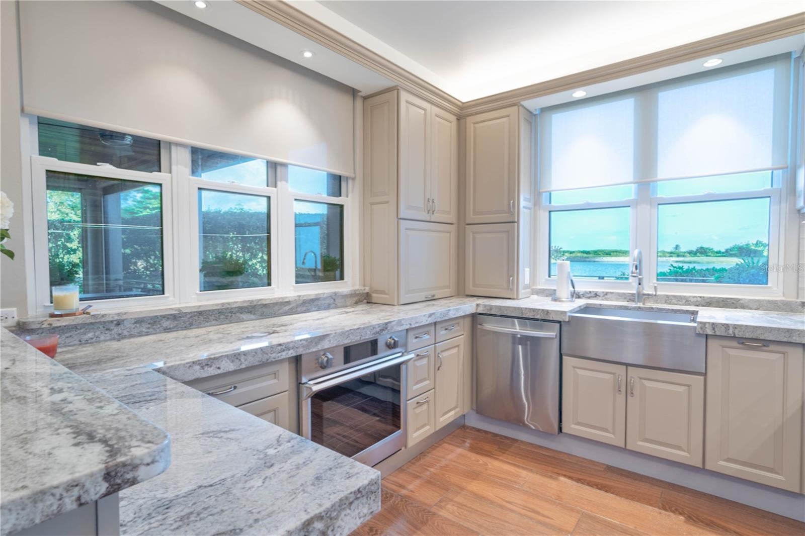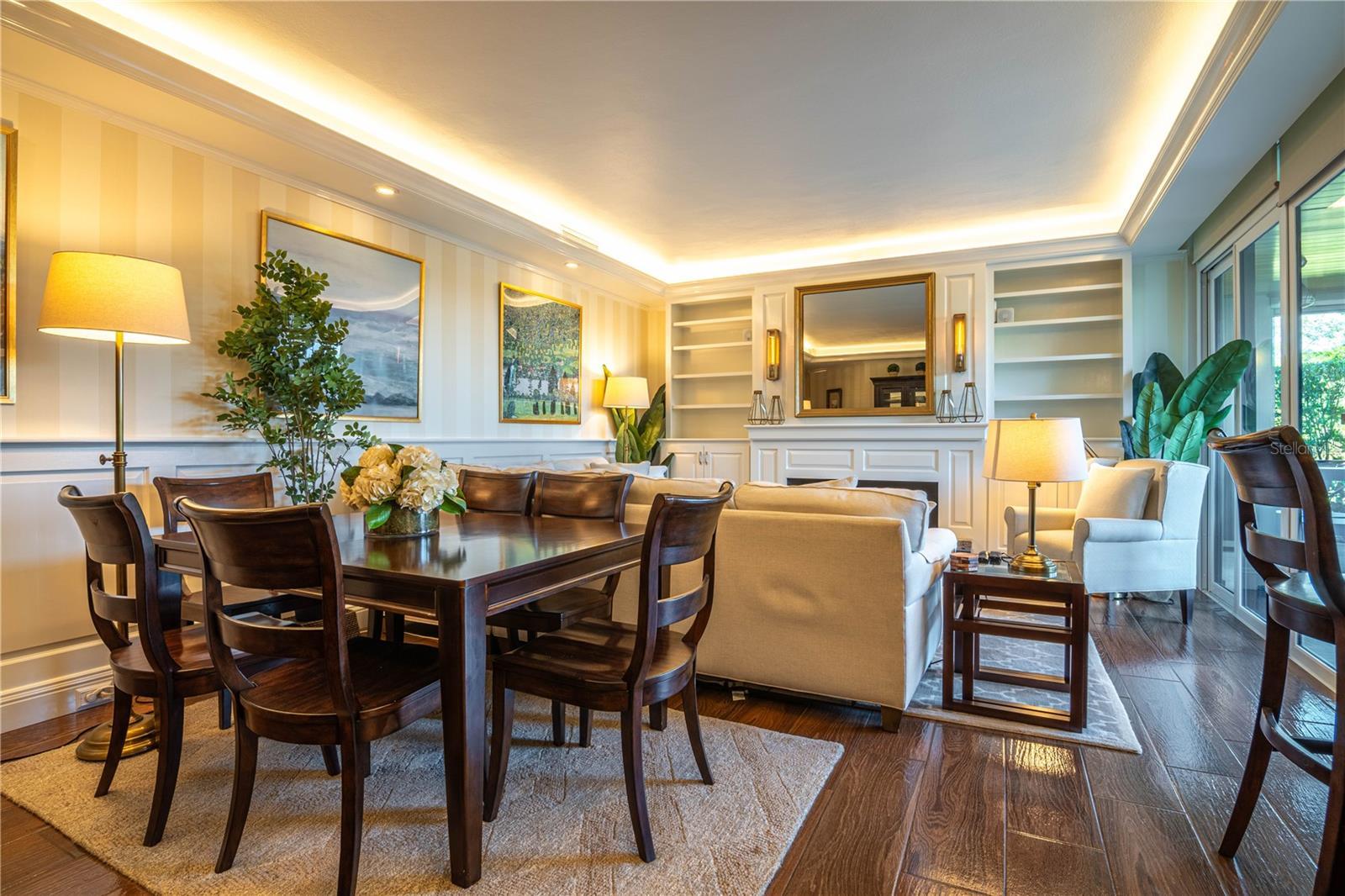 - Built-in Features, Crown Molding, Eat-in Kitchen, Living Room/Dining Room Combo, Solid Wood Cabinets, Stone Counters, Walk-In Closet(s), Window Treatments