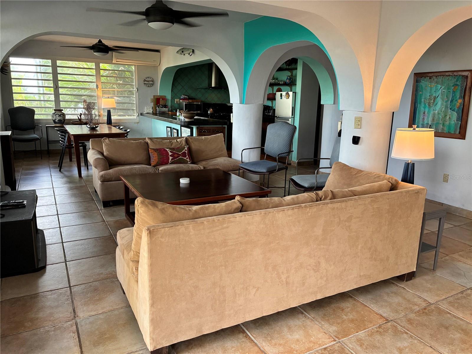 elcome to Wind Dancer, a rare opportunity in the coveted beachside enclave of Bravos de Boston, where the sound of the waves and the rhythm of passing pelicans become part fo daily life. Perfectly positioned to capture the very best of the Vieques coastline, this two-unit property is ideal as a full-time residence, an income-producing investment, or a flexible multi-generational home. Owner's Unit- Upper Level The spacious upper-level residence offers three bedrooms (one currently used as a den), two full bathrooms, and an elegant, airy layout designed for comfortable island living. A generous dining room flows for easily entertaining and memorable meals The L-shaped kitchen provides abundant prep space and storage A very large home office makes remote work effortless, while the oversized utiltiy/laudry room adds exceptional convenience. Multiple outdoor sitting areas invite you to relax with sweeping, uninterrupted ocean views. Lower Unit - Guest Suite or Rental Income The lower-level residence features two bedrooms, two bathrooms, and a bright open floor plan that combines kitchen, dining and living room into one inviting space. Like the upper unit, it offers several outdoor terraces with dramatic views of the sea. Ideal as a guest suite, rental unit, multi-generational living or a caretaker's apartment. Life at Wind Dancer is deeply connected to the ocean. From the property, you can see and hear the waves, watch pelicans and seabirds glide past at eye level, and enjoy a daily show of island acitivity: Fishing boats heading out at sunrise and later returning with their daily catch Pleasure boats and yachts skimming across turquoise water Iconic views of Rompeolas Pier, the main island of Puerto Rico, Culebra and St. Thomas The property is surrounded by unique tropical gardens, thoughtfully landscaped to create color, privacy, and a true sense of Caribbean sanctuary. There are three off-street parking spaces. The house is solid concrete construction and is designed to maximize breezes, natural light, and the home's exceptional panorama. Wind Dancer offers a lifestyle defined by ocean vistas, cooling trade winds, and effortless access to beach-side living. With its flexible two-unit layout, generous spaces, and some of the most dramatic beach-side views in Bravos de Boston, this property stands out as an extraordinary opportunity on Vieques Island.