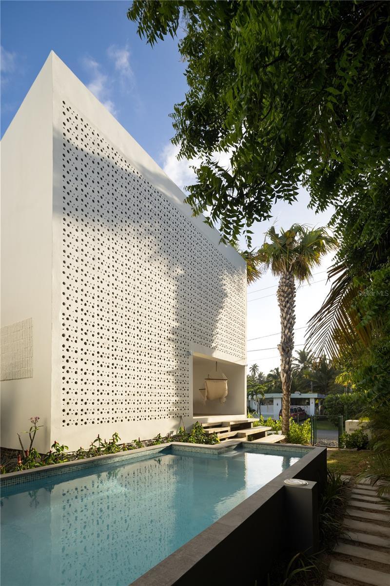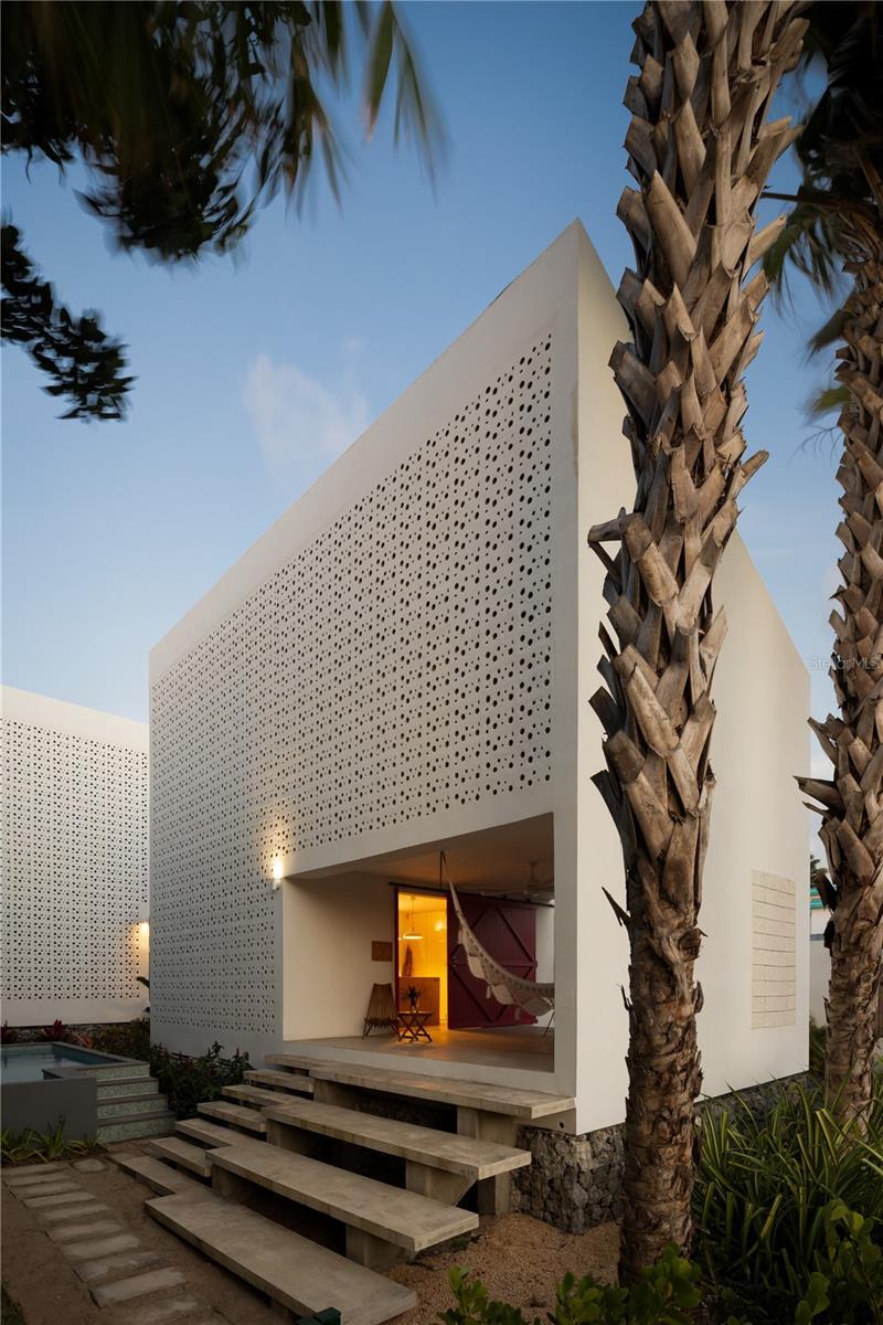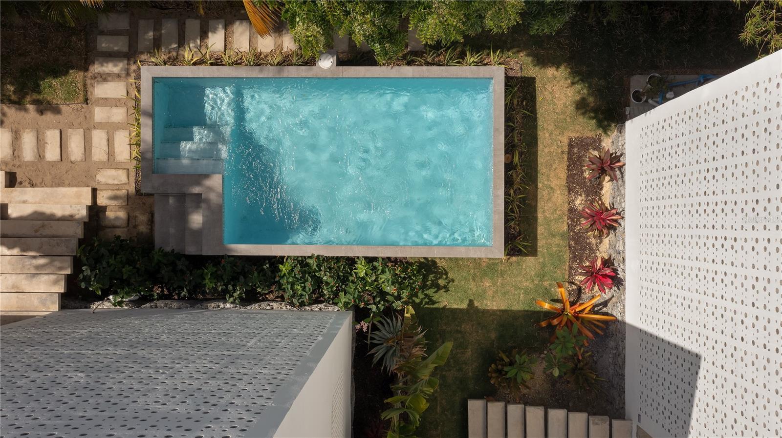 Casa Bajura is a 2,700 sq. ft. architectural compound composed of two independent yet identical villas, each with three bedrooms and en-suite bathrooms, located in Isabela, Puerto Rico, on a quiet local dead-end street with direct beach access. The project is conceived as a space of creative hospitality, where architecture, landscape, and daily life exist in constant dialogue. For those who appreciate architecture and design as a way of life, Casa Bajura is a truly special property. It is a singular architectural piece, designed to be lived in and shared, transcending the definition of a conventional residence. The two villas mirror each other in design, proportion, and spatial logic, reinforcing visual clarity while allowing flexibility of use. Their relationship is articulated through shared circulation, landscaped pathways, and outdoor spaces that create a cohesive yet adaptable living environment, balancing privacy with collective experience. Defined by pure volumes, white surfaces, and the prominent use of breeze blocks, the architecture establishes a strong visual identity while enabling permanent cross-ventilation and filtering daylight into shifting patterns. Light, shade, texture, and natural ventilation are integral to the design, generating a continuous connection between interior and exterior spaces through open corridors, intermediate patios, generous balconies, and double-height areas. Each villa is organized over two levels with a clear and balanced layout designed to maximize versatility, spatial fluidity, and environmental responsiveness. Access is through a covered terrace or balcony that functions as a transitional threshold between outside and inside, immediately introducing the core experience of the home: filtered light, shade, cross-ventilation, and a constant connection to the tropical surroundings. On the first level, an integrated kitchen forms the social heart of the villa, flowing seamlessly into a flexible multi-purpose area that can function as an additional bedroom, family room, studio, or shared living space. This area includes a full en-suite bathroom, allowing it to operate as an independent suite when needed, while floor-to-ceiling folding doors open laterally to dissolve boundaries, enhancing natural light, ventilation, and spatial continuity. The second level accommodates two additional bedrooms per villa, each with its own en-suite bathroom. Each bedroom incorporates an adjacent space defined by floor-to-ceiling glass folding doors, which can be fully opened or closed as desired, functioning as a natural extension of the room for focused work, reading, creative activity, or quiet contemplation. The landscape operates as an essential architectural component, with native and adapted species used to guide circulation, create microclimates, and attract biodiversity. A central reflective pool connects the two villas, enhancing light, views, and spatial continuity. Every element of Casa Bajura, from the breeze blocks to curated furnishings and artworks, reinforces its architectural coherence and modernist coastal aesthetic. Currently operating as a boutique Bed & Breakfast with tourism tax incentives, the property also supports use as a shared beach residence, private coastal compound, or hybrid live-and-rent lifestyle, making Casa Bajura a versatile, site-specific example of contemporary tropical architecture with lasting value.