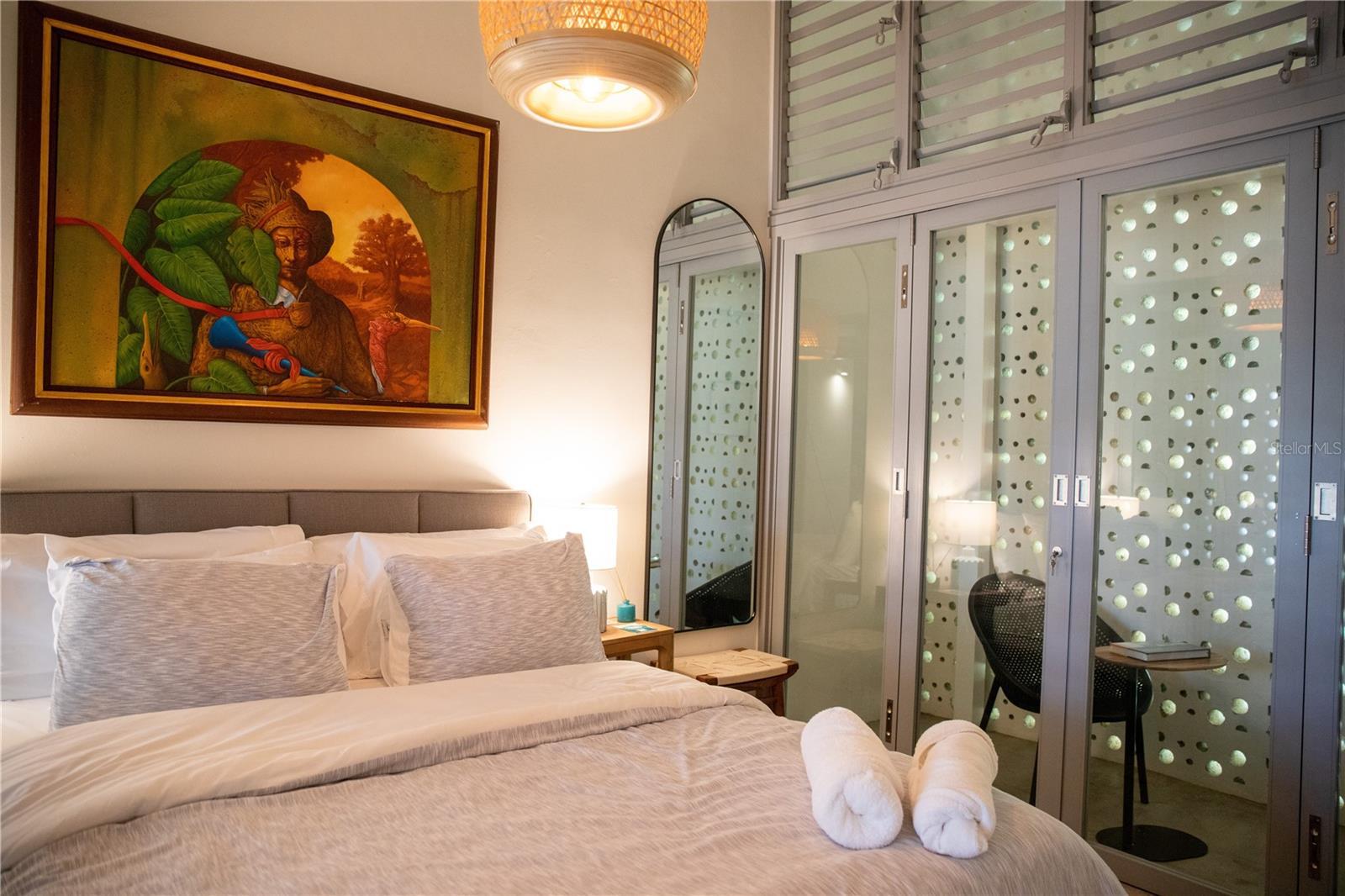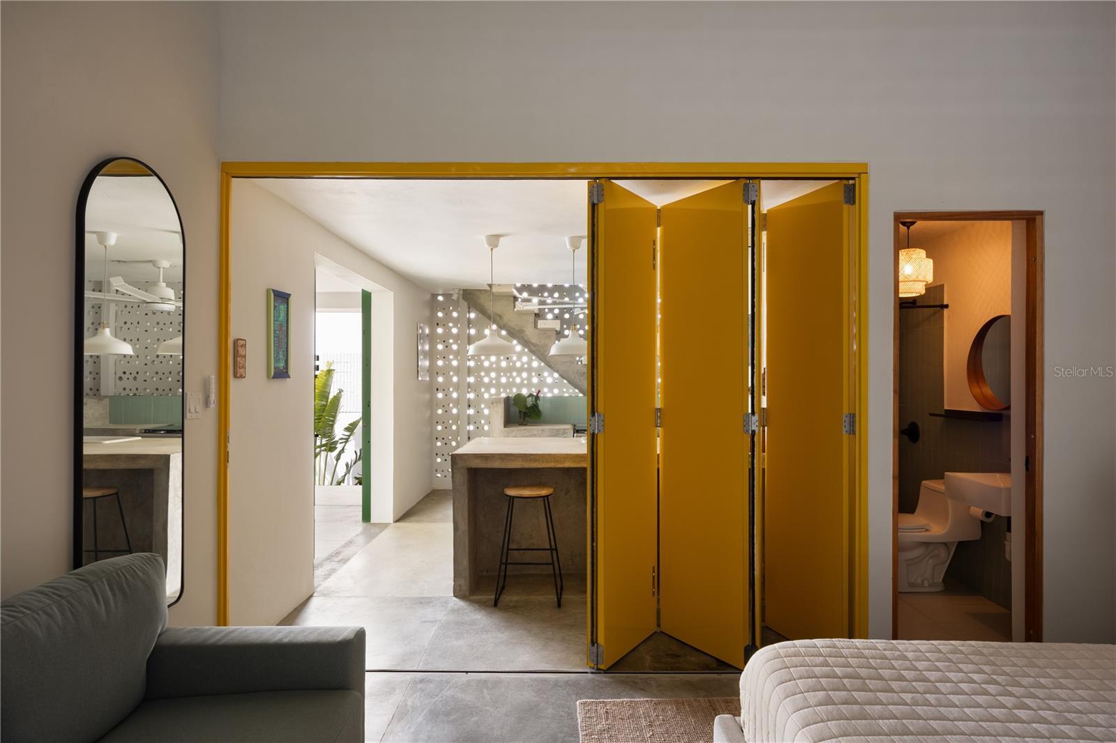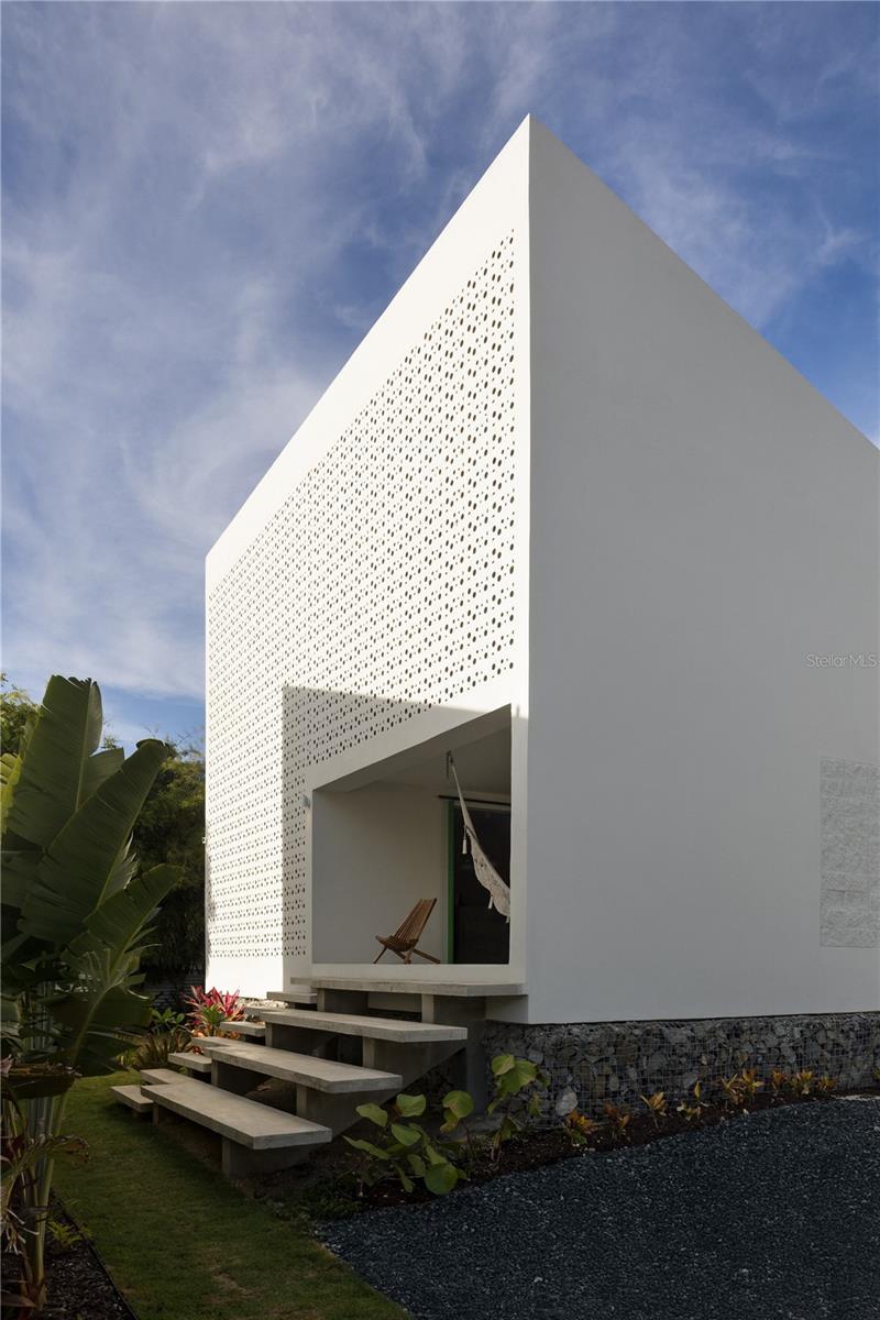 Casa Bajura is a 2,700 sq. ft. architectural compound composed of two independent yet identical villas, each with three bedrooms and en-suite bathrooms, located in Isabela, Puerto Rico, on a quiet local dead-end street with direct beach access. The project is conceived as a space of creative hospitality, where architecture, landscape, and daily life exist in constant dialogue. For those who appreciate architecture and design as a way of life, Casa Bajura is a truly special property. It is a singular architectural piece, designed to be lived in and shared, transcending the definition of a conventional residence. The two villas mirror each other in design, proportion, and spatial logic, reinforcing visual clarity while allowing flexibility of use. Their relationship is articulated through shared circulation, landscaped pathways, and outdoor spaces that create a cohesive yet adaptable living environment, balancing privacy with collective experience. Defined by pure volumes, white surfaces, and the prominent use of breeze blocks, the architecture establishes a strong visual identity while enabling permanent cross-ventilation and filtering daylight into shifting patterns. Light, shade, texture, and natural ventilation are integral to the design, generating a continuous connection between interior and exterior spaces through open corridors, intermediate patios, generous balconies, and double-height areas. Each villa is organized over two levels with a clear and balanced layout designed to maximize versatility, spatial fluidity, and environmental responsiveness. Access is through a covered terrace or balcony that functions as a transitional threshold between outside and inside, immediately introducing the core experience of the home: filtered light, shade, cross-ventilation, and a constant connection to the tropical surroundings. On the first level, an integrated kitchen forms the social heart of the villa, flowing seamlessly into a flexible multi-purpose area that can function as an additional bedroom, family room, studio, or shared living space. This area includes a full en-suite bathroom, allowing it to operate as an independent suite when needed, while floor-to-ceiling folding doors open laterally to dissolve boundaries, enhancing natural light, ventilation, and spatial continuity. The second level accommodates two additional bedrooms per villa, each with its own en-suite bathroom. Each bedroom incorporates an adjacent space defined by floor-to-ceiling glass folding doors, which can be fully opened or closed as desired, functioning as a natural extension of the room for focused work, reading, creative activity, or quiet contemplation. The landscape operates as an essential architectural component, with native and adapted species used to guide circulation, create microclimates, and attract biodiversity. A central reflective pool connects the two villas, enhancing light, views, and spatial continuity. Every element of Casa Bajura, from the breeze blocks to curated furnishings and artworks, reinforces its architectural coherence and modernist coastal aesthetic. Currently operating as a boutique Bed & Breakfast with tourism tax incentives, the property also supports use as a shared beach residence, private coastal compound, or hybrid live-and-rent lifestyle, making Casa Bajura a versatile, site-specific example of contemporary tropical architecture with lasting value.