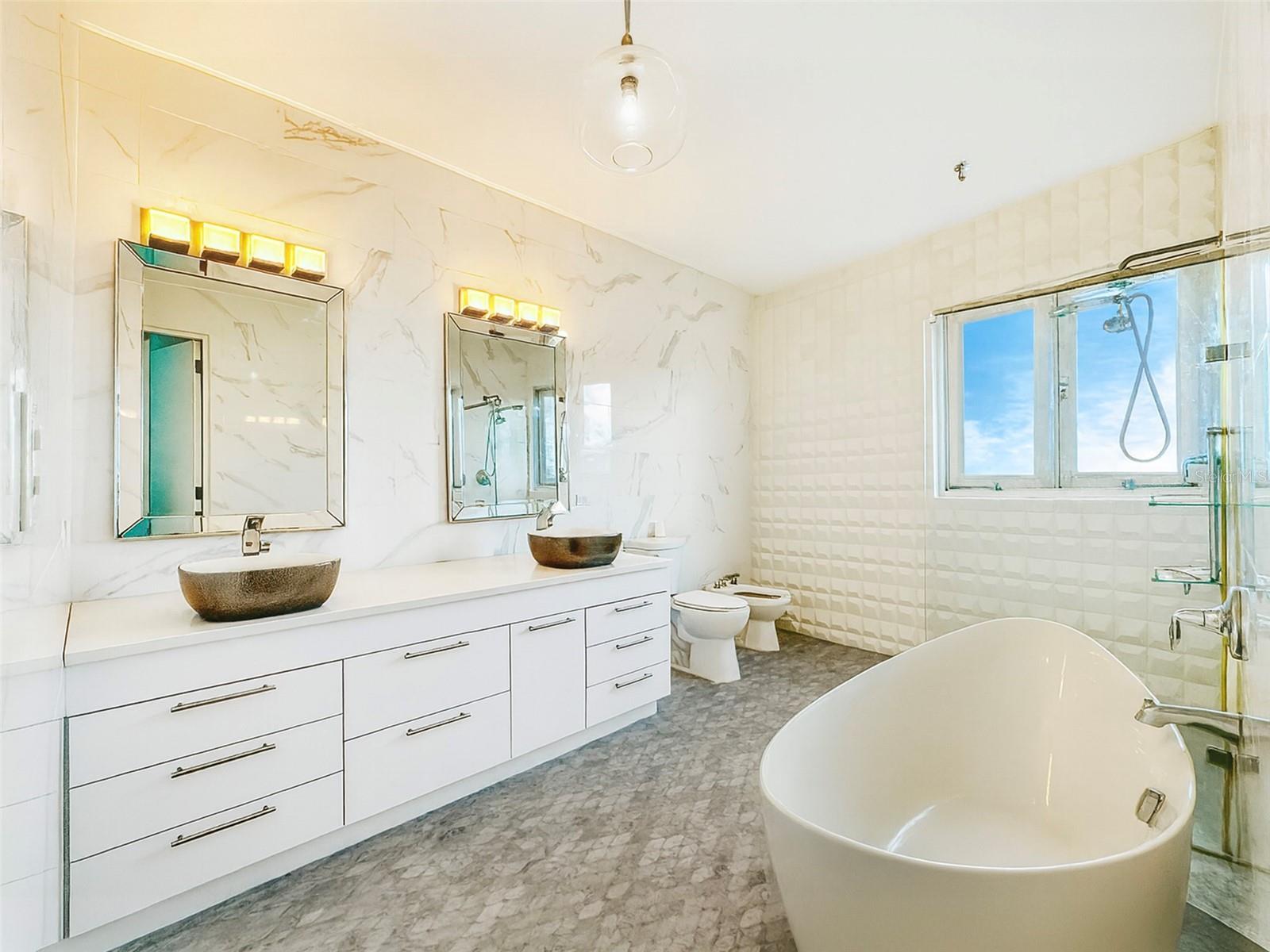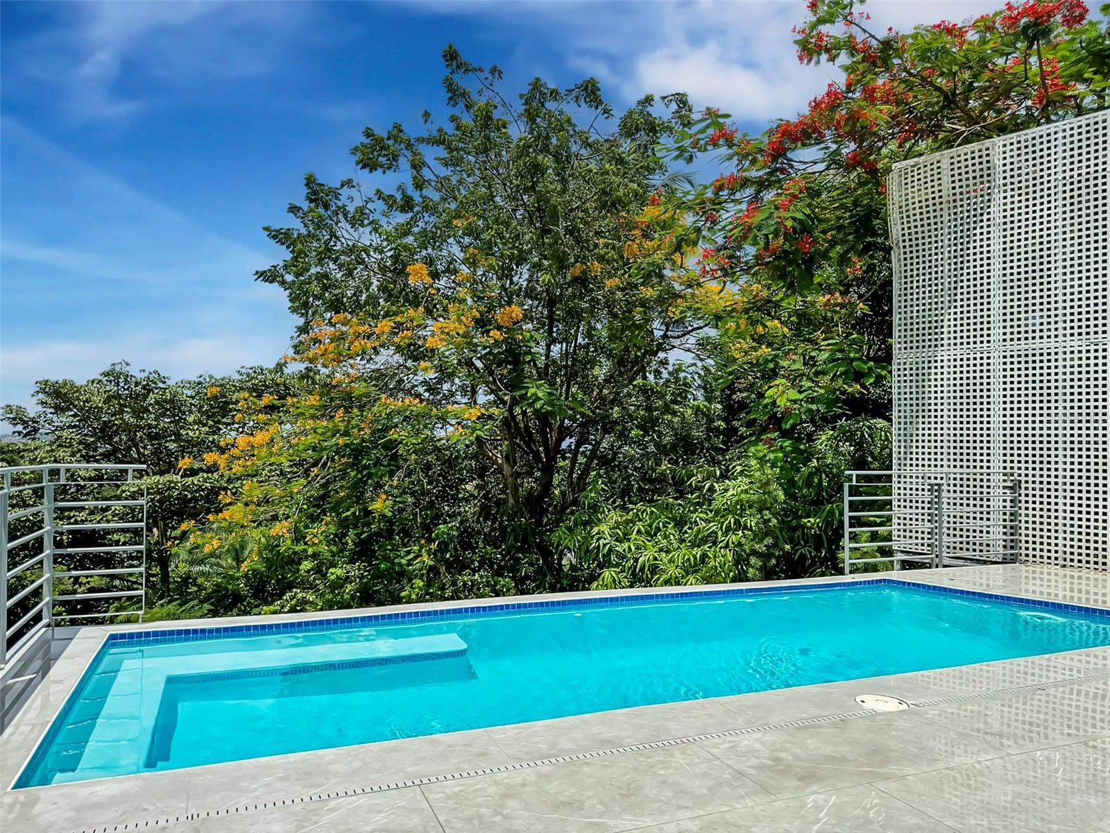 One or more photo(s) has been virtually staged. An Iconic Contemporary Residence with Lush Green & Ocean Views | La Floresta, Bayamón Gracefully elevated above the landscape of La Floresta, Bayamón, this contemporary residence, stands as a refined architectural statement designed to engage its natural surroundings. Developed across four distinct levels, the home captures expansive green vistas with distant ocean views, offering an exceptional sense of privacy, serenity, and architectural sophistication. Every line, volume, and transition has been thoughtfully conceived to frame light, air, and landscape, allowing the environment to become an integral part of the living experience. Property Specifications: Gross Living Area: 3,976 sq ft; Total Construction Area: 5,877 sq ft; Lot Size: 1,053 sqm; Bedrooms: 4; Bathrooms: 5 (full); Levels: 4 (prepared with elevator space); Year Built: 2016. Architecture & Interior Design: The interior reveals a timeless minimalist aesthetic, defined by generous proportions, clean lines, and seamless spatial flow: A sleek contemporary main kitchen, featuring custom cabinetry, quartz surfaces, stainless-steel appliances, and large windows that frame verdant views while flooding the space with natural light; Open-concept living, dining, and family areas, enhanced by large-format tile flooring that adds continuity and understated elegance; Independent laundry room; A flexible auxiliary space ideal for a wine cellar, private office, or executive study; Each level unfolds as a carefully orchestrated sequence of spaces, balancing openness and intimacy with architectural precision. Private Suites: The Primary Suite, conceived as a private sanctuary, features: A spa-inspired en-suite bathroom; Walk-in closet; Direct access to a private balcony and terrace; Sweeping green and ocean-horizon views, creating a tranquil retreat. A Junior Suite, offering: En-suite bathroom; Private terrace immersed in the surrounding landscape. Additional bedrooms are spacious, light-filled, and well-ventilated, each enjoying views toward the lush natural setting and with it's own balcony. Bathrooms throughout the residence reflect a refined, contemporary design with walk-in showers, modern fixtures, and carefully selected finishes. Entertainment Level The lower level has been masterfully designed as a self-contained entertainment and social retreat, perfect for hosting in absolute privacy: Lounge-style living area, Secondary kitchen, Dining area and media space, Full bathroom, Direct access to outdoor terraces, This level allows for effortless entertaining without disrupting the home’s private living quarters. Outdoor Living & Amenities: Swimming pool with swim jets, ideal for stationary lap swimming and relaxation, set against a lush green backdrop. Two expansive terraces with pergola, outdoor lounge and dining areas. Modern balconies, offering panoramic views of the surrounding greenery and ocean. Thoughtfully integrated landscaping and exterior walkways that complement the architecture with understated elegance. The Experience: More than a residence, this property is a curated architectural experience— with contemporary design, spatial sophistication, and a privileged natural setting converge to deliver an exclusive, serene, and elevated lifestyle. An exceptional offering for those who value architectural distinction, privacy, and refined living in one of Bayamón’s most sought-after residential enclaves.