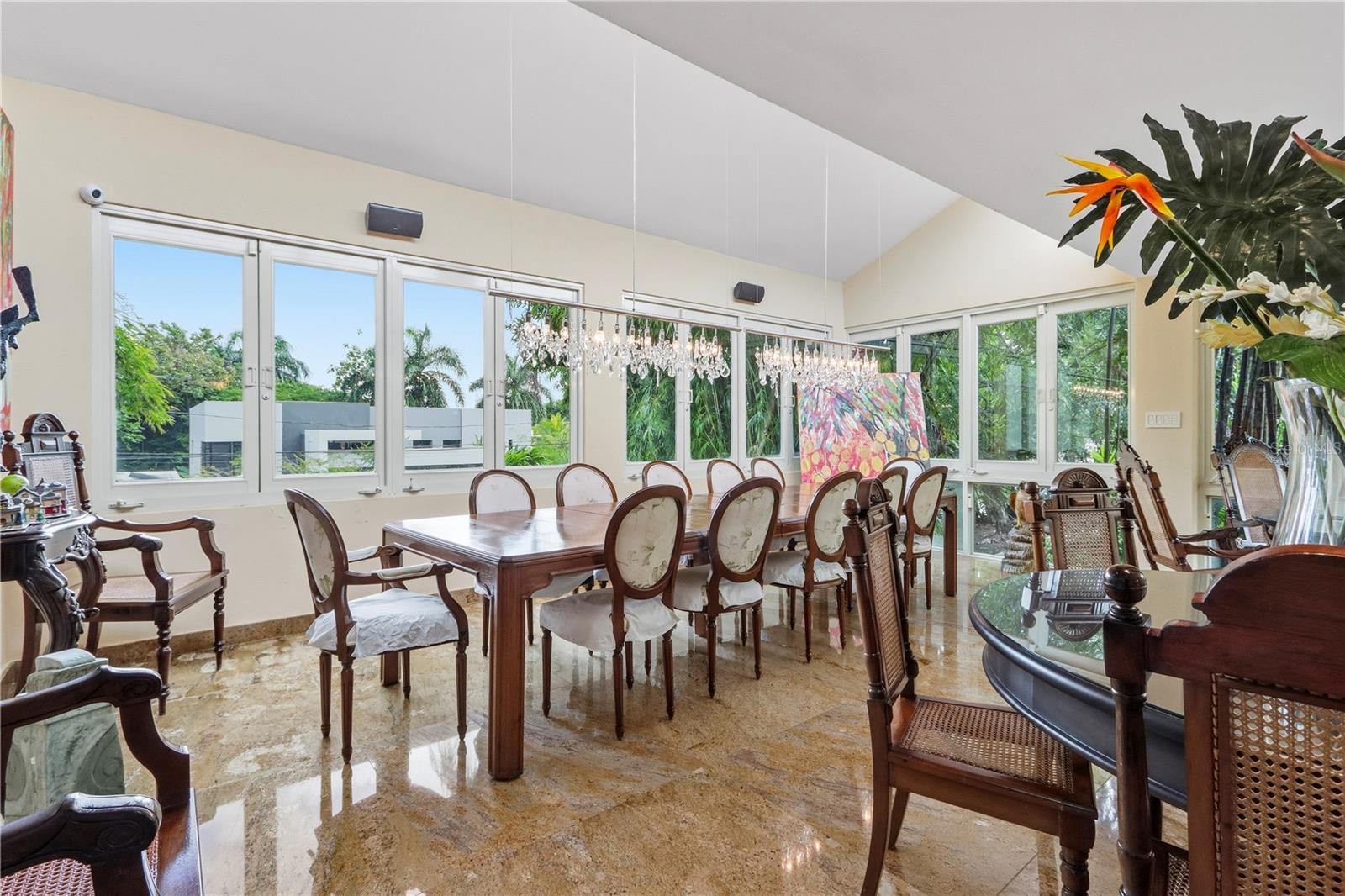 Set within the desirable gated community of San Francisco / Santa María, this timeless estate is a rare offering of scale, privacy, and understated elegance. Situated on a fully usable, completely flat 2,063 square-meter corner lot, the property enjoys one of the most desirable interior locations within the neighborhood—quiet, private, and impeccably positioned. The residence spans approximately 5,500 square feet of construction and is thoughtfully designed to balance grandeur with warmth. Granite floors, high ceilings, and multiple skylights bathe the interiors in natural light throughout the day, enhancing the home’s architectural beauty and creating a seamless connection between indoor and outdoor living. The main residence offers five spacious bedrooms and five and a half bathrooms, ideal for both family living and elegant entertaining. An independent casita, currently designed as a temperature-controlled wine cava with capacity for over 2,000 bottles, adds a distinctive and luxurious touch rarely found in the market. Outdoors, lush mature vegetation surrounds the property, framing a fabulous terrace and pool area that invites relaxed gatherings, private moments, and year-round enjoyment. The home is equipped with a full power generator, water cisterns, and security doors and windows, offering peace of mind without compromising aesthetics. This is not simply a house—it is a timeless masterpiece, where classic materials, thoughtful design, and an exceptional setting come together to create a residence of enduring value and quiet sophistication.