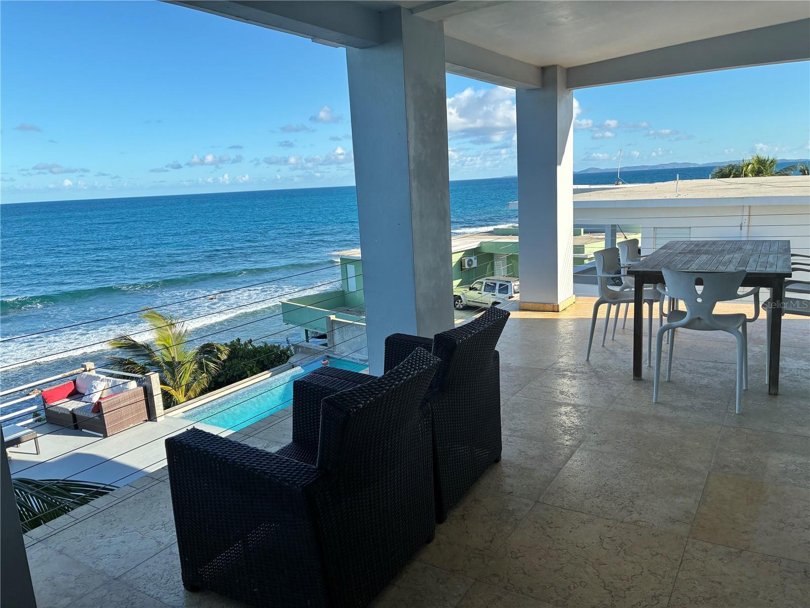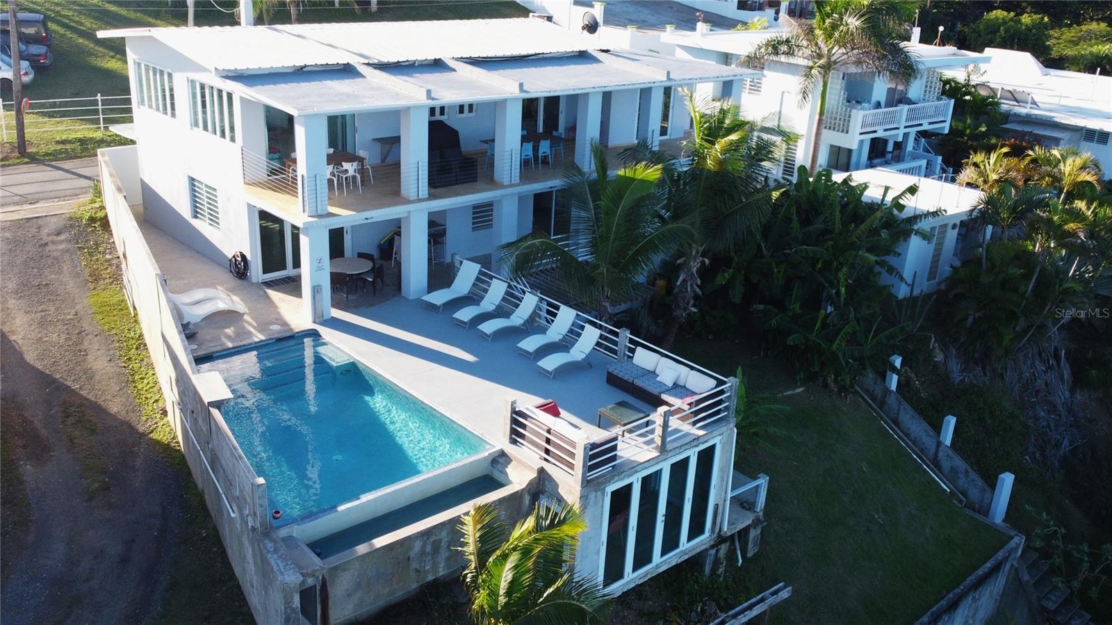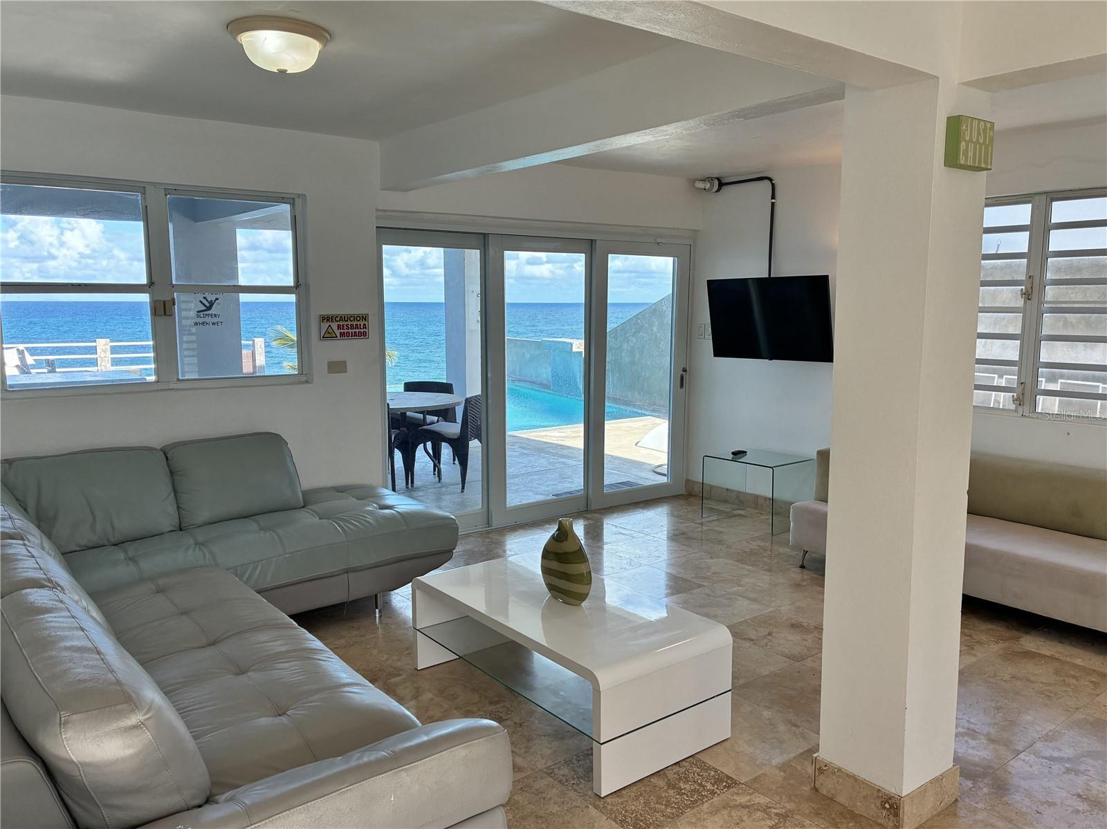 Perched dramatically above the Atlantic Ocean in the coveted beachside neighborhood of Bravos de Boston, North Shore Pointe is a rare direct oceanfront estate offering panoramic views, privacy, and exceptional income potential or the most desirable oceanfront home. Perfectly sited, experience the allure of a truly unique five-bedroom, five-bathroom property capturing the essence of elevated island living. The main residence is thoroughly designed across multiple levels, with living spaces on each floor to maximize comfort and ocean views. The main level features two spacious bedrooms and two full bathrooms, complemented by an inviting living room that opens towards the sea. The second level offers two aditional bedrooms and two bathrooms, along with another living area - ideal for hosting guests or creating separate private retreats within the home. Below, a fully independent downstairs apartment serves as a perfect mother-in-law or guest suite. This private casita includes a kitchenette, dining area, living room, its own bedroom and bathroom, making it ideal for extended family, visiting friends, or vacation rental income. Outdoors, the property truly shines. An infinity-edge swimming pool appears to spill into the ocean beyond, creating seamless connection between land and sea. From the cliffside, private stairs lead directly down to the water. The manicured lawn provides a peaceful setting for relaxation, entertaining, or sunset gatherings. Additional features include: 1 Five bedrooms, five bathrooms total 2 Two laundry areas for added convenience 3 Two-car tandem garage 4 Multiple indoor and outdoor living areas 5 Proven income-producing potential North Shore Pointe is a unique opportunity to own a landmark oceanfront home in one of Vieques' most desirable coastal enclaves - perfect as a luxury residence, vacation retreat, or high-performing rental investment.