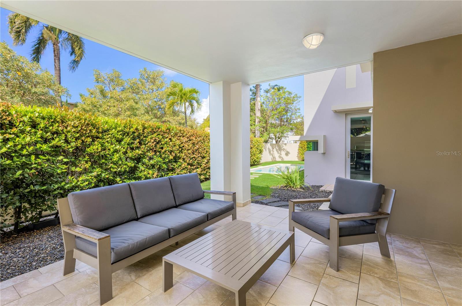 Set within the sought-after Santa Teresita enclave of San Juan, 2200 Calle Cacique brings together classic architectural lines and thoughtful modern updates. The residence offers five generously sized en suite bedrooms plus a powder room, providing comfort and privacy for both daily living and hosting. Marble floors extend throughout the home, while the open layout and double-height living room fill the space with natural light and an easy sense of openness. An additional living space connects seamlessly to the covered terrace, enhancing the home’s indoor-outdoor flow and creating an inviting setting for relaxed gatherings. Outdoors, a swimming pool framed by mature greenery and a private terrace off the primary suite capture cooling sea breezes and soft light throughout the day. The primary bathroom is finished with a double shower and refined details that add a subtle touch of luxury. Designed with both livability and flexibility in mind, the property includes a full generator and a cistern, offering reliability and peace of mind year-round. Each bedroom enjoys its own private bath and ample storage, ensuring comfort. Santa Teresita offers a relaxed coastal setting just moments away from the sandy beaches of San Juan’s north coast. The neighborhood is known for its quiet, tree-lined streets and gated environment, providing a sense of privacy while remaining closely connected to the ocean and daily life by the shore. Morning strolls along the beach, afternoon swims, and evening sea breezes are all part of the rhythm of living in this highly desirable beachside community. Its location allows for easy access to popular destinations in Ocean Park and Condado Beach, including a wide selection of dining, cafes, schools, and local shops. Residents enjoy the balance of a residential atmosphere paired with the convenience of city amenities, all within a short drive of Old San Juan and Luis Munoz Marin International Airport.