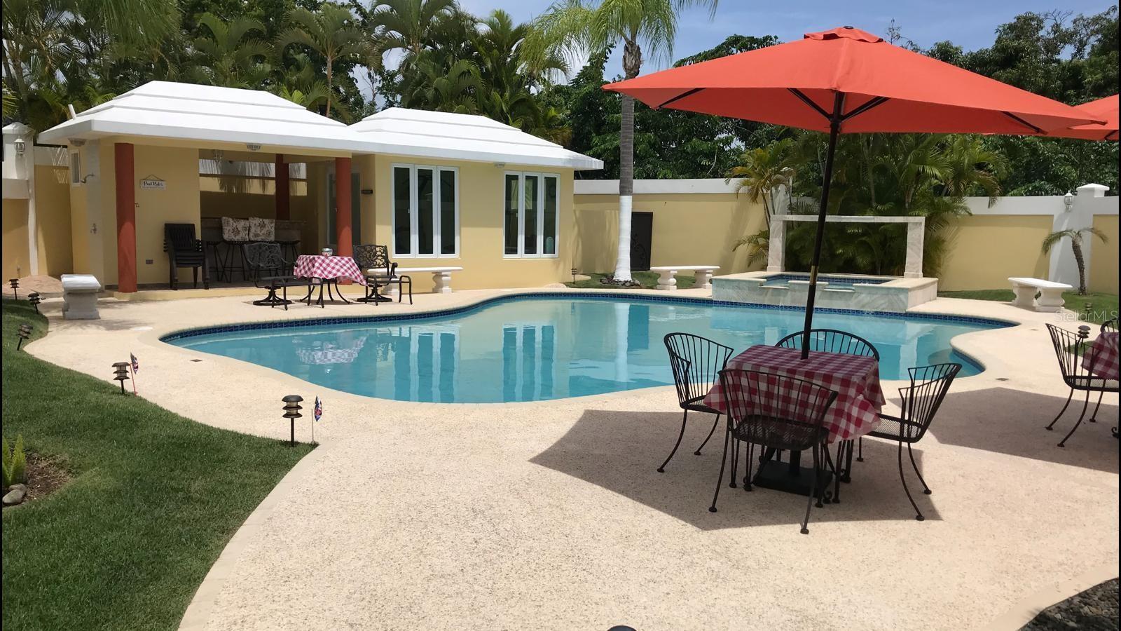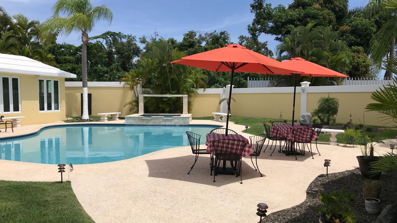 Located in an exclusive, planned, and gated community adjacent to The Montehiedra Outlets and surrounded by supermarkets, shopping centers, restaurants, pharmacy, gas station, banks, fast-food options, Home Depot, and more, this impressive 6,000-square-foot residence redefines luxury and comfort with an impeccable design and thoughtfully curated spaces for maximum enjoyment. It features elegant social areas including a grand foyer, living room, formal dining room, and entertainment lounge; a spacious, fully equipped gourmet kitchen with breakfast area and views of the pool and gardens; five generously sized bedrooms, highlighted by the primary suite with its own foyer, private office, kitchenette, library, two walk-in closets, and a luxurious en-suite bathroom; as well as a guest bedroom with a private bath. Outdoor amenities include a spectacular pool with heated jacuzzi and water recycling system, a covered terrace with wet bar ideal for outdoor entertaining, and an exterior shower. Additional features include a private gym, office, oversized pantry, storage under the stairs, a two-car garage, a 21kW power generator, and security doors—offering privacy, elegance, and an exceptional quality of life.