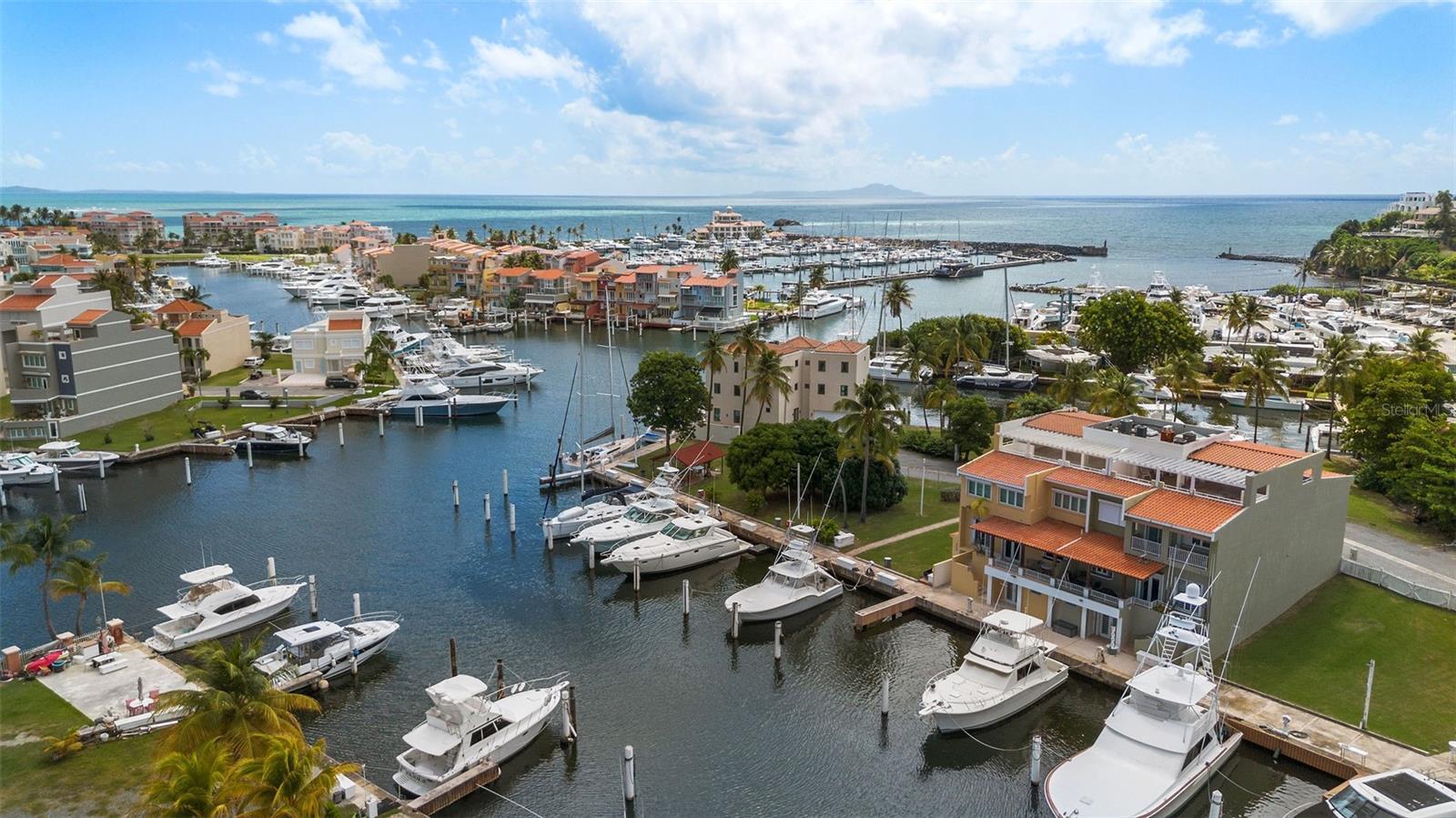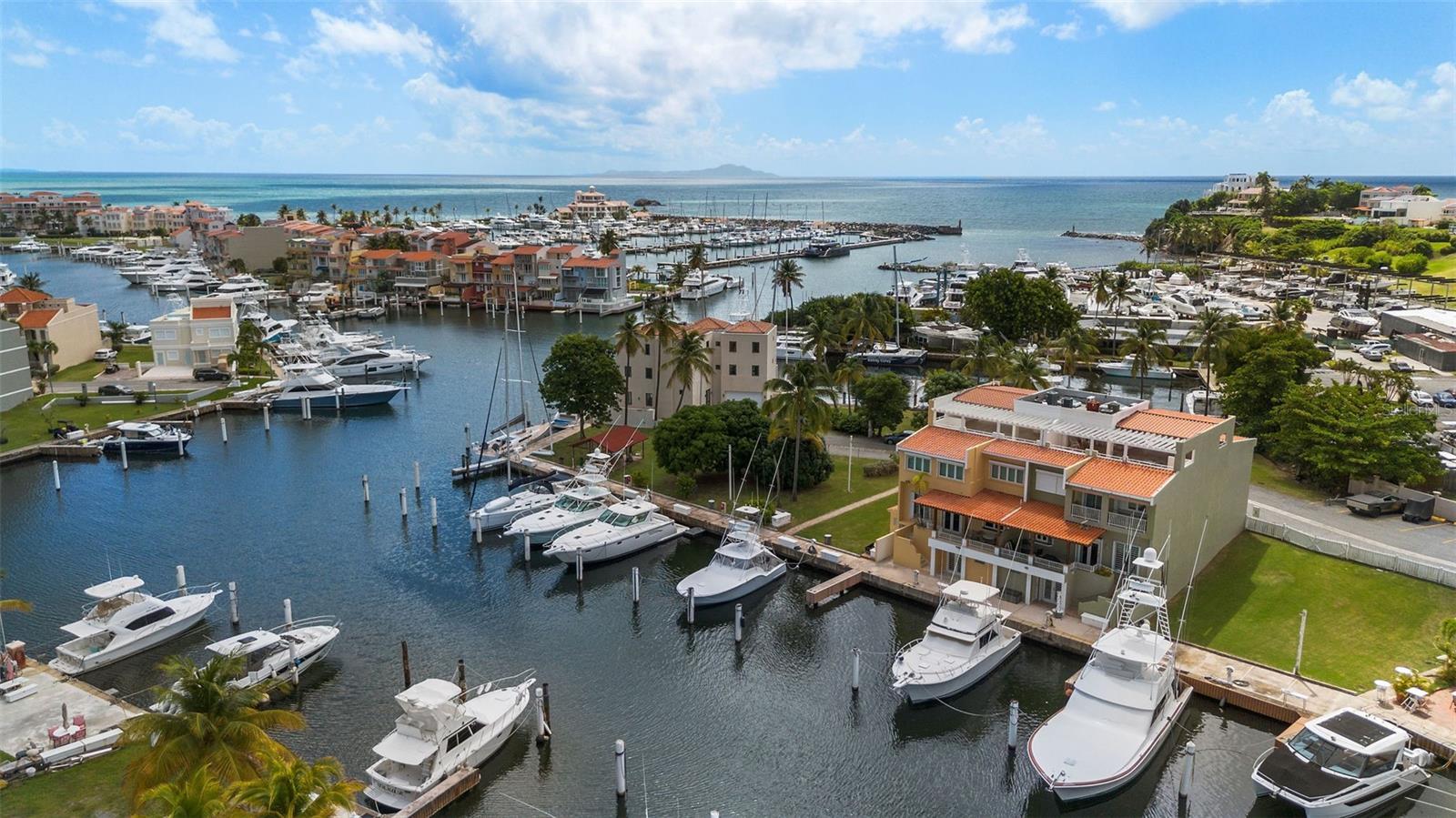 Seascape Peninsula 13 offers luxury waterfront living in the exclusive, gated Seascape Peninsula community within Palmas del Mar. This expansive 4,900 sq. ft. marina-front townhouse is ideal for those seeking space, comfort, and direct boating access. The residence features 4 generously sized bedrooms, 3 full bathrooms, and a half bath. Elegant marble floors flow throughout, creating a refined and timeless interior. The oversized primary suite serves as a private retreat, complete with a spacious en-suite bath designed for relaxation. The chef’s kitchen is equipped with high-end appliances, ample counter space, and an open layout that seamlessly connects to the living and dining areas, perfect for entertaining while enjoying marina views. Designed with outdoor living in mind, the home includes a large entertainment area with its own full bath and a spectacular rooftop terrace offering panoramic marina views, ideal for gatherings or quiet evenings at home. A true boater’s paradise, the property includes a double boat slip accommodating a yacht of approximately 50 feet, with easy access to the protected marina waters. Additional features include a two-car garage and a full backup power generator for added convenience and peace of mind. Rarely available for rent, Seascape Peninsula 13 combines luxury, waterfront living, and unmatched boating amenities in one of Palmas del Mar’s most sought-after communities.