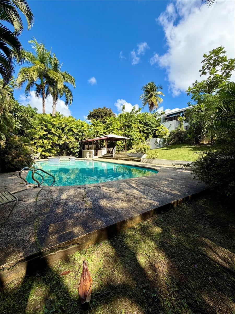 Under contract-accepting backup offers. Home with tremendous potential located in Urb. Caldas, San Juan, PR. The property features a beautiful entrance with a driveway that accommodates more than six vehicles, surrounded by lush vegetation on a lot of nearly one cuerda of land. The main residence offers 4 bedrooms and 2.5 bathrooms, along with an entertainment area that includes a billiard space and an additional space with a kitchen, one full bathroom, and 2 extra bedrooms. The property is complemented by beautiful landscaping throughout, as well as a swimming pool with a gazebo.