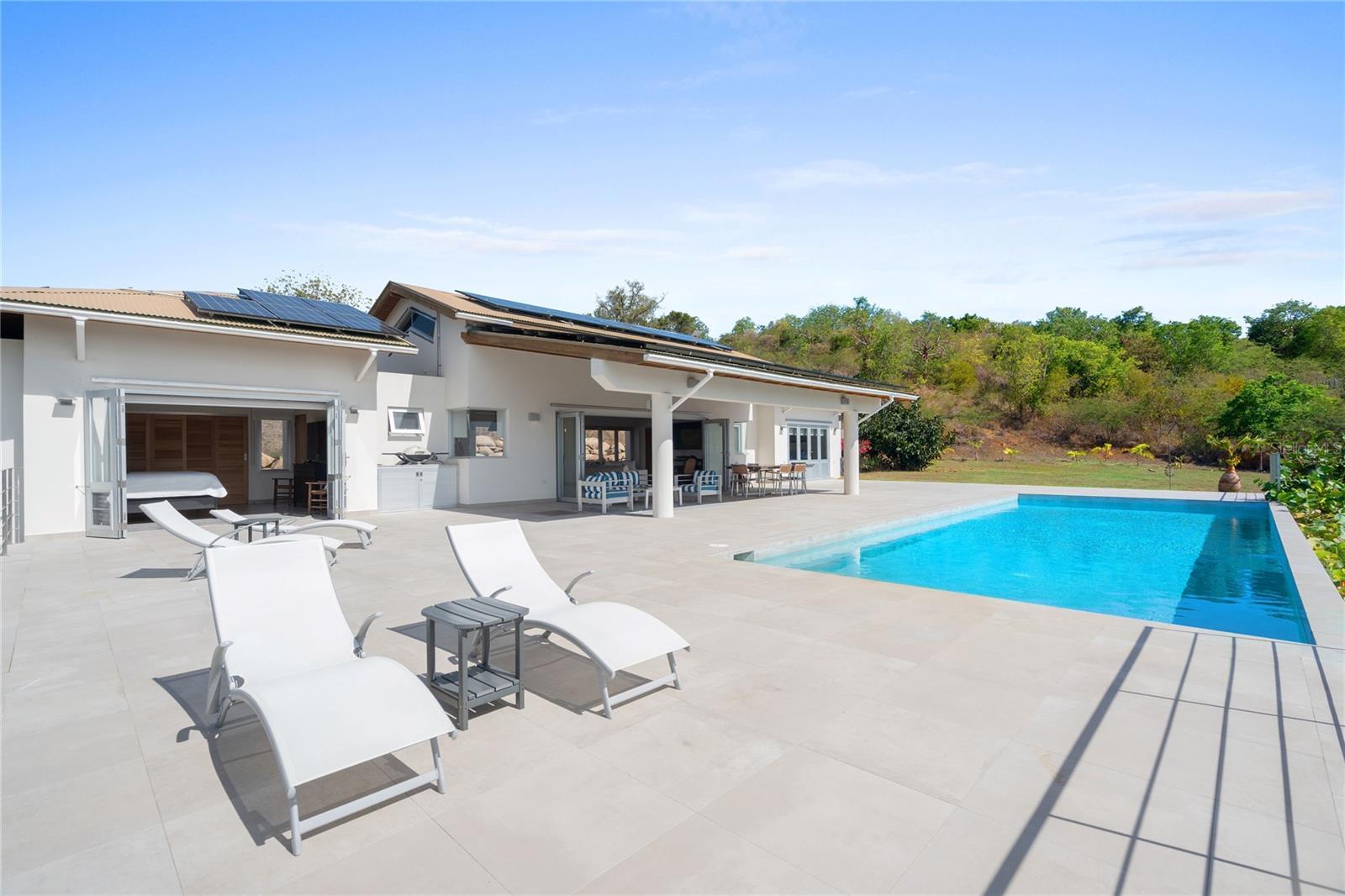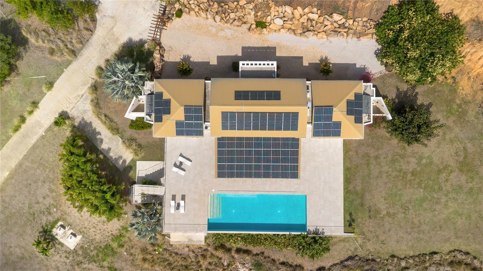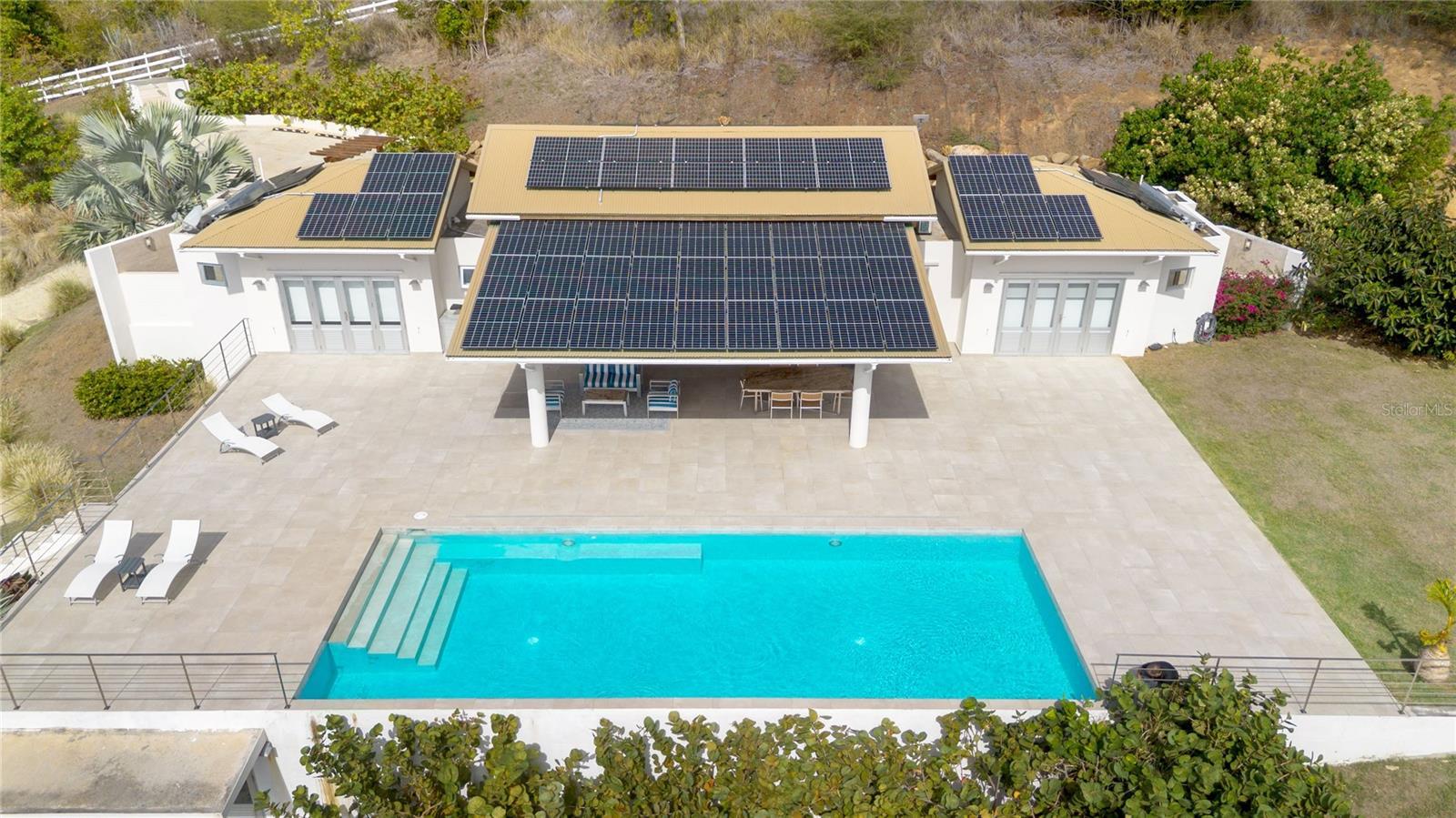 Designed to embrace the island’s natural beauty, Casa Las Pelás welcomes you with light filled living spaces where panoramic ocean views unfold the moment you arrive. The endless horizon becomes an integral part of the home, shaping how each space is experienced from the very first step inside. Elevated above Las Pelas Bay, this residence designed by architect Pedro Rodríguez Flores offers a rare balance of openness and privacy. The living room opens directly onto an expansive terrace that forms the heart of the home, creating a seamless flow between indoor living and open air spaces ideal for entertaining, relaxation, and quiet moments. Vaulted ceilings enhance the home’s airy atmosphere, while both the living areas and all bedrooms connect effortlessly to the outdoor living spaces, where an infinity pool overlooks the ocean, inviting you to unwind as you take in the views, feel the ocean breeze, and listen to the surrounding sounds of nature. The two primary suites, both located on the main level, enjoy the same commanding ocean views and are designed as equal retreats. Each features a beautifully appointed en suite bathroom with an interior shower, complemented by an additional private outdoor shower, offering a daily ritual that encourages disconnection from everyday life and a deeper connection with the natural surroundings. A third bedroom on the lower level provides flexibility for guests or family, while maintaining the home’s sense of privacy and comfort. Set on five acres of pristine land, Casa Las Pelás offers a level of space and privacy rarely found in Culebra. Designed for long term comfort and resilience, the home is connected to municipal power and water, and is complemented by a backup solar energy system with 52 solar panels and three Tesla batteries, along with a 50,000 gallon water cistern. A 120 foot community dock offers easy access for boat owners and island hopping enthusiasts. Casa Las Pelás is a refined tropical retreat defined by privacy, autonomy, and an uninterrupted connection to the horizon.