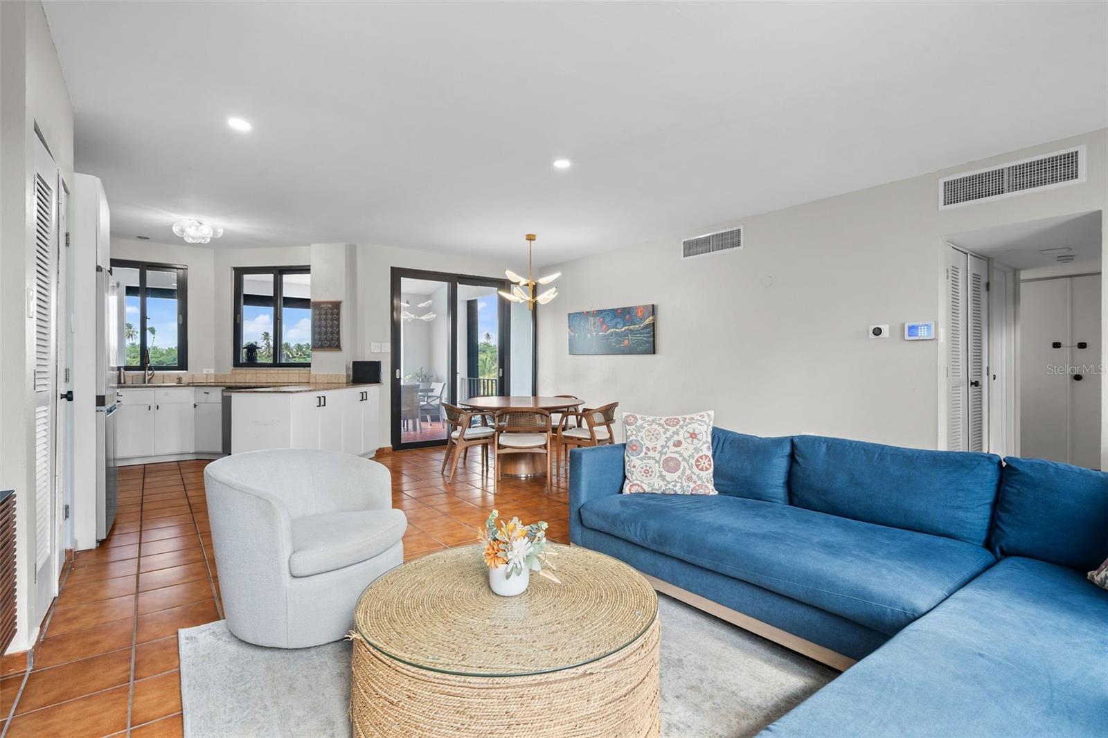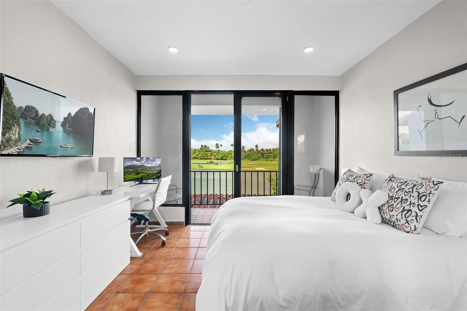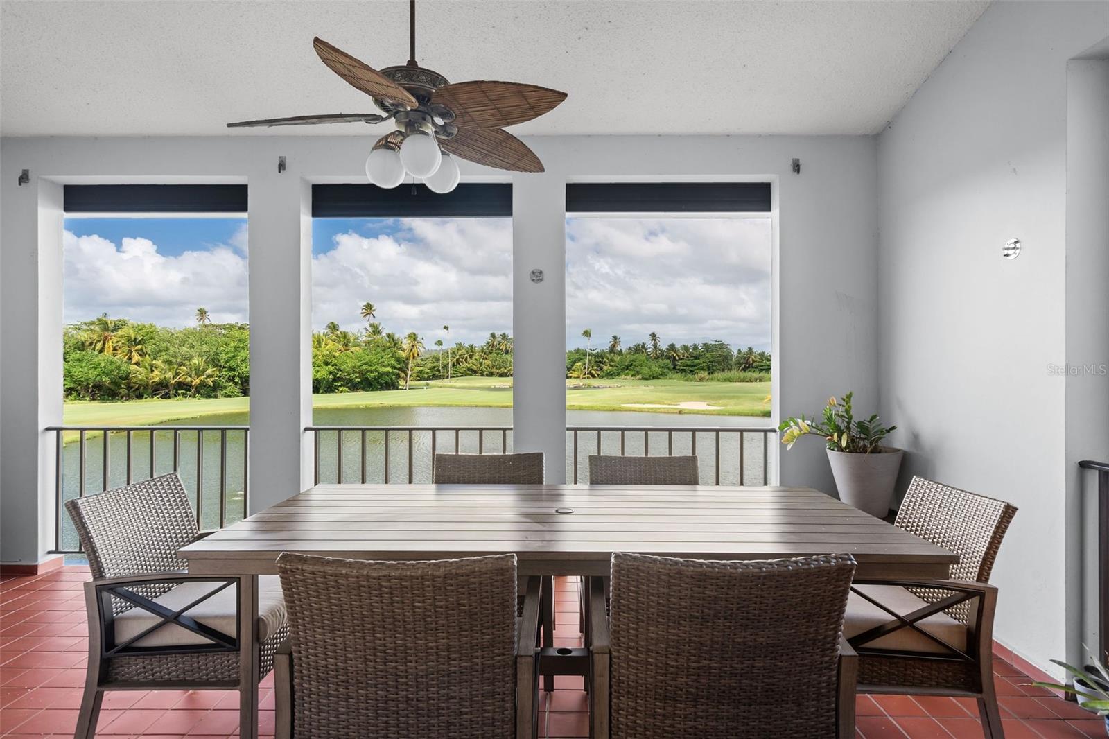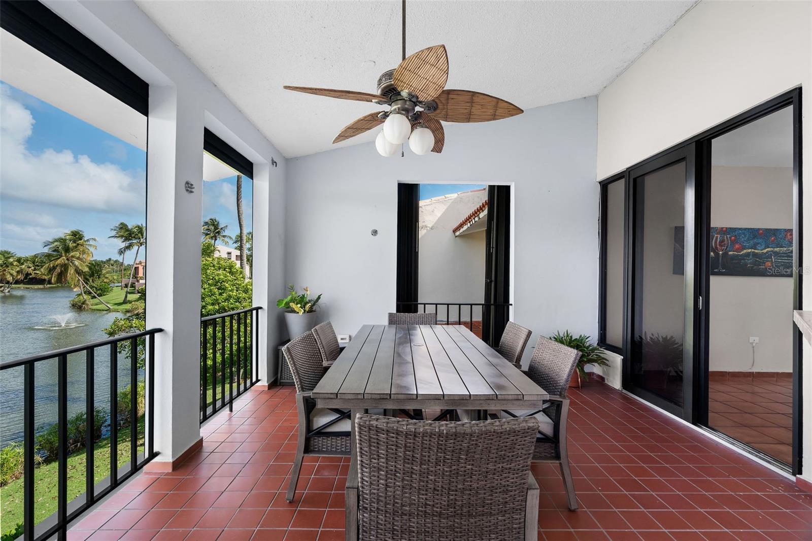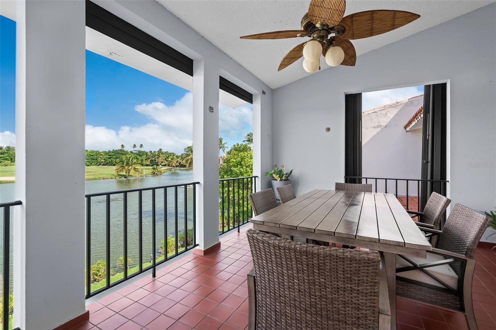 Located in Fair Lakes Village, within the resort community of Palmas del Mar Resort, this fully furnished, two-level condominium offers a spacious and functional layout with scenic views. The residence features three bedrooms and two bathrooms, thoughtfully distributed across two floors, and is appointed with modern, stylish, and comfortable furnishings, creating a welcoming and beautifully maintained living space. The main living level includes a living room, dining area, and kitchen, opening to a balcony/terrace overlooking the lake with partial gulf views. This level also offers two additional bedrooms, a full bathroom, and a laundry room. The upper level is dedicated to the primary bedroom, featuring access to a private rooftop terrace, ideal for enjoying the surrounding views. Beach access is located across the street from the entrance of Fair Lakes Village, along Candelero Drive, the same street where the Wyndham Hotel Tennis Club and the Palmas del Mar Beach Club are located. Fair Lakes Village offers residents a private pool and clubhouse area. Palmas del Mar is a master-planned resort community offering beaches, golf courses, tennis facilities, marina, restaurants, walking paths, and 24-hour security, providing a true resort-style lifestyle on Puerto Rico’s southeastern coast.