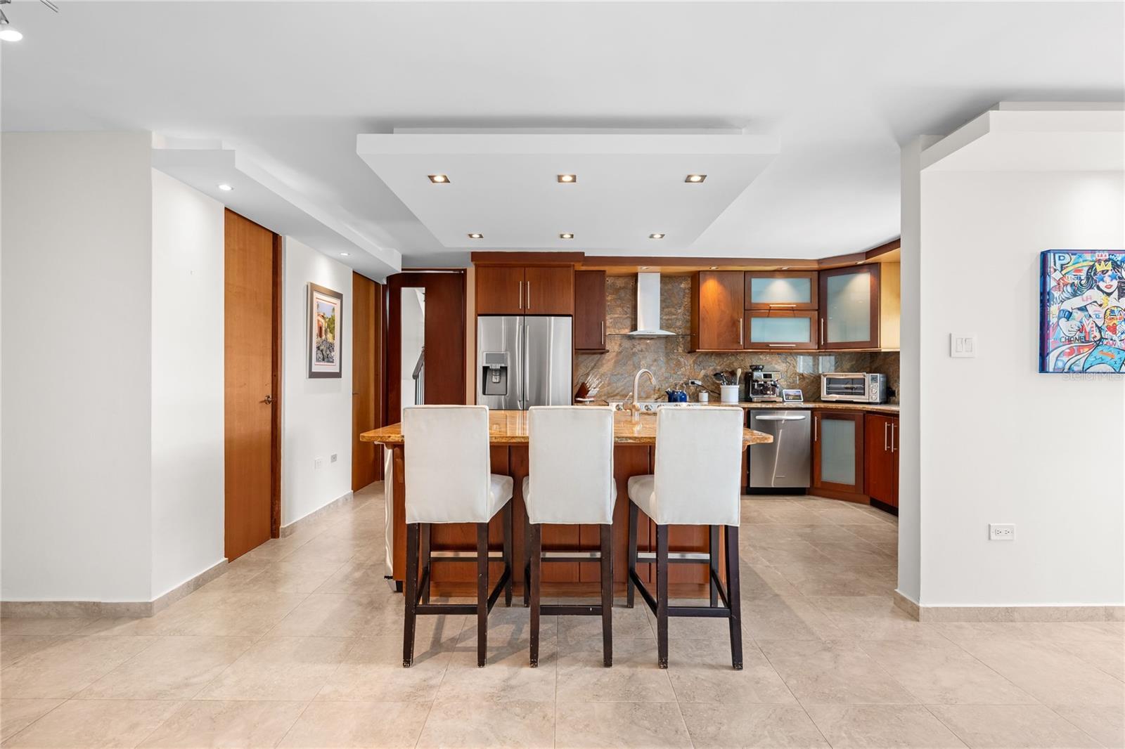 For sale or rent is this tranquil 3k square feet cul-de-sac residence inside the exclusive gated community of Estancias Reales in Guaynabo. This elegant four-bedroom, two-and-a-half-bathroom home is designed with top-of-the- line materials and appliances, featuring an extended family room and a spacious kitchen with custom hardwood cabinetry and stone countertops. Step outside to a marble-floored terrace with a custom bar and a stunning private pool, perfect for entertaining family and guests. Upstairs, the master suite offers a generous walk-in closet and a dual-sink bathroom, while the laundry room is conveniently located on the same level for easy access. Residents of Estancias Reales enjoy a wide range of amenities, including a park full of nature, a new dog park, a resort-style pool with a grill, a fully equipped gym, and courts for pickleball, tennis, and basketball. Tucked away in a low-traffic area yet only minutes from fine dining, high-end shopping, and top-rated schools, this home offers the perfect balance of luxury, comfort, and convenience. Schedule your private tour today and experience the lifestyle Estancias Reales and Guaynabo provide.