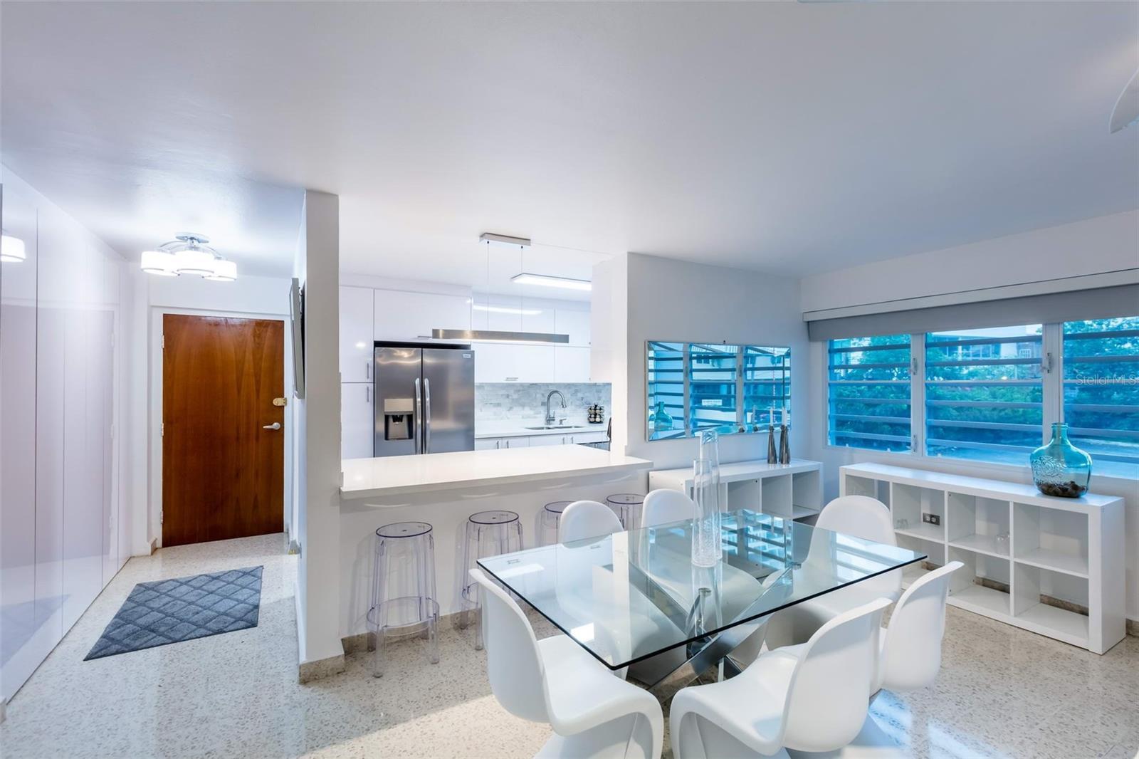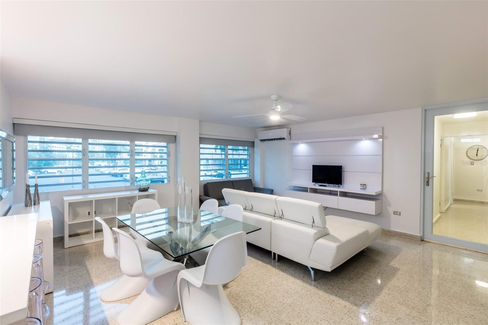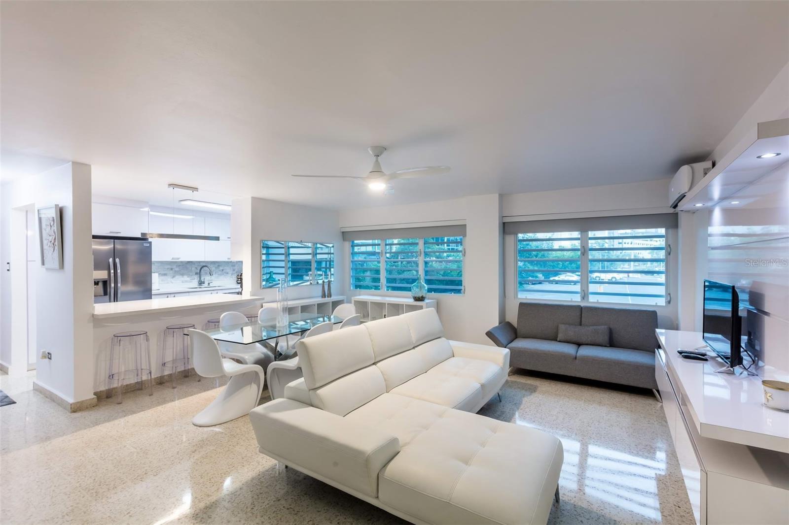 Featuring two bedrooms, two full bathrooms, fully endowed kitchen, laundry space, living-dining room, work station, balcony and one covered parking space next to the lobby. This remodeled turn-key apartment is nestled on the second level of the cozy San José building, located in the heart of the walkable zone of the pedestrian-oriented community of Condado and just a stroll from Plaza Antonia Quiñones also known as Stella Maris Park: a relaxing green space that occasionally hosts outdoor chamber music concerts. A handsome and modern apartment that showcases a comprehensive renovation, and all furniture, appliances and equipment; including inverter A/C units in the living-dining room and bedrooms. Conveniently positioned near world class hotels, schools and Ashford Hospital. Enjoy the varied alternatives at hand: homely comfort or step into the outdoor leisure at Condado Beach, the neighboring hotels, fine restaurants, boutique stores; the choice is yours. Built: 1969 # Stories: 7 # Units: 14 # Elevators: 1 Water Cistern Walking Distance to the Beach and Park.