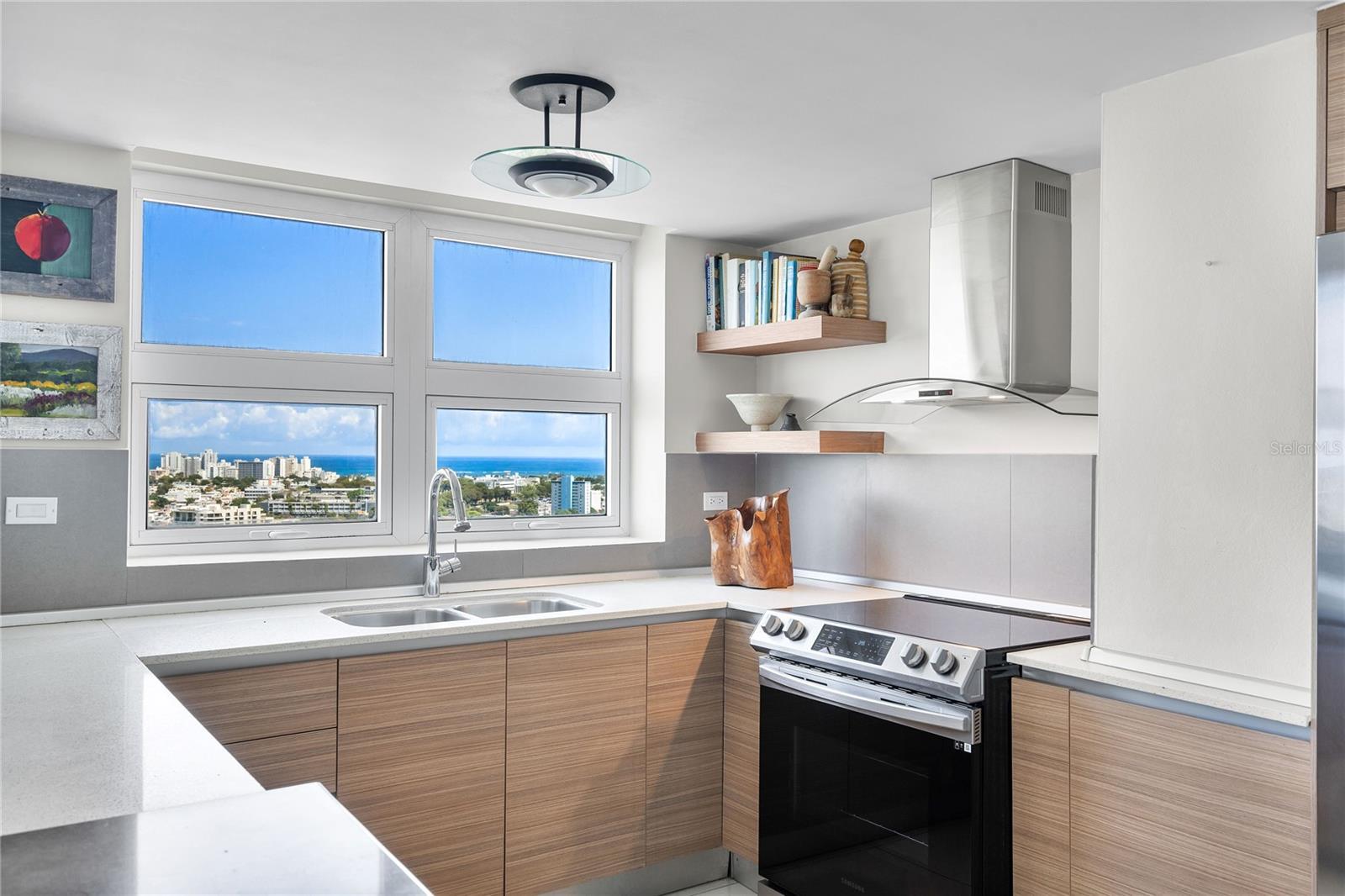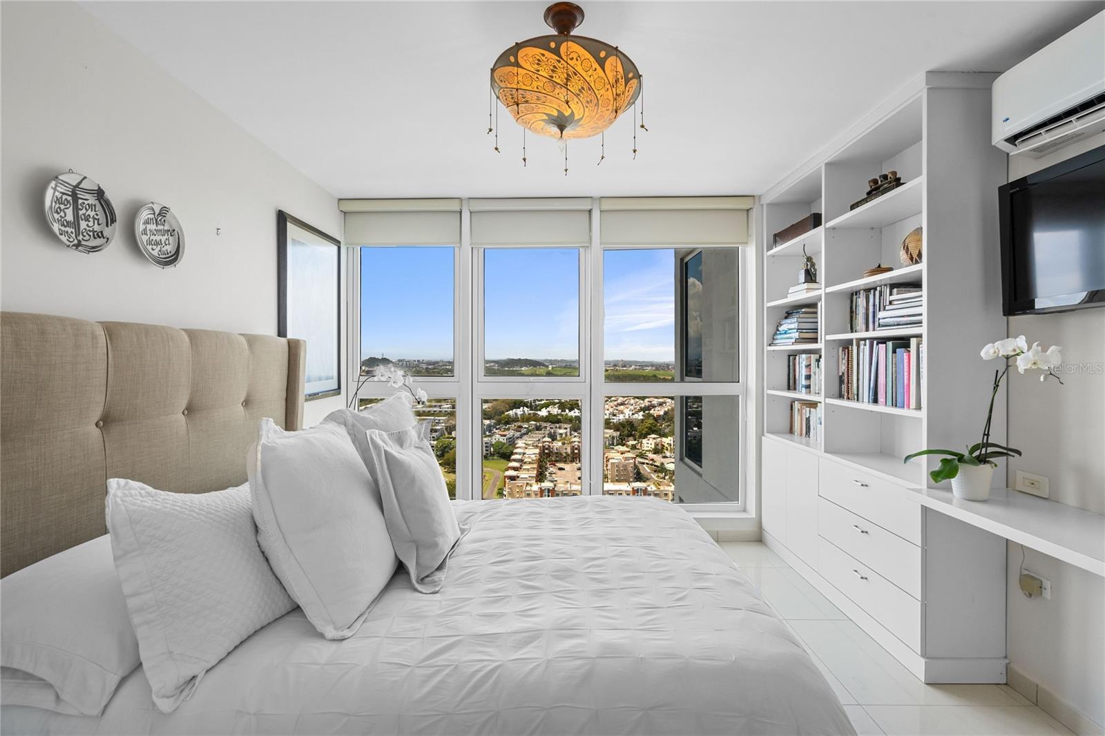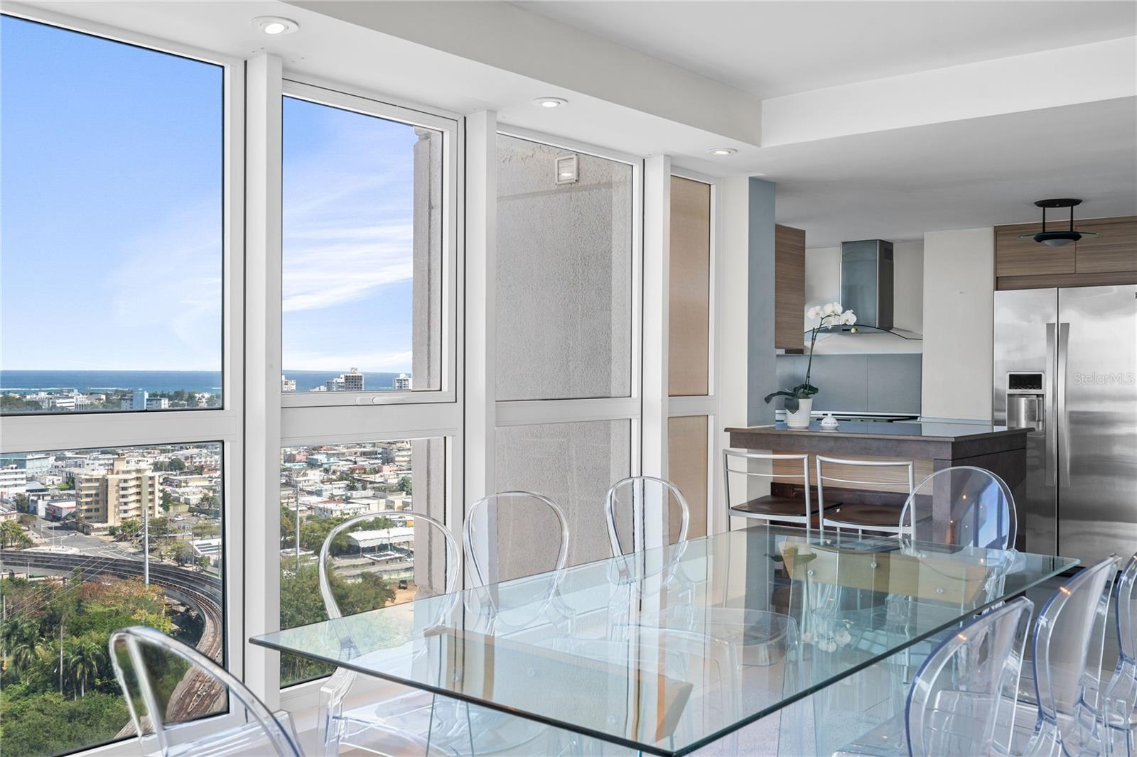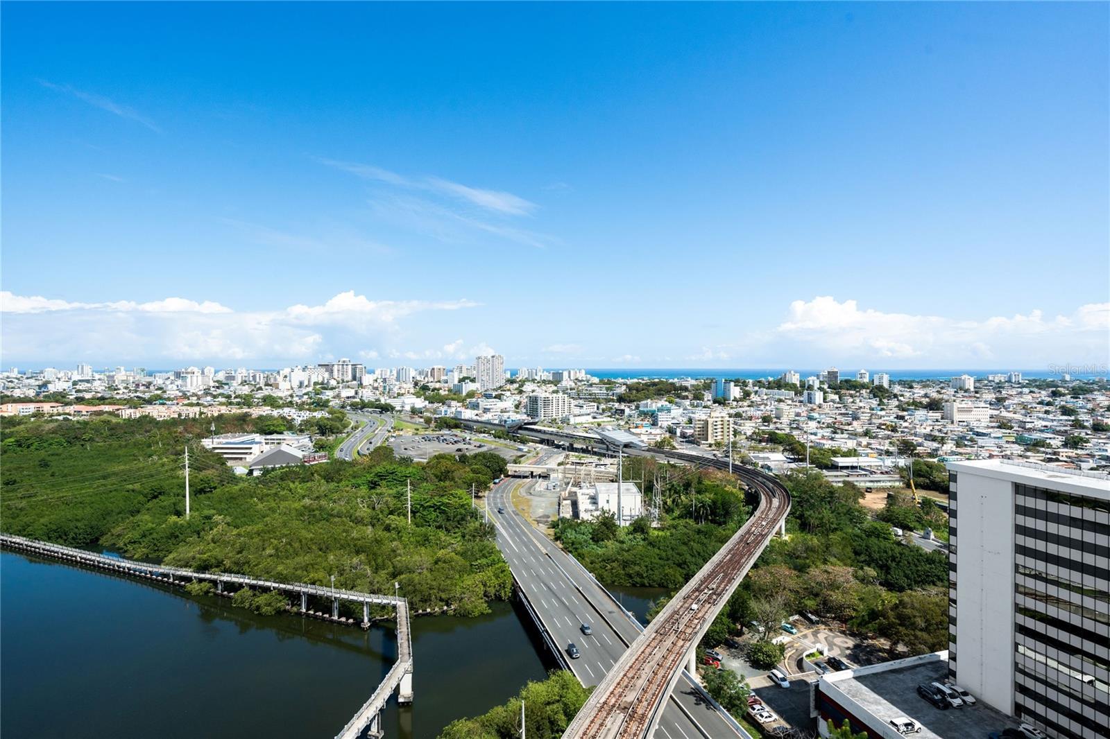 Perched on one of the highest floors of the prestigious Aquablue Condominium, this exceptional residence offers sweeping panoramic views of the San Juan skyline, San Juan Bay, and the Atlantic Ocean. Spanning 1,812 sq ft, this elegant home features two spacious bedrooms, two and a half bathrooms, and a bright, open living area bathed in natural light from expansive floor-to-ceiling windows. The well-appointed kitchen provides ample space for culinary pursuits, while the master suite offers a serene retreat with an en-suite bathroom and generous closet space. A second bedroom, also thoughtfully designed, ensures comfort and privacy for guests. Situated next to the iconic Coliseum of Puerto Rico, Aquablue offers an array of luxurious amenities, including 24/7 security, a state-of-the-art fitness center, an inviting swimming pool, a residents’ lounge, and private parking. Ideally located in the heart of San Juan's vibrant financial district, this residence places world-class dining, shopping, and entertainment at your doorstep, embodying the pinnacle of urban living.