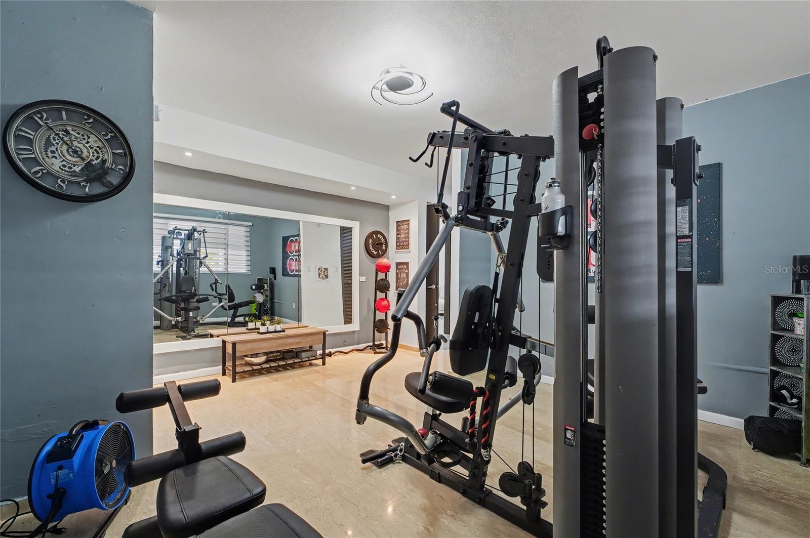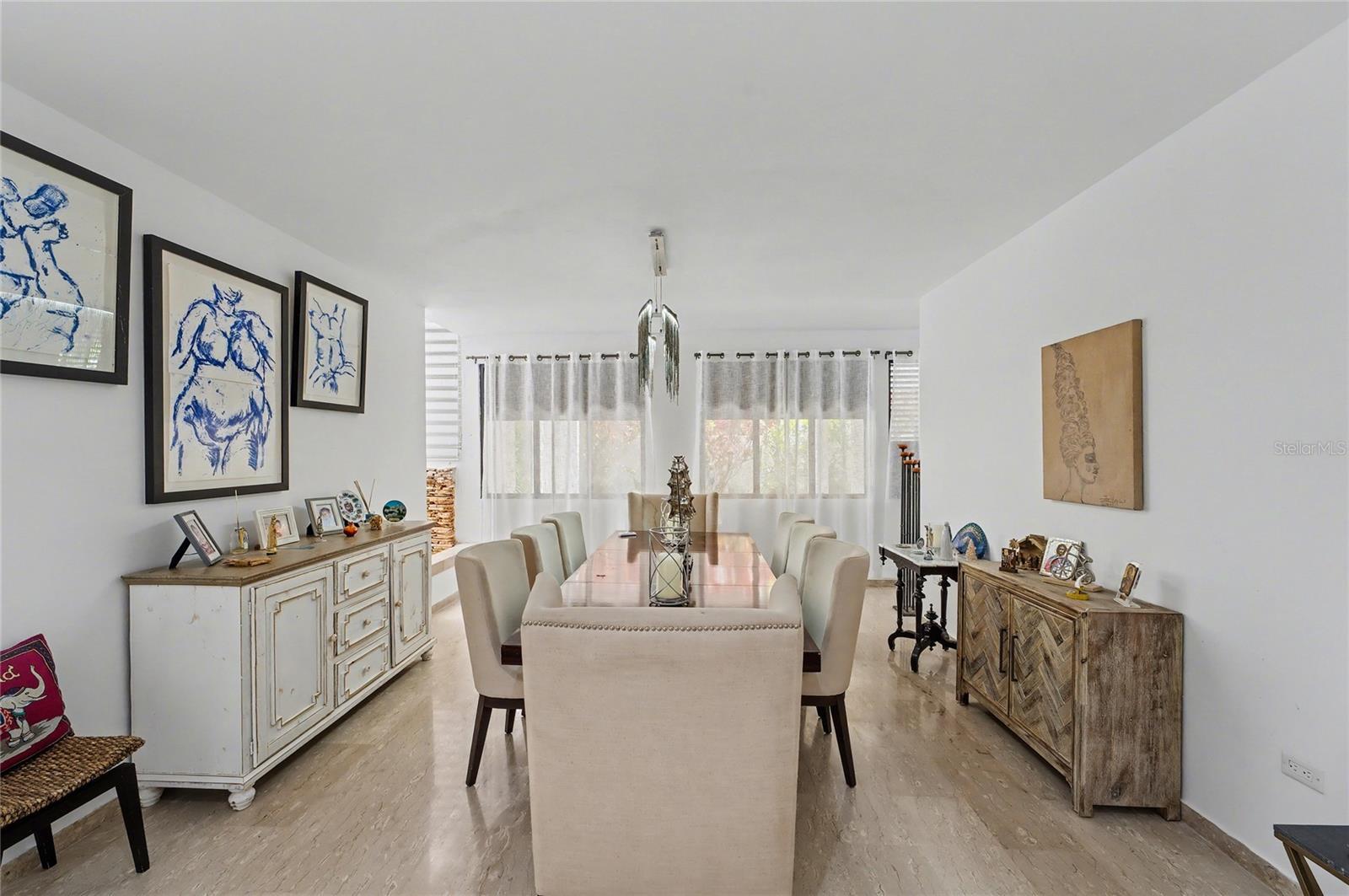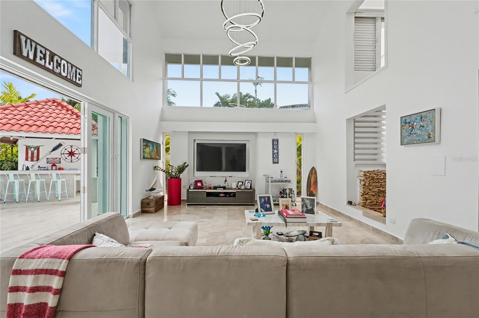 Enjoy living in this one-of-a-kind elegant residence nestled within the exclusive gated community of Santa Maria, one of the most sought-after secure enclaves within the San Juan metro area. Experience the best of two worlds at this home thoughtfully designed for large-scale living and entertaining with great presence and privacy, yet this home is also an oasis of tranquility, while being conveniently situated only about 6-8 miles from the city, Old San Juan and the beach. Spanning a grand total area of 6,250 sq.ft., this residence is designed with every detail in mind to feel like your private retreat featuring four oversized bedroom suites, each with an ensuite bathroom, in addition to a guest bedroom or office/flex room with another ensuite bath in the first floor. The house has an elegant formal living area next to a grand dining room, a modern open kitchen opening up into a Great room or family area with majestic double height cathedral ceilings all leading through tall glass doors into the terrace and outdoors. The home is a mini resort with a large fully equipped gym and an ensuite bath, a large covered terrace, a complete gazebo with a wet bar, a pool with a large jacuzzi, an outdoor full bath making this house also one for great entertaining. To complete it all, the home boasts an oversized laundry room, another large terrace on the second floor, several storage areas, 3 separate garages that can accommodate 4-5 cars, a 20kw diesel generator and 2 cisterns, electric hurracaine shutters, fiber optics, alarm, and cameras with a security system. Its excellent location is not only centrally located in San Juan but has a very easy access to most main highways, to the best shopping centers, to Condado, and to The District. It is also near many top services, fine restaurants and excellent schools, all just minutes away.