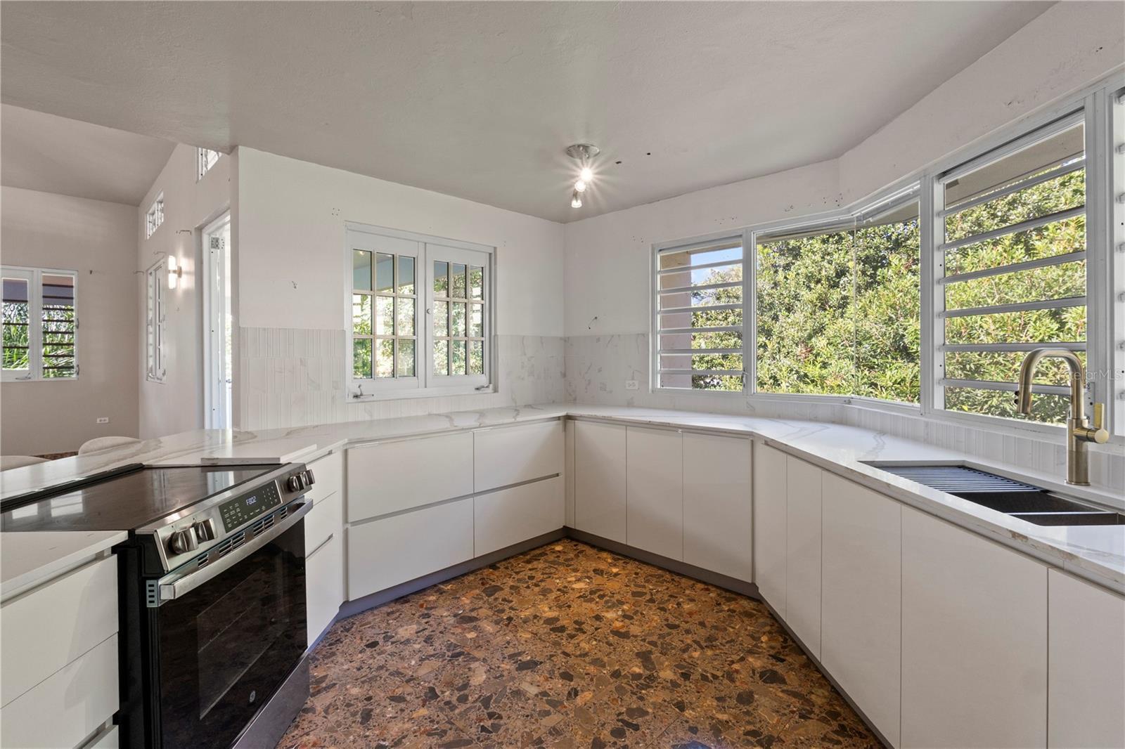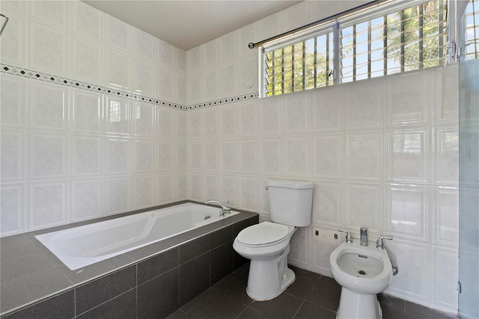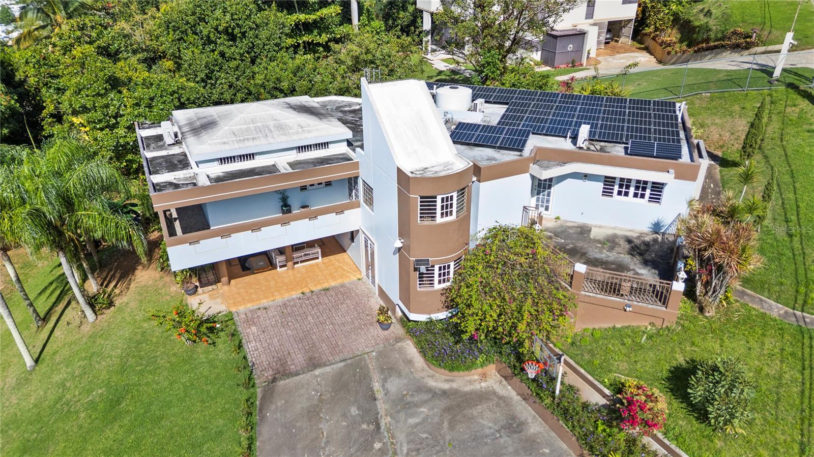 Located within the gated community of El Mirador de San Juan, this distinctive residence offers privacy, space, and a timeless architectural presence on an expansive half-acre lot surrounded by mature tropical landscaping. Avocado and plantain trees frame the property, creating a serene, garden-like setting that feels both established and tranquil. The home’s architecture blends clean lines with warm, modernist influences—defined by its strong geometric forms, elevated main living areas, and a wrap-around porch that extends the living room outdoors. Covered terraces and shaded outdoor spaces invite year-round indoor-outdoor living, ideal for entertaining or quiet moments surrounded by greenery. The main residence features 4 bedrooms and 3 bathrooms, with an updated kitchen anchoring the primary living area. On the first level, a private in-law apartment offers exceptional flexibility, complete with one bedroom, one bathroom, and a kitchenette—ideal for guests, extended family, or additional living arrangements. Designed with efficiency and sustainability in mind, the property is equipped with solar panels and two Tesla Powerwall batteries, providing energy resilience and long-term cost savings. Conveniently located just 3 minutes from Montehiedra Shopping Center, dining options, and daily conveniences, and only 4 minutes from Highway 52, this home offers a rare combination of privacy, accessibility, and space—set within one of San Juan’s most desirable residential enclaves. A unique opportunity to own a character-rich home with land, energy independence, and a prime San Juan location.
