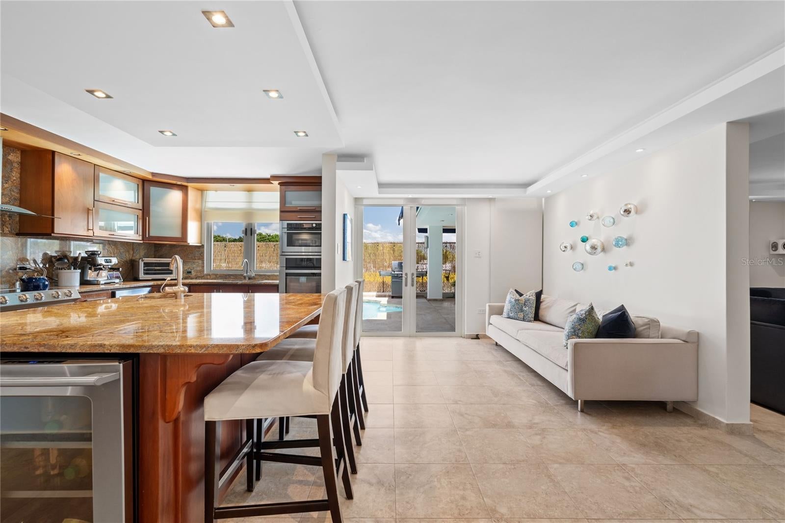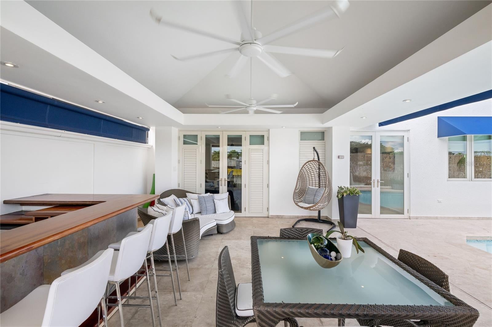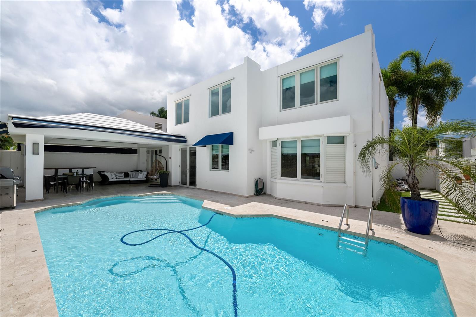 For sale or rent is this tranquil 3k square feet cul-de-sac residence inside the exclusive gated community of Estancias Reales in Guaynabo. This elegant four-bedroom, two-and-a-half-bathroom home is designed with top-of-the- line materials and appliances, featuring an extended family room and a spacious kitchen with custom hardwood cabinetry and stone countertops. Step outside to a marble-floored terrace with a custom bar and a stunning private pool, perfect for entertaining family and guests. Upstairs, the master suite offers a generous walk-in closet and a dual-sink bathroom, while the laundry room is conveniently located on the same level for easy access. Residents of Estancias Reales enjoy a wide range of amenities, including a park full of nature, a new dog park, a resort-style pool with a grill, a fully equipped gym, and courts for pickleball, tennis, and basketball. Tucked away in a low-traffic area yet only minutes from fine dining, high-end shopping, and top-rated schools, this home offers the perfect balance of luxury, comfort, and convenience. Schedule your private tour today and experience the lifestyle Estancias Reales and Guaynabo provide.