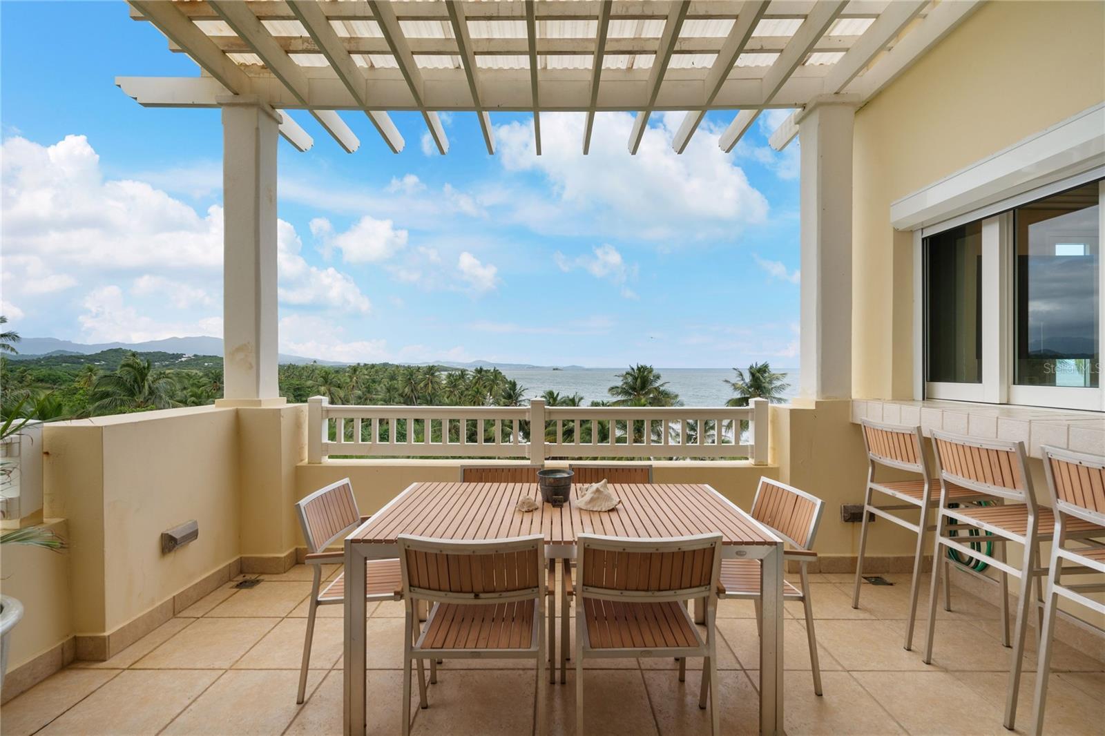 Welcome to an exceptional oceanfront penthouse at the Marbella Club, located within the Palmas del Mar Resort. Offering approximately 2,600 square feet, this residence delivers a refined coastal lifestyle defined by space, light, and breathtaking natural scenery. High ceilings, elegant crown moldings, and an open-concept layout create a seamless flow throughout the home, while expansive windows frame uninterrupted views of the Atlantic Ocean, golden beaches, and the lush mountains of El Yunque. Every space is designed to highlight the surrounding landscape and bring the outdoors in. The main living areas include a spacious living room, formal dining area, and a modern kitchen featuring stainless steel appliances, quality wood cabinetry, and granite countertops. A generous private terrace extends the living space outdoors, ideal for entertaining, dining al fresco, or simply enjoying the ocean breeze and panoramic views. The primary suite serves as a private retreat with a large bedroom, sitting area, private balcony, and a spa-inspired en-suite bathroom. An additional independent suite with its own bathroom offers flexibility for guests or multigenerational living, complemented by well-proportioned additional bedrooms. Residents of the Marbella Club enjoy direct beach access, two oceanfront swimming pools, a jacuzzi, and beautifully landscaped tropical grounds. As part of Palmas del Mar, owners also have access to championship golf courses, tennis and pickleball facilities, a marina, equestrian center, dining, shopping, and 24-hour security. The community is also home to The Palmas Academy, conveniently reached by golf cart, a daily experience many families cherish as ch¡ldren enjoy being taken to school through the resort’s scenic paths. An outstanding opportunity for a primary residence, vacation home, or income-producing investment in one of Puerto Rico’s most desirable coastal communities.