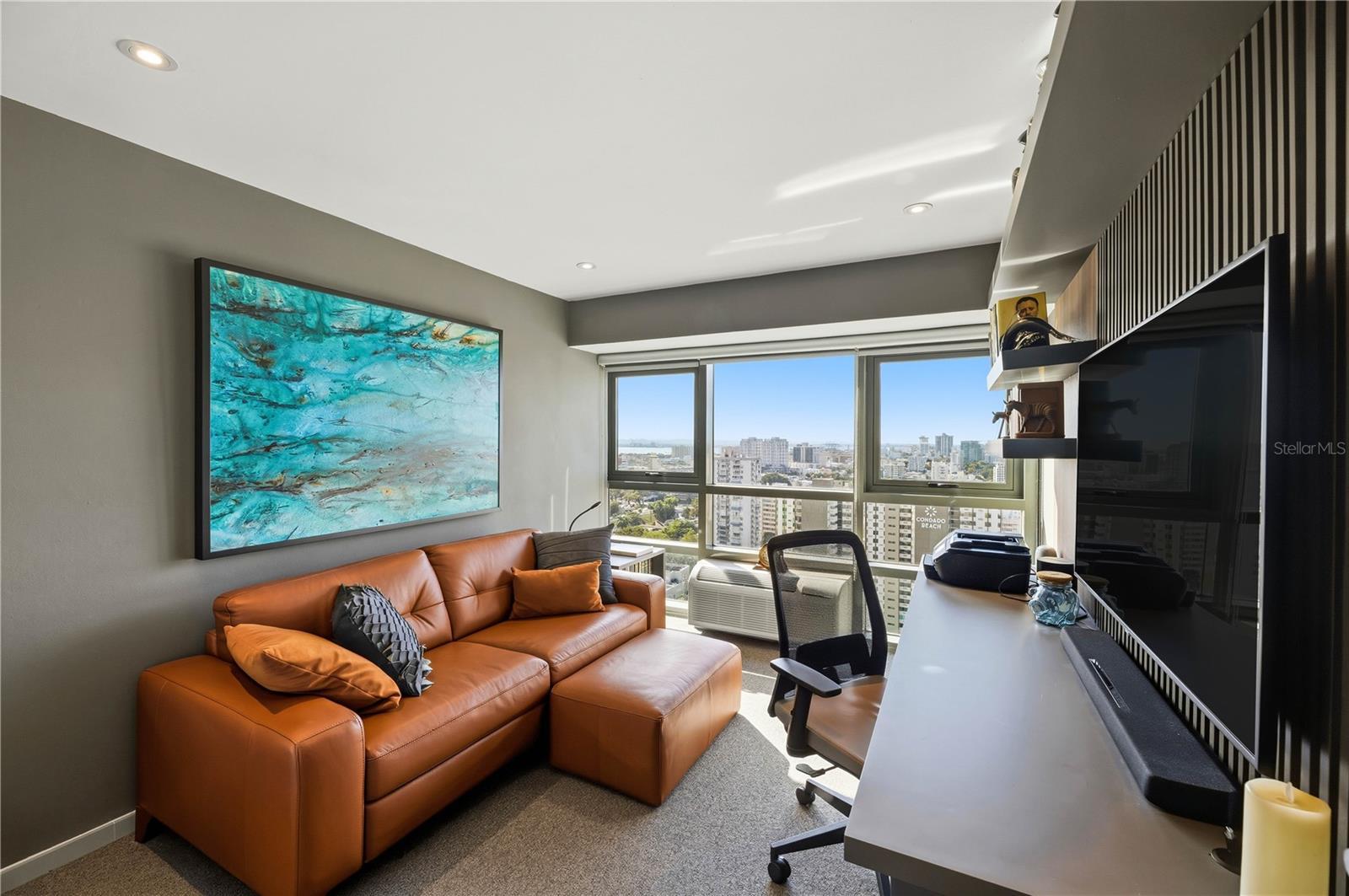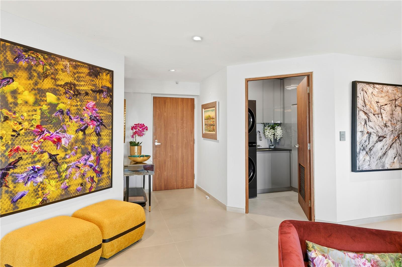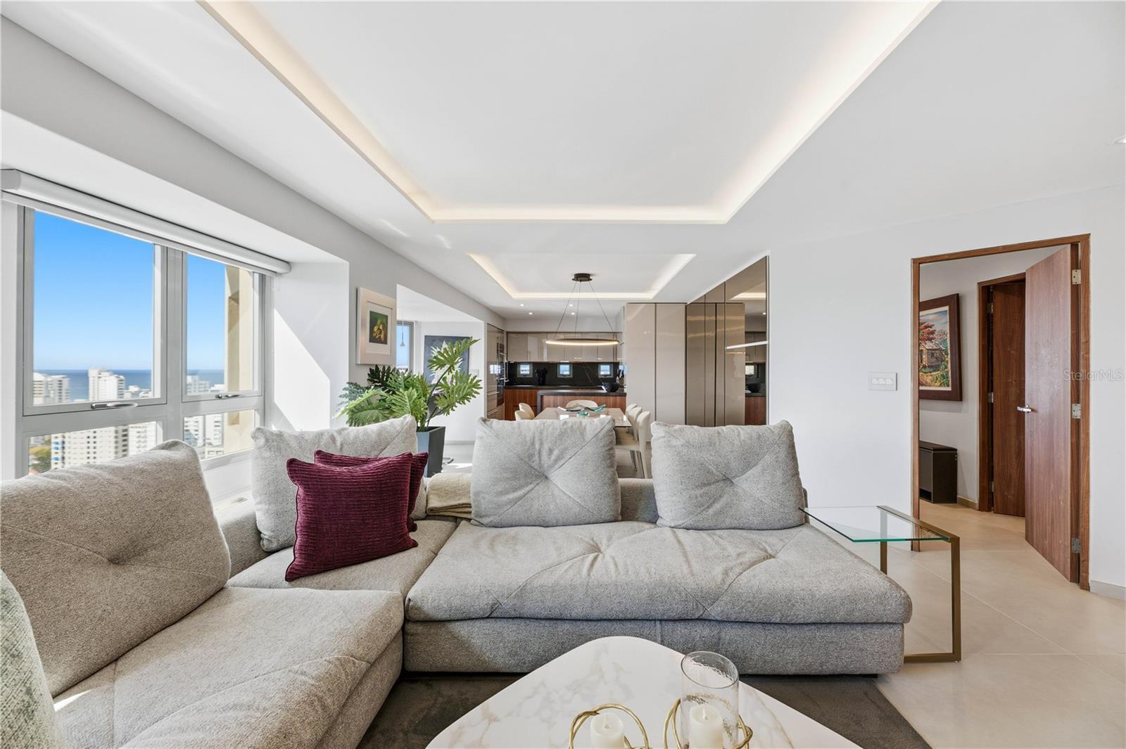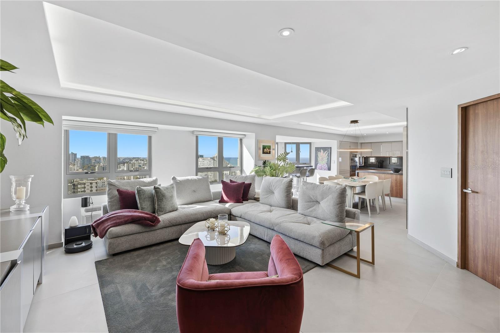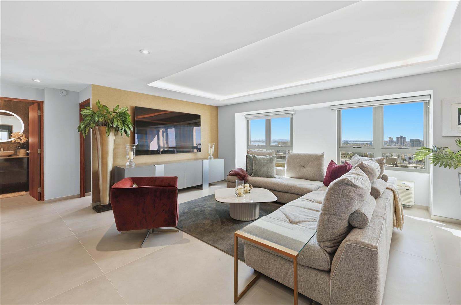 A sophisticated residence designed for executive living in the city, this twenty-second floor home offers two bedrooms and two bathrooms and two dedicated parking spaces. Offered fully furnished and turnkey, this corner home captures north east exposures, ensuring each space is accompanied by abundant natural light and stunning city or ocean views. Completely renovated from stud to beam with no expense spared, Apartment 2201-S represents the ultimate space for those searching for utmost convenience in a prime location within Condado Beach. Gallery Plaza is a full-service building with 24 hour concierge that boasts resort-like amenities including pool, in-house gym, spa and restaurants. Its central location provides residents the opportunity to live both a cosmopolitan and tropical lifestyle. It is conveniently situated only moments away from the beach and is within close proximity to the restaurants and shops of the trendy Calle Loiza district. The complex also includes a full-power generator, water cistern and two reserved parking spaces. Available for immediate occupancy.