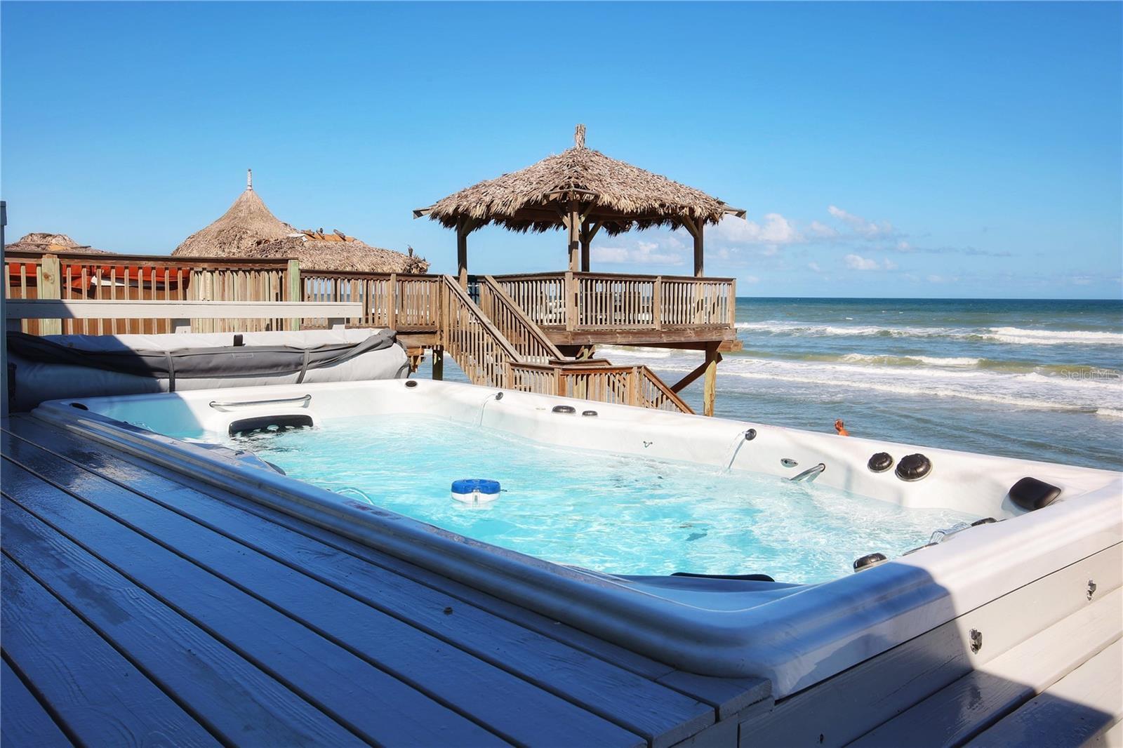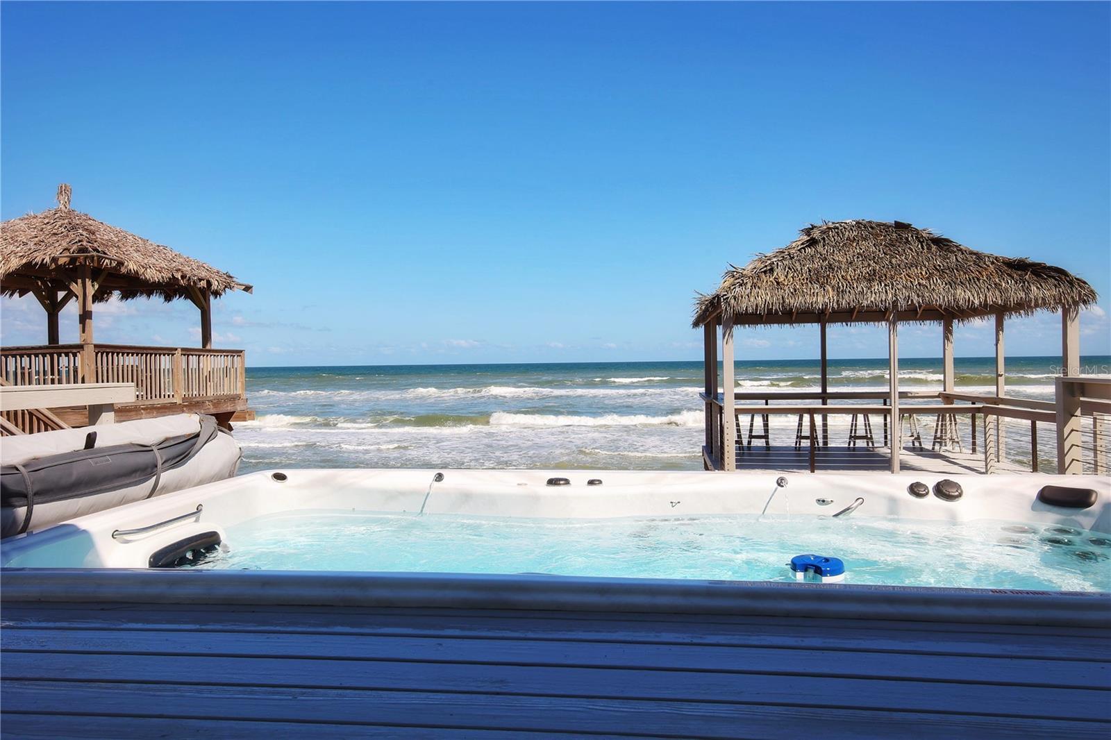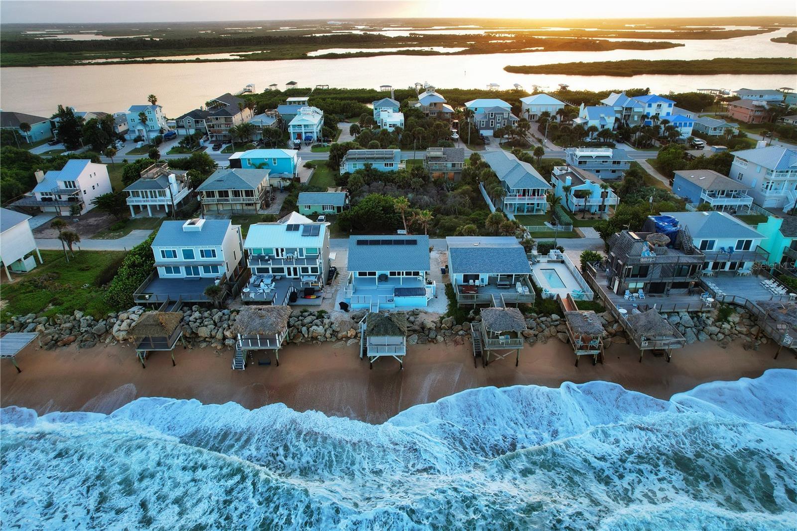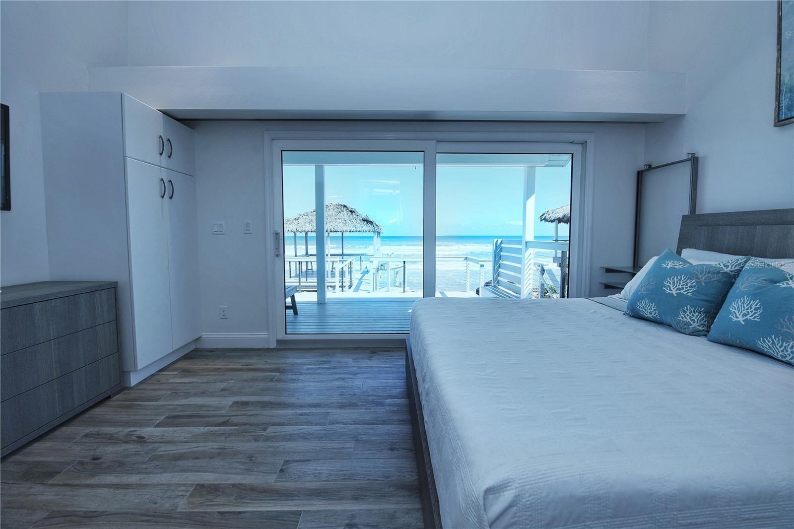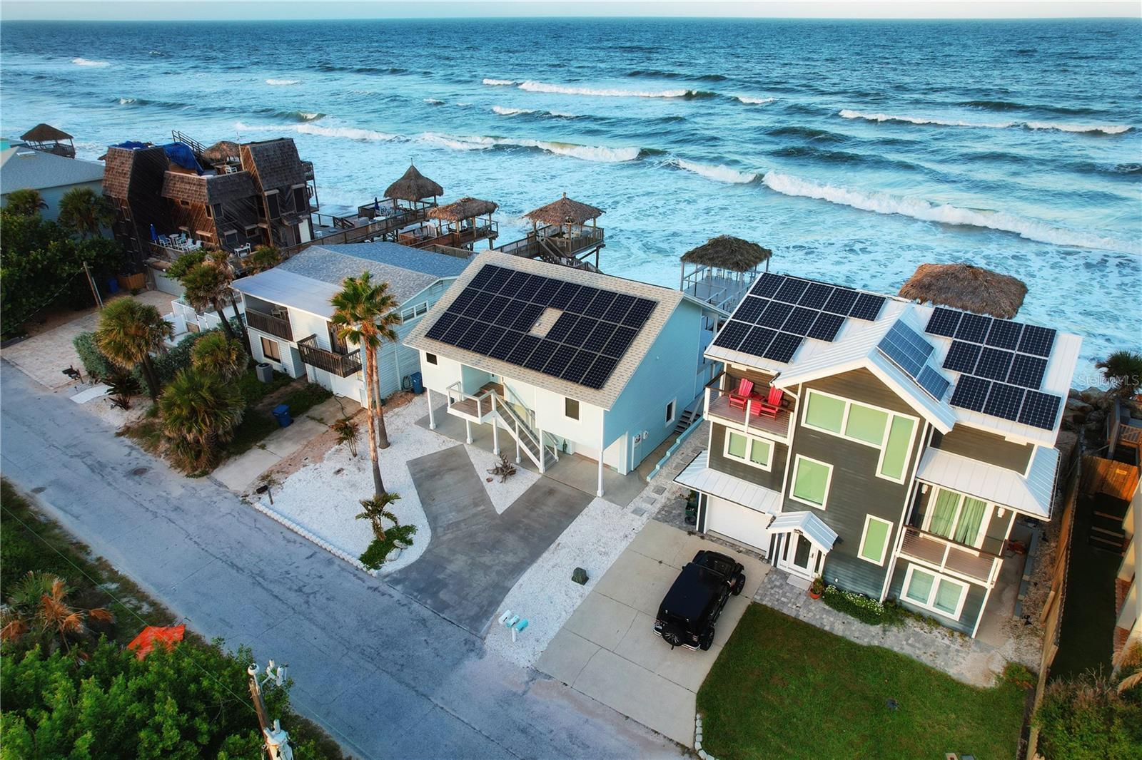 Enjoy coastal living at its finest with this stunning oceanfront, completely turn key home in the exclusive No-drive area of Bethune Beach. This home was completely rebuilt to top of the line perfection in 2016 using master architect Will Miller and builder David Barker along with materials that fulfill Miami Dade hurricane codes to withstand a cat 4 storm. Impeccable craftsmanship and amazing ocean views make this 4 bedroom, 3 full bath home truly one of a kind. Expansive windows and doors overlooking the ocean the highest grade PGT storm rated and have been certified by Sea Turtle Society for light protection. The main floor master bedroom provides stunning ocean views from walls of glass doors along with beautiful contemporary furnishings. Large guest room offers built in closets and has ship like stairs leading to a cozy loft area for the young folks. All baths offer walk in tiled showers with full body jet sprayers and rain head showers. The kitchen, dining area and expansive living area blend seamlessly with soaring ceiling heights and amazing natural light. Kitchen boasts top of the line Bosch Appliances & quartz counter tops/back splash. A 16' wall of glass leads to an expansive deck with 15' Michael Phelps swim spa a large sustainable thatch gazebo built with material to last up to 25 years. Stairs leading from deck offer a quiet private beach for a tranquil coastal experience. Downstairs includes another master along with 4th bedroom and spacious family room area, another full bath and stackable Speed Queen laundry along with additional built in shelving. The outdoor landscape embraces simplicity with low maintenance shells and 2 very large enclosed storage areas Fitted with a 2MW solar panel array by top of the line Sunpower, this home not only ensures energy efficiency with no electric bill but instead generates extra electrical revenue at the end of each year. Additional features include exterior mosquito misting system and expandable spray in insulation for additional cooling/ heating efficiency. Both A/C units were replaced in 2023 with coastal approved double coated units designed to last 7-8 years beachside along with top of the line Carrier handlers inside. This home even offers the option of a long term seasonal tenant that has rented for the past 6 years and would be interested in continuing. This home is being sold including all high end furnishings and decor and is fully stocked for immediate occupancy or rentals. With its exquisite features, breathtaking views and storm ready low maintenance design, this property invites you to own one of the finest homes on this quiet, residential, dead end street that borders Canaveral National Seashore. This neighborhood does not allow short term rentals and has no public parking available.