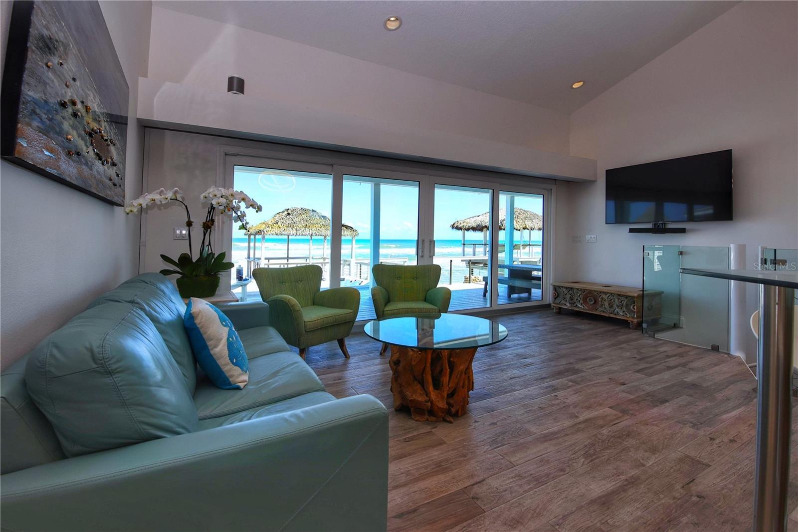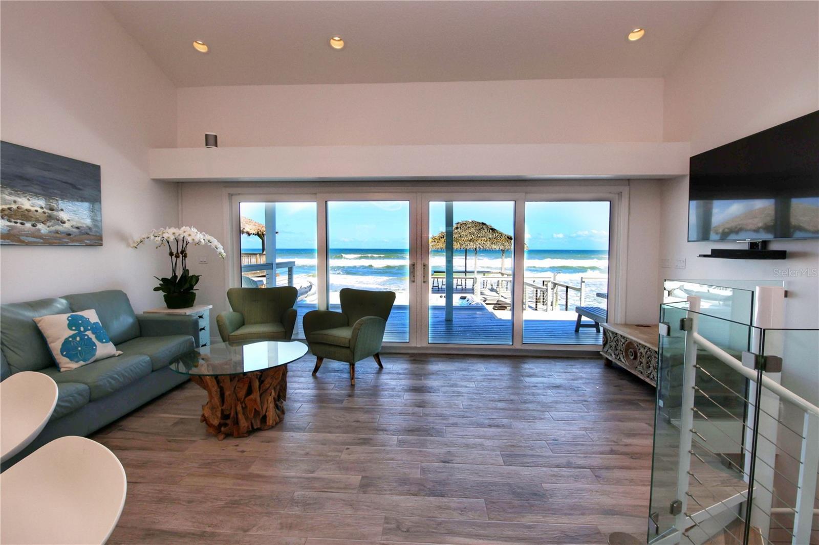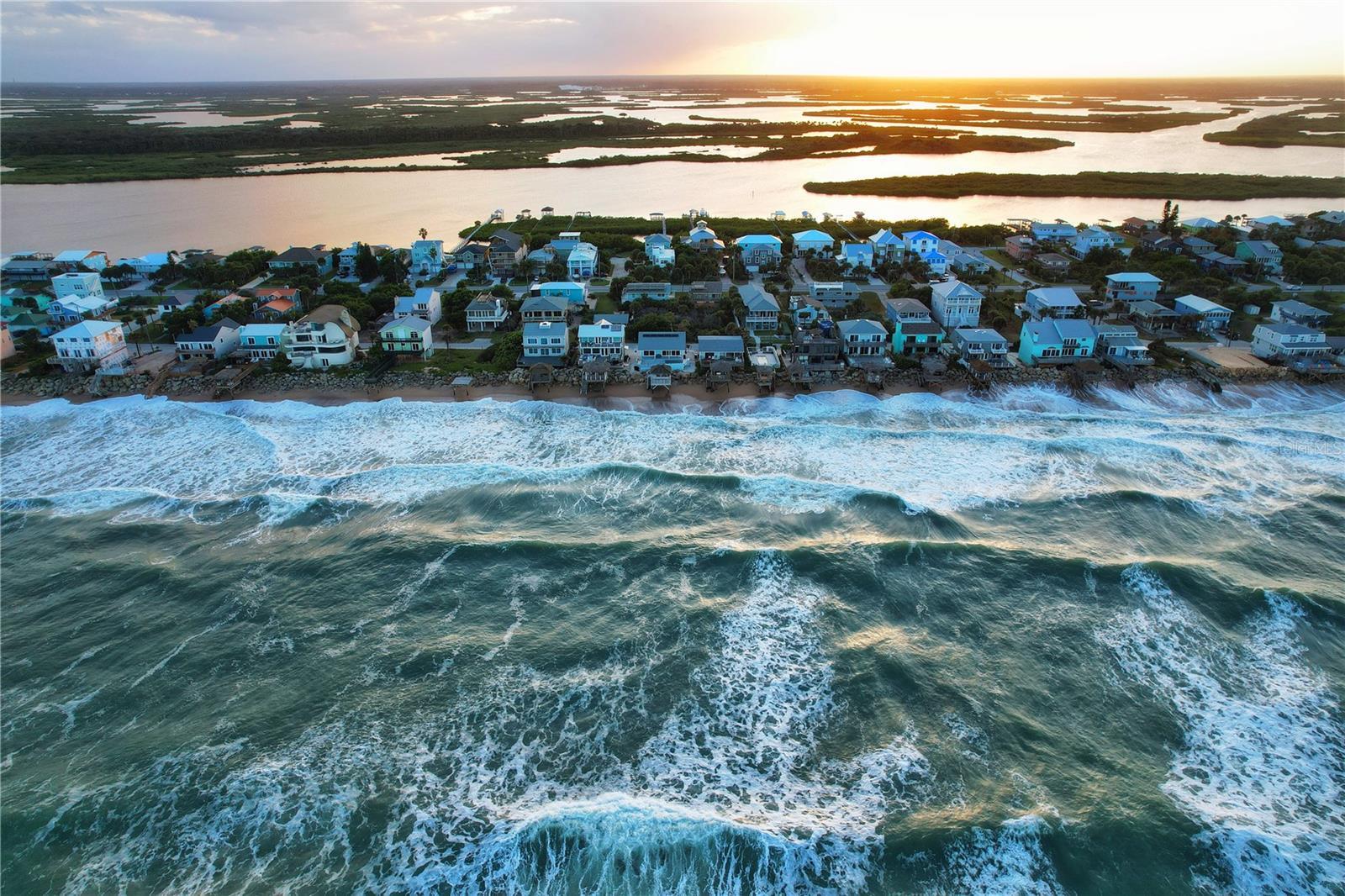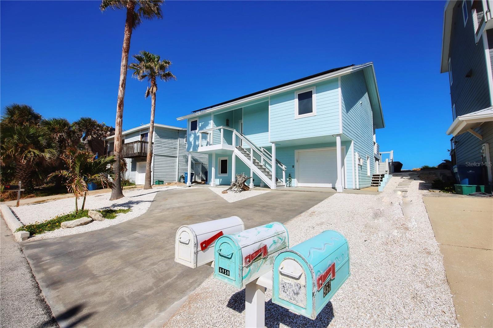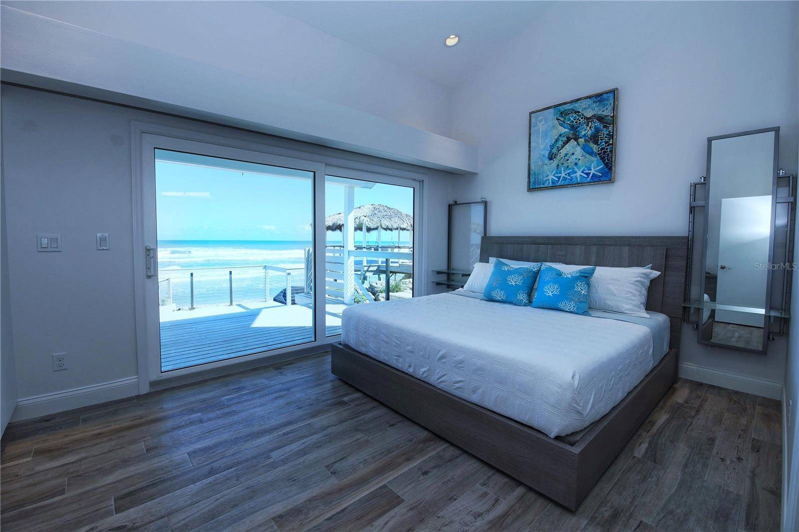 Enjoy coastal living at its finest with this stunning oceanfront, completely turn key home in the exclusive No-drive area of Bethune Beach. This home was completely rebuilt to top of the line perfection in 2016 using master architect Will Miller and builder David Barker along with materials that fulfill Miami Dade hurricane codes to withstand a cat 4 storm. Impeccable craftsmanship and amazing ocean views make this 4 bedroom, 3 full bath home truly one of a kind. Expansive windows and doors overlooking the ocean the highest grade PGT storm rated and have been certified by Sea Turtle Society for light protection. The main floor master bedroom provides stunning ocean views from walls of glass doors along with beautiful contemporary furnishings. Large guest room offers built in closets and has ship like stairs leading to a cozy loft area for the young folks. All baths offer walk in tiled showers with full body jet sprayers and rain head showers. The kitchen, dining area and expansive living area blend seamlessly with soaring ceiling heights and amazing natural light. Kitchen boasts top of the line Bosch Appliances & quartz counter tops/back splash. A 16' wall of glass leads to an expansive deck with 15' Michael Phelps swim spa a large sustainable thatch gazebo built with material to last up to 25 years. Stairs leading from deck offer a quiet private beach for a tranquil coastal experience. Downstairs includes another master along with 4th bedroom and spacious family room area, another full bath and stackable Speed Queen laundry along with additional built in shelving. The outdoor landscape embraces simplicity with low maintenance shells and 2 very large enclosed storage areas Fitted with a 2MW solar panel array by top of the line Sunpower, this home not only ensures energy efficiency with no electric bill but instead generates extra electrical revenue at the end of each year. Additional features include exterior mosquito misting system and expandable spray in insulation for additional cooling/ heating efficiency. Both A/C units were replaced in 2023 with coastal approved double coated units designed to last 7-8 years beachside along with top of the line Carrier handlers inside. This home even offers the option of a long term seasonal tenant that has rented for the past 6 years and would be interested in continuing. This home is being sold including all high end furnishings and decor and is fully stocked for immediate occupancy or rentals. With its exquisite features, breathtaking views and storm ready low maintenance design, this property invites you to own one of the finest homes on this quiet, residential, dead end street that borders Canaveral National Seashore. This neighborhood does not allow short term rentals and has no public parking available.