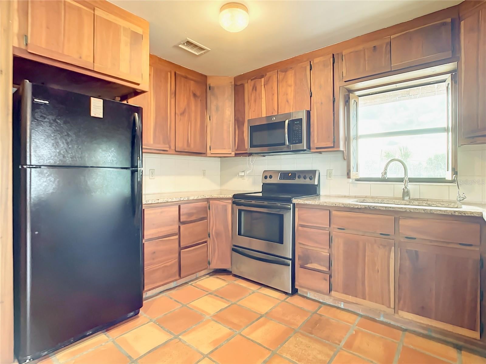- Ceiling Fans(s), Eat-in Kitchen, Living Room/Dining Room Combo, Open Floorplan, Solid Surface Counters, Solid Wood Cabinets