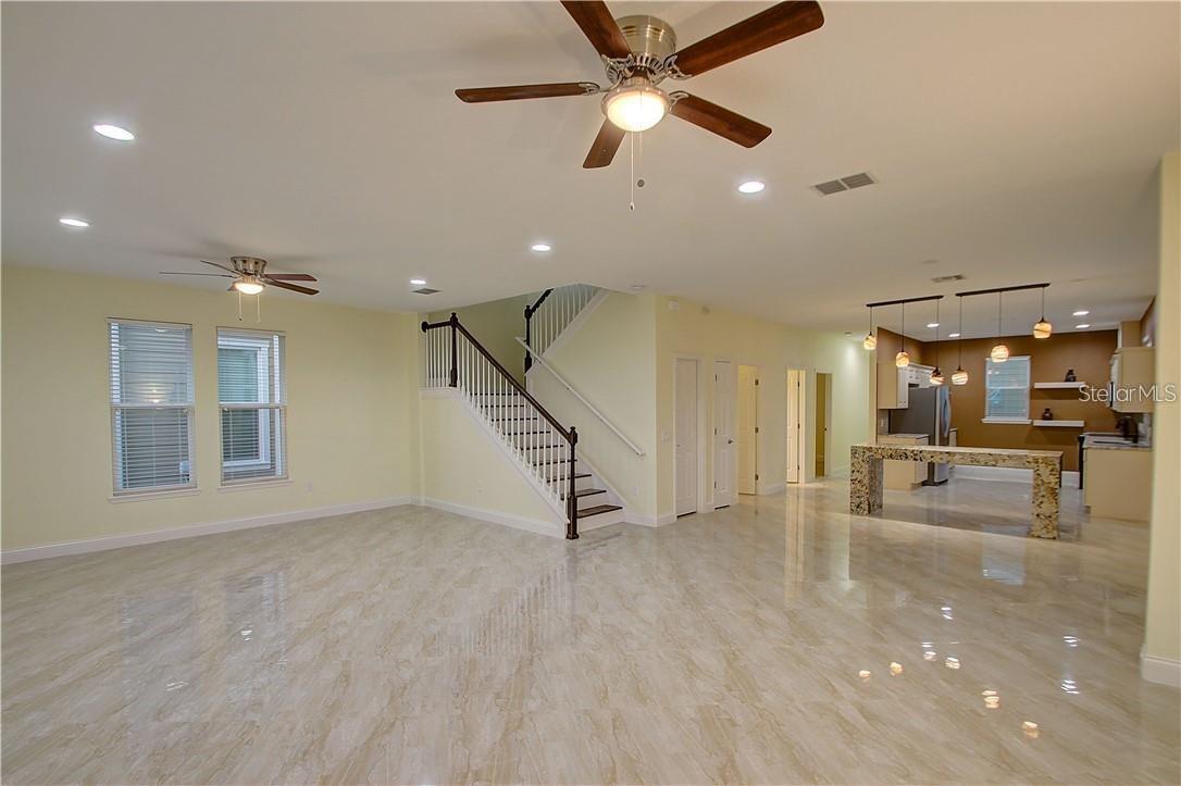 - Ceiling Fans(s), Eat-in Kitchen, Kitchen/Family Room Combo, Open Floorplan, PrimaryBedroom Upstairs, Solid Wood Cabinets, Split Bedroom, Stone Counters, Thermostat, Walk-In Closet(s), Window Treatments