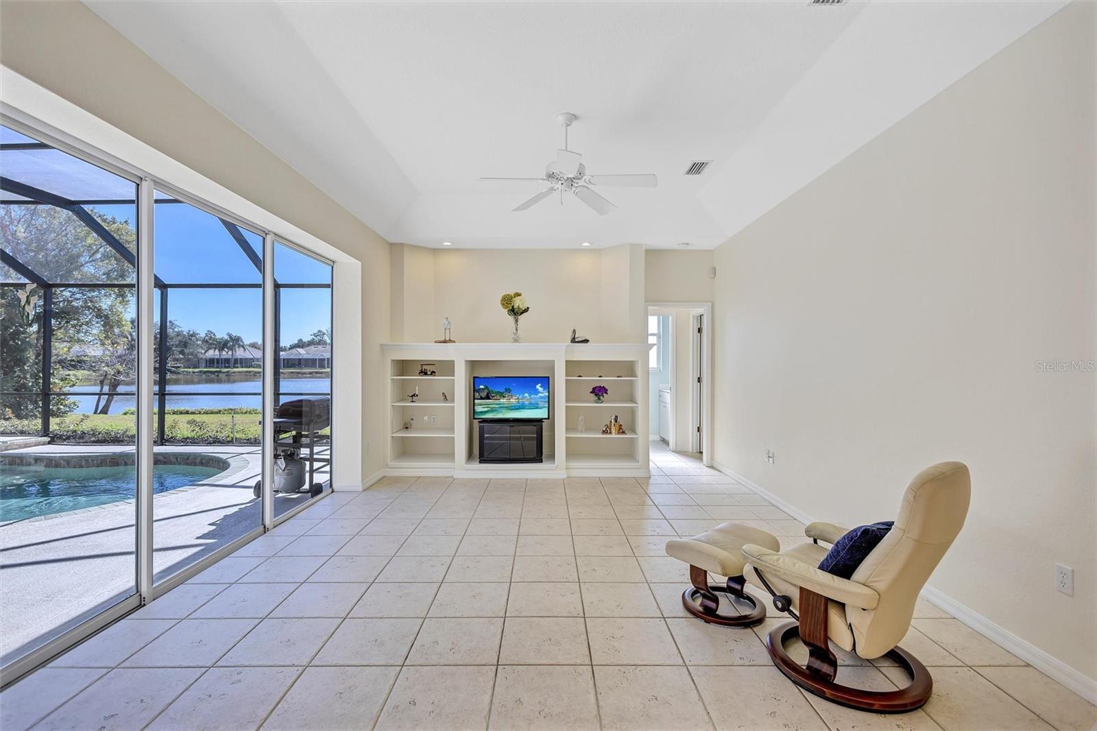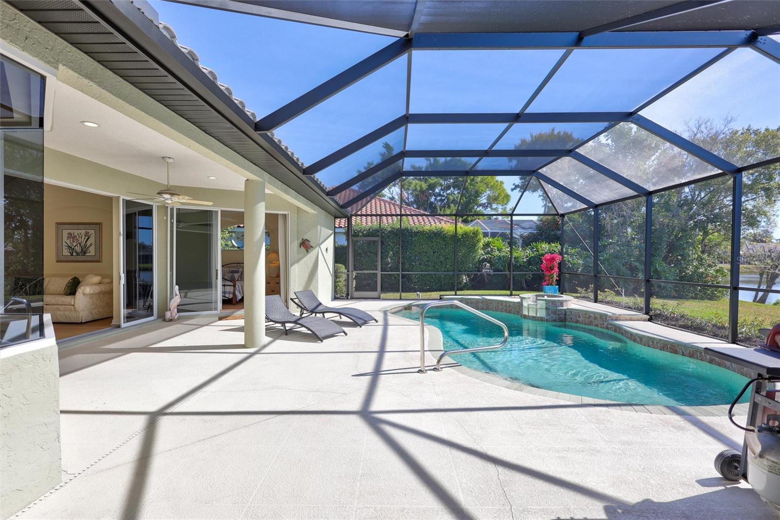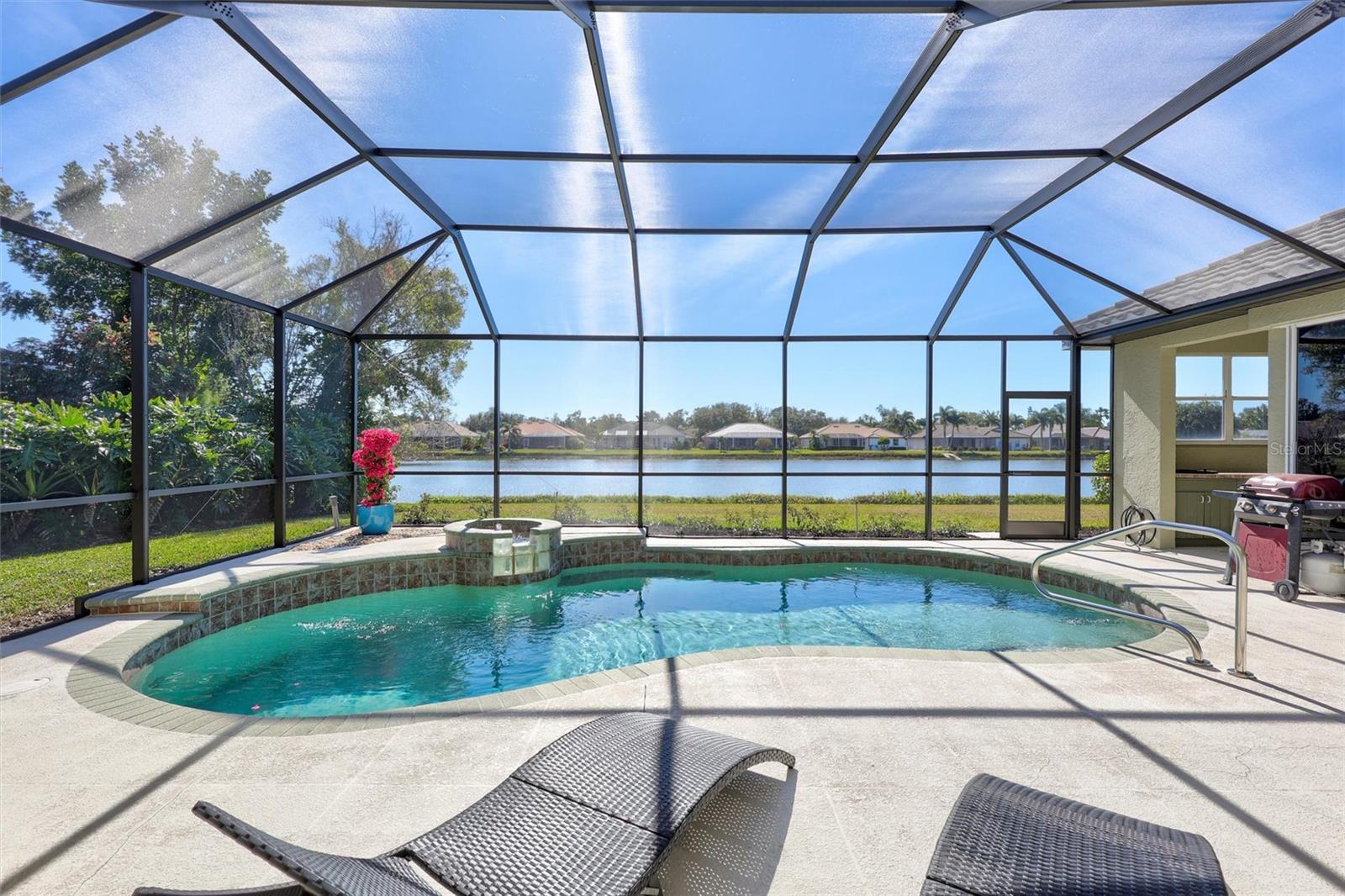 Under contract-accepting backup offers. Luxurious lakeside living is awaiting you in this stunning 4 bedroom, 3 bath house in serene Three Oaks. This lovely 2524 square foot residence showcases an open layout, a large kitchen-family room combination with an abundance of natural light. The primary suite, and all living spaces overlook the lake, and open to the screened, outdoor retreat featuring a bonus space outside the primary bedroom, a heated pool, outdoor kitchen and relaxing sunrises and sunsets. Move in ready updates include: Recently replaced tile roof, high-end dishwasher, washing machine & dryer. Brand new luxury vinyl plank flooring, new pool pump & heater, new hot water heater and newly renovated screened retreat with pool & outdoor kitchen, Lifestyle amenities include: world renowned Siesta Key beaches, outstanding restaurants, museums, boutiques & nightlife, top tier public schools, high quality healthcare, and an abundance of activities and hobbies for all ages.