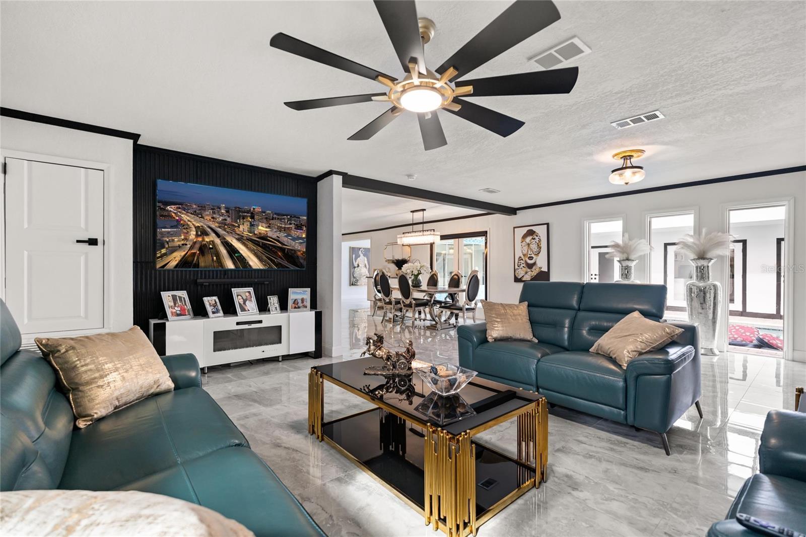 - Ceiling Fans(s), Crown Molding, Eat-in Kitchen, L Dining, Living Room/Dining Room Combo, Open Floorplan, Primary Bedroom Main Floor