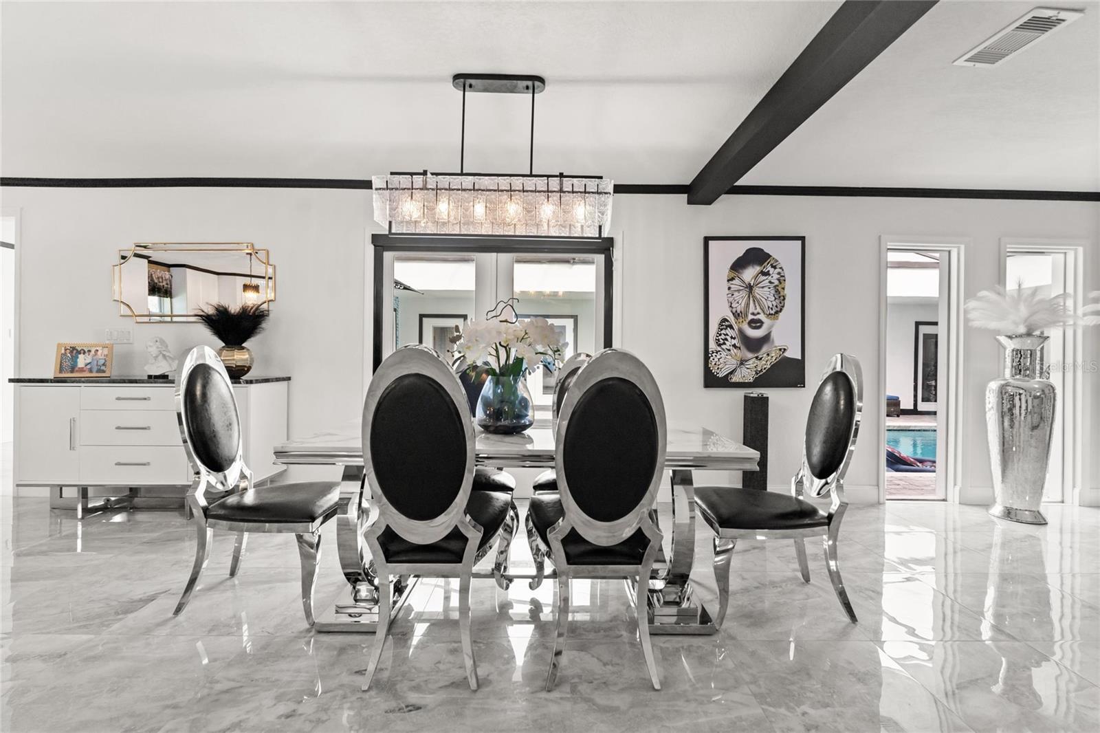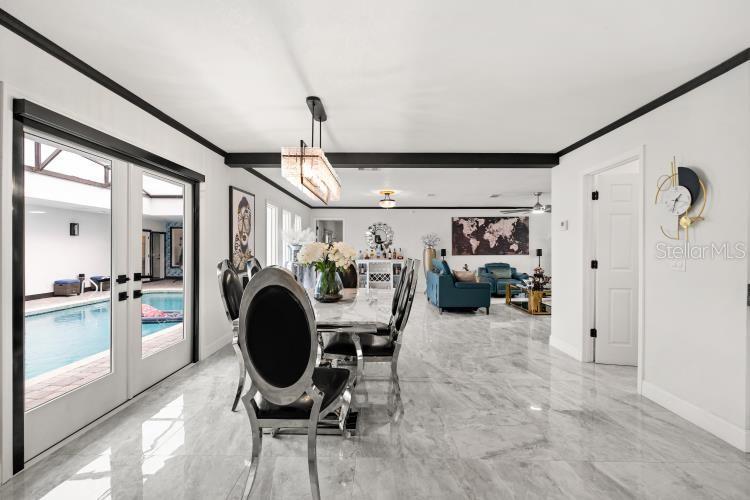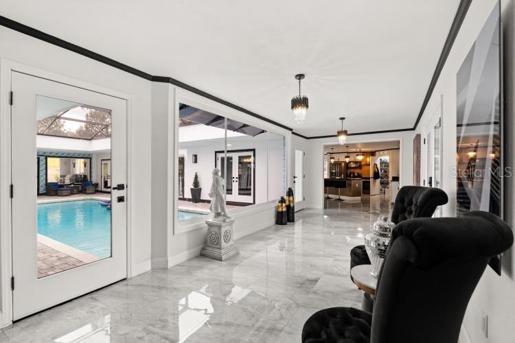 Welcome to Bay Hill, a completely renovated home, new roof, AC, new kitchen cabinets with quartz counters, charcoal appliances, touchless faucet, all four bathrooms new tile, vanities, faucets, toilets. New Windows, doors, custom gutter system, very generous landscaping professionally done. New sprinkler system, new horshoe brick paver driveway extending to rear of home, pavers include kitchen patio and rear open and covered patio with summer kitchen, paint inside and out, very high end ceramic tile in living areas and bathrooms with laminate flooring in bedrooms. Home features a seperate laundry room. The pool is located in the center of the home with a partial new screened roof, new pool equipment, pool has been resurfaced, matching brick pavers for pool deck, Ring door bell and security system. New fans and lighting throughout, tankless hot water tank, new electrical panels, new garage built last year. All these renovations have been done in the last 18/mo. Minuites away from Sandlake's restaurant row, Disney, Universal Studios, major thoroughfares and top rated schools. Measurements are believed to be correct but not guaranteed. Contact realtor for viewing instructions.