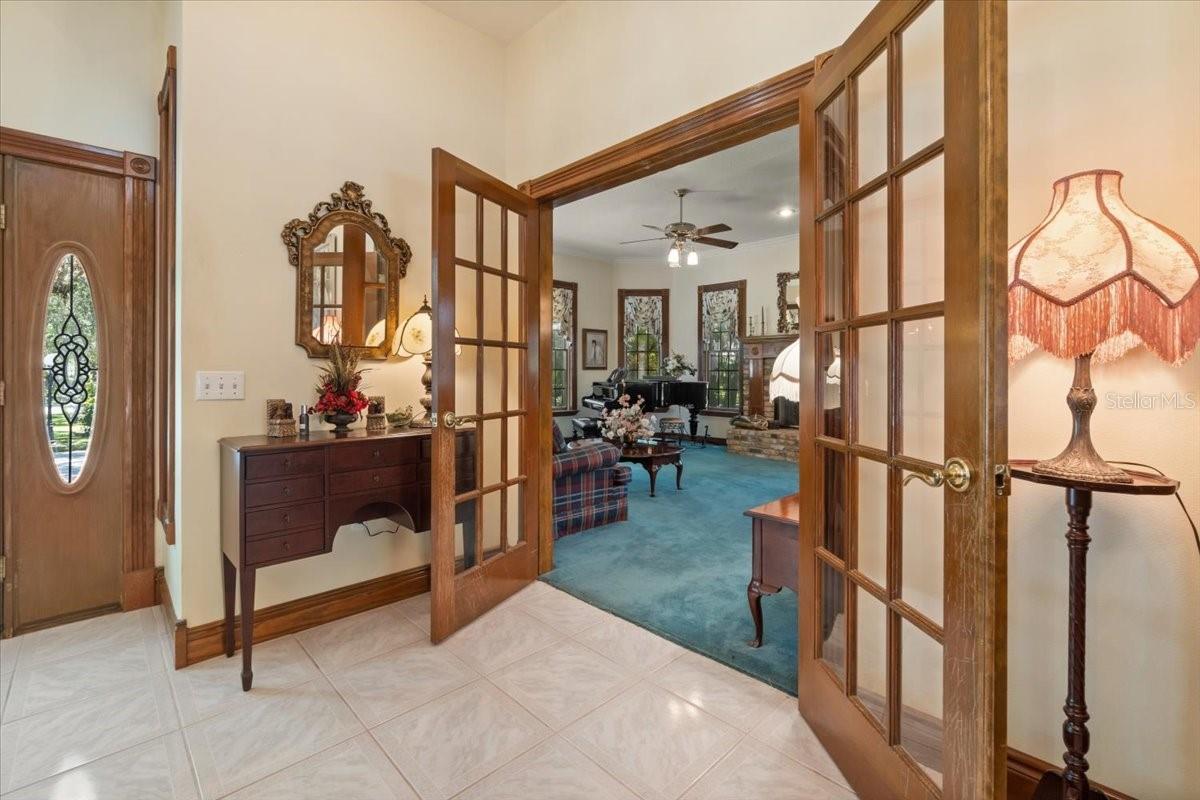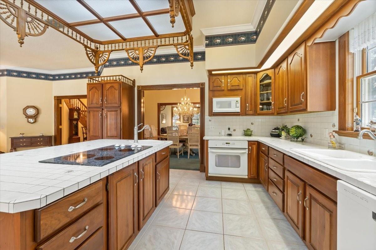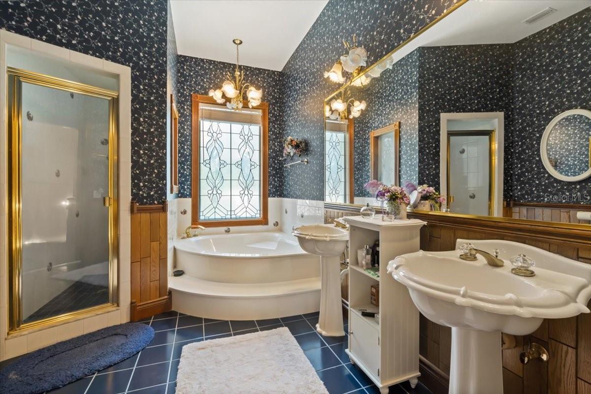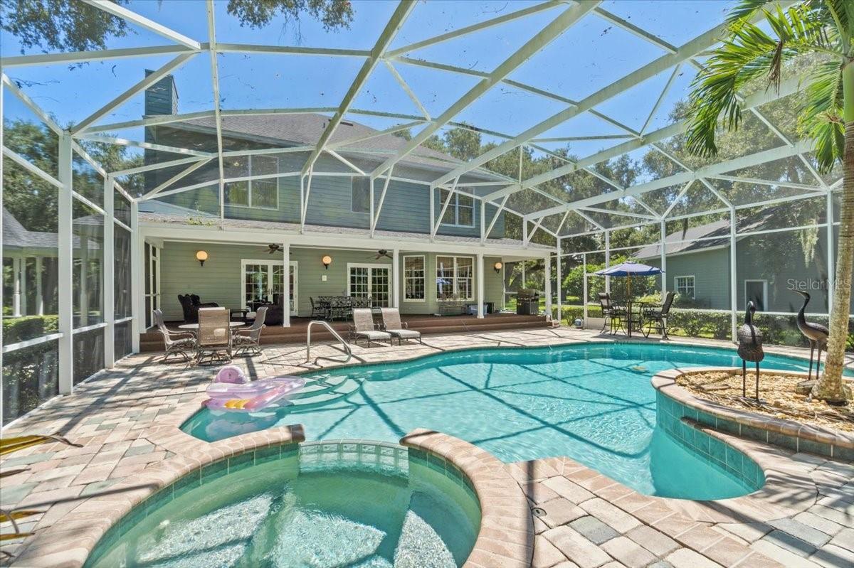 Enter this Gated Estate Community bordering Lake Toho, with one-plus acre home lots, and find yourself in the middle of "Old Florida" - with century-old Oak Hammock Trees and lush landscaping. An authentically designed Victorian mansion built by a locally renowned Master Builder Thomas Logan, this home is reminiscent of an earlier era with timeless architecture. Old World Charm abounds: A warm interplay of hand-hewn wood molding and trim on windows and doors, and ornate chandeliers * Elegant, clear leaded glass windows are translucent fine works of art * A signature sculptured staircase is a showpiece as you enter * 3 handsome fireplaces, each with its own old brick or stone façade and wood trim * Expansive Rooms on the first floor to relax and entertain * Extra large Primary Suite and two guest bedrooms in the main home, and 2 additional bedrooms in a Garage Apartment above a detached 3-car garage. Garage Apartment is perfect for guests or annual rental income opportunity. Primary Suite is surrounded by vintage leaded windows and admits light for a soothing, spa-like calmness. Additional Amenities: * 2021 ROOF * In-ground 20' x 37' Pool and Spa sits inside a Screen Enclosure with an extra large Patio and view of the wooded surroundings * Additional 6 car detached garage can accommodate two additional car lifts or a boat * Community Amenities include a picnic area, tennis courts and pond with a dock and fountain. Only minutes away from Downtown Kissimmee and 30 minutes from major attractions. Come see this beauty, and Imagine yourself in "Old Florida"!