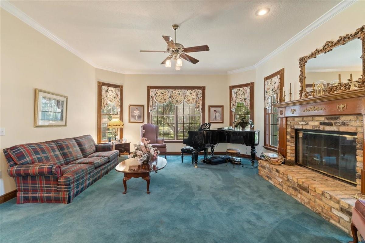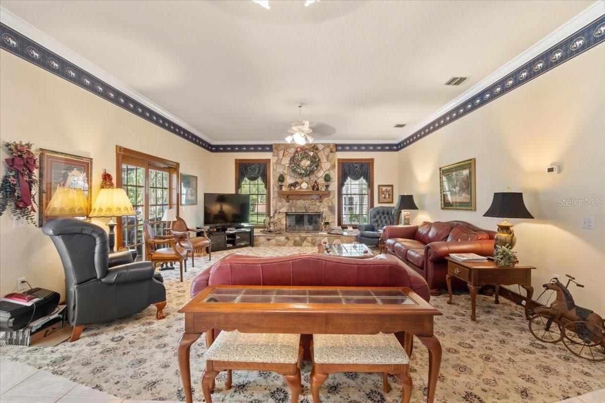 - Family Room, Living Room, Primary Bedroom, Stone, Wood Burning