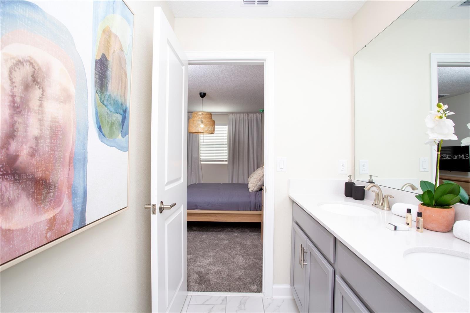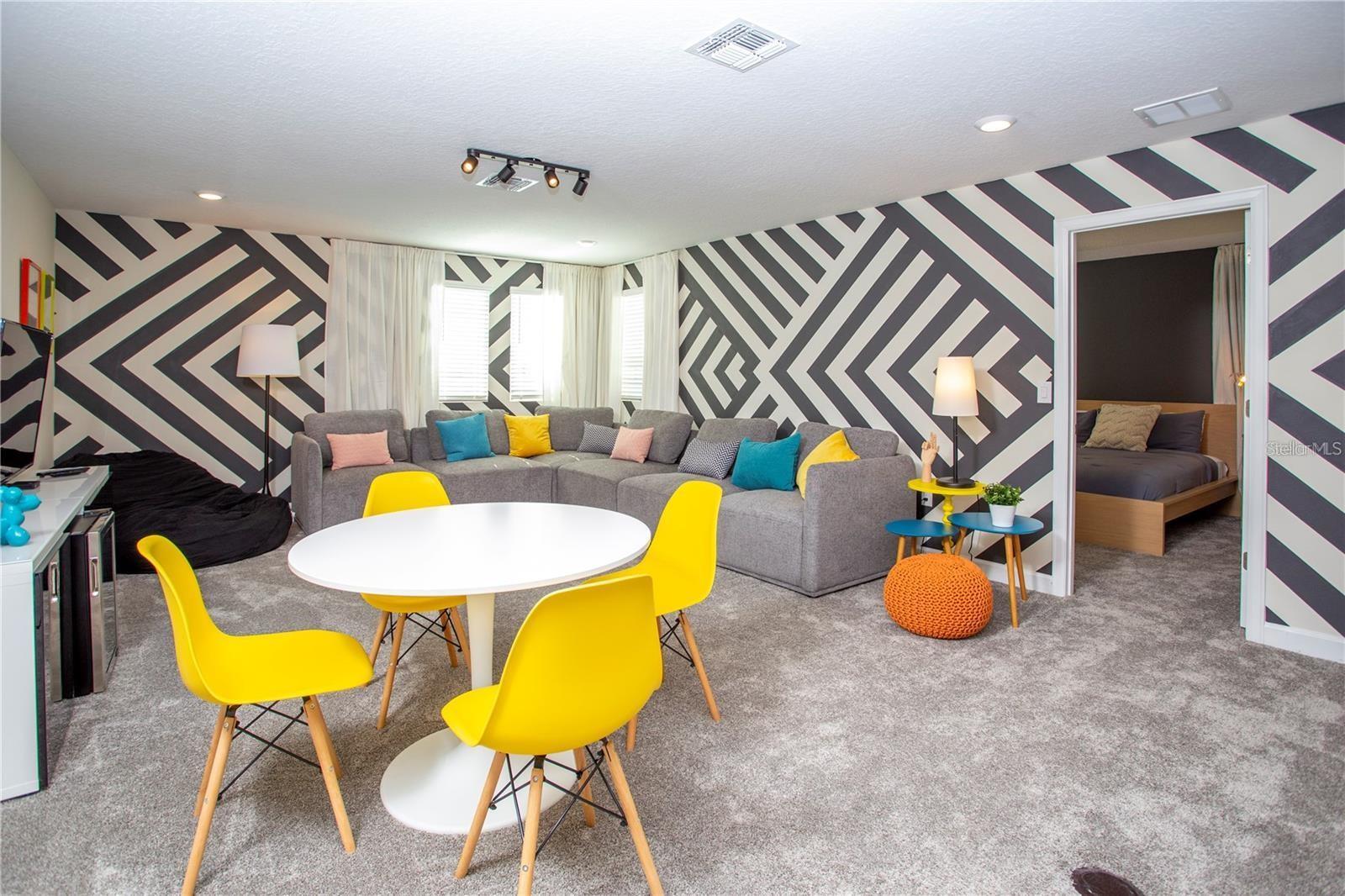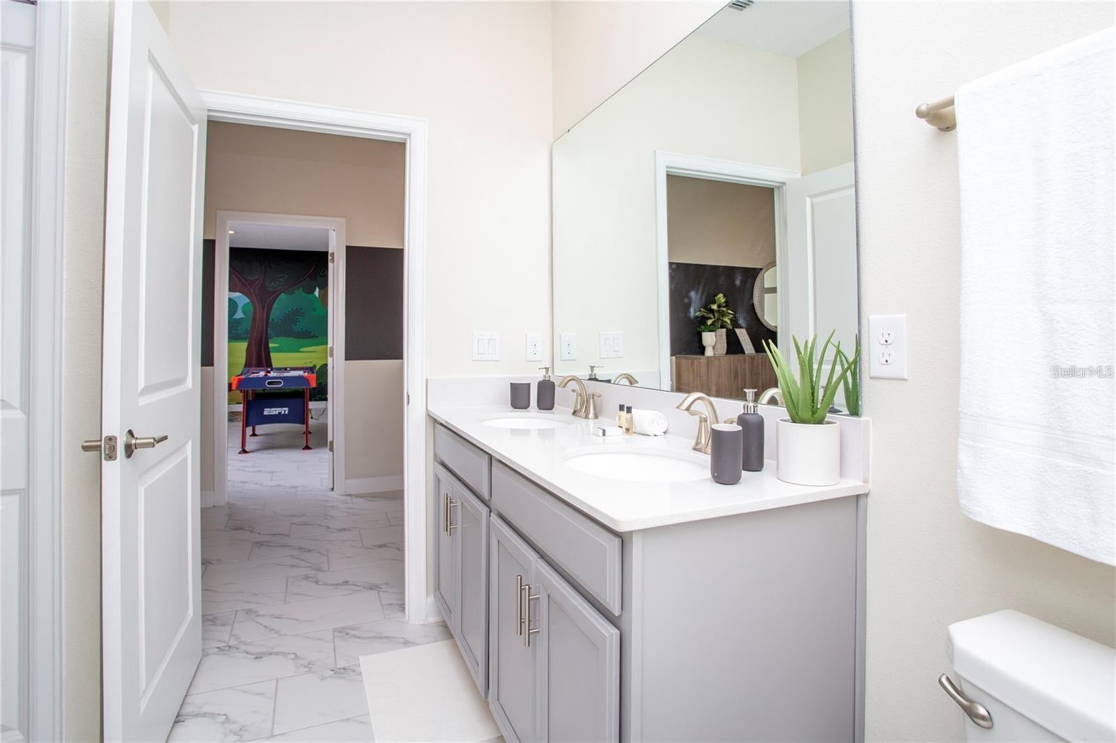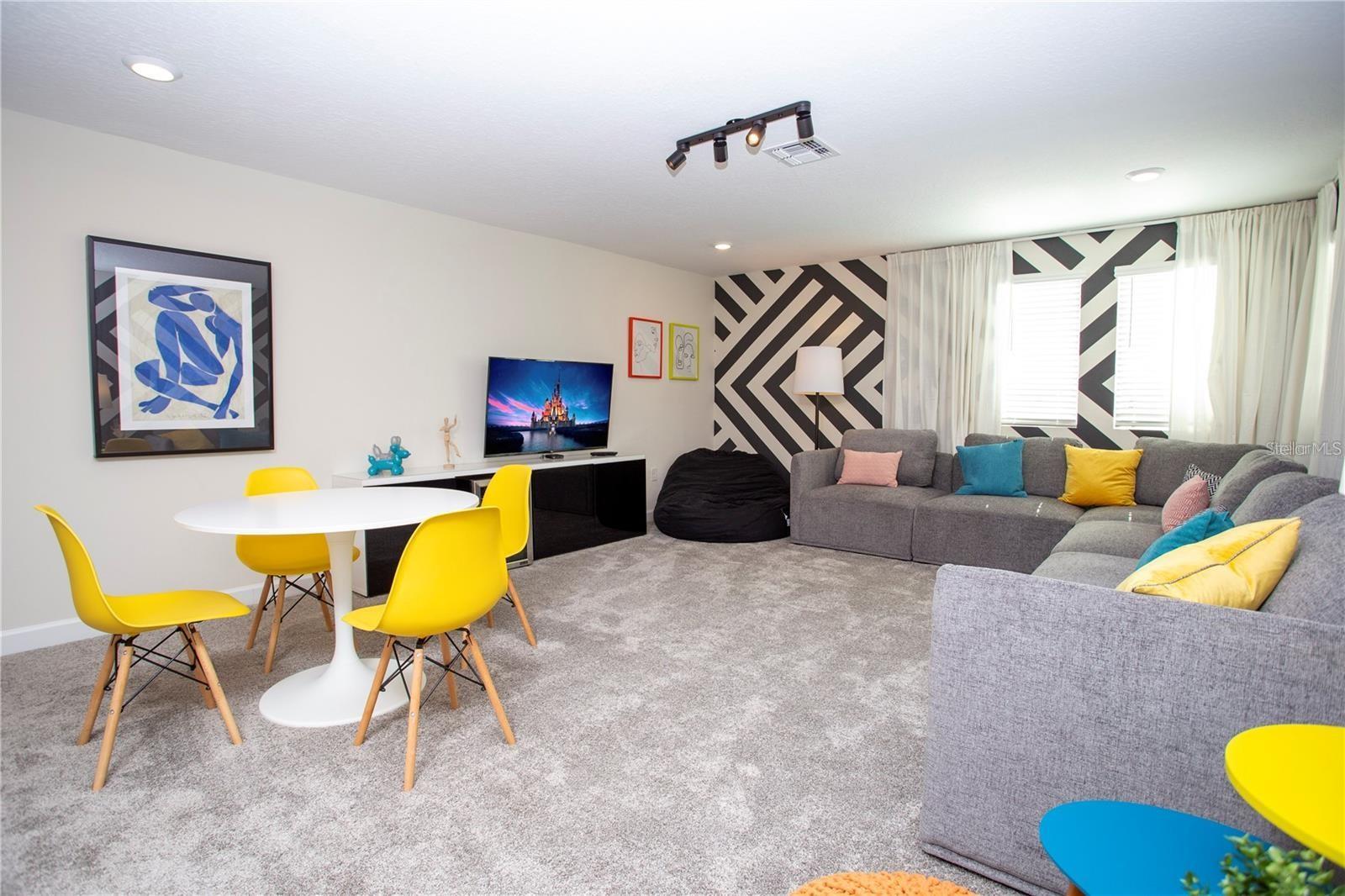 Welcome to your ultimate getaway at the Storey Lake Resort! This remarkable 7-bedroom, 5-bathroom sanctuary offers unparalleled luxury, providing an unforgettable retreat just moments away from the enchanting world of Disney. Step into a spacious haven with an open layout seamlessly connecting the expansive living area, dining space, and a gourmet kitchen adorned with granite countertops and stainless steel appliances. Soft hues throughout the residence foster an airy and inviting atmosphere, while the kitchen island offers additional seating for gatherings with loved ones. The primary suite is a serene oasis, featuring ample space and a walk-in closet for your convenience. Upstairs, a versatile loft awaits, perfect for relaxation or entertainment. Each bedroom is generously proportioned, ensuring everyone enjoys their own private haven during your stay. Step outside to your secluded paradise – a screened-in pool area showcasing a heated spa for ultimate relaxation. Bask in the Florida sun in complete seclusion, creating memories that will last a lifetime. As a resident of the exclusive Storey Lake Resort, this vacation home grants you access to an array of amenities. The resort's clubhouse boasts a tiki bar/grille, canoe/kayak rentals, a lazy river, fitness center, miniature golf, a serene pool, splash pad, double slide, volleyball court, and sports court. It's more than just a residence; it's an immersive experience. What truly distinguishes this home is its exquisite interior design, reminiscent of a model home with unparalleled sophistication and flair. Fully furnished and outfitted, it serves as the perfect backdrop for your vacation. Convenience is paramount, with the property situated just minutes from the entrance to Disney World and a short drive from Orlando International Airport, International Drive, Seaworld, Universal Studios, and the Premium Outlet Malls. Don't let this extraordinary retreat pass you by. Arrange your viewing today and revel in refined living at its finest. Your dream vacation awaits!