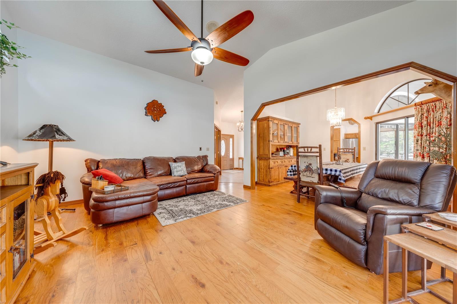 CHECK IT OUT!! Don't miss out on this extraordinary RARE one owner property! Welcome to your ultimate countryside retreat! This stunning property sprawls over 5 acres with grandfather oaks and includes not one, but two homes. The main residence boasts a spacious 4-bedroom, 2-bathroom split floor plan layout, a metal roof, and an A/C unit that was replaced in 2021, as well as a full replumb in 2021. Inside, you'll find an expansive living area and ample space for all your needs. upgraded kitchen features wood cabinets, granite countertops, an eating space, and Stainless Steel appliances. Additionally, it offers two living rooms and a large dining room area that is perfect for family gatherings. Step outside to enjoy an inviting large pool with Spa that was just resurfaced, along with a newly renovated pool deck and back porch with a new pool heater installed in 2023. The in-law suite offers an additional 2 bedrooms and 1 bathroom, making it ideal for extended family or guests. It features a large storage room and a separate laundry room that doubles as a mudroom, all leading to a cozy screened porch and a convenient carport. For horse enthusiasts, the property includes an impressive 8-stall horse barn equipped with power and water, and a concrete center aisle, making it a perfect setup for equestrian activities or an income producing Opportunity.. The barn also includes a tack room, hay storage, and a wash rack for horses, ensuring that your equine companions have everything they need. extraordinary property combines the peace of rural living with the convenience of modern amenities. Moreover, the estate features lush pastures and a riding arena, making it an equestrian's dream. The property's location offers easy access to nearby highways, golf courses, riding trails and Floridas Theme parks, enhancing the outdoor experience. This picturesque estate is the perfect haven for families and their four-legged friends. Don't miss the chance to make this exceptional property your new home! Call today for your private showing!
