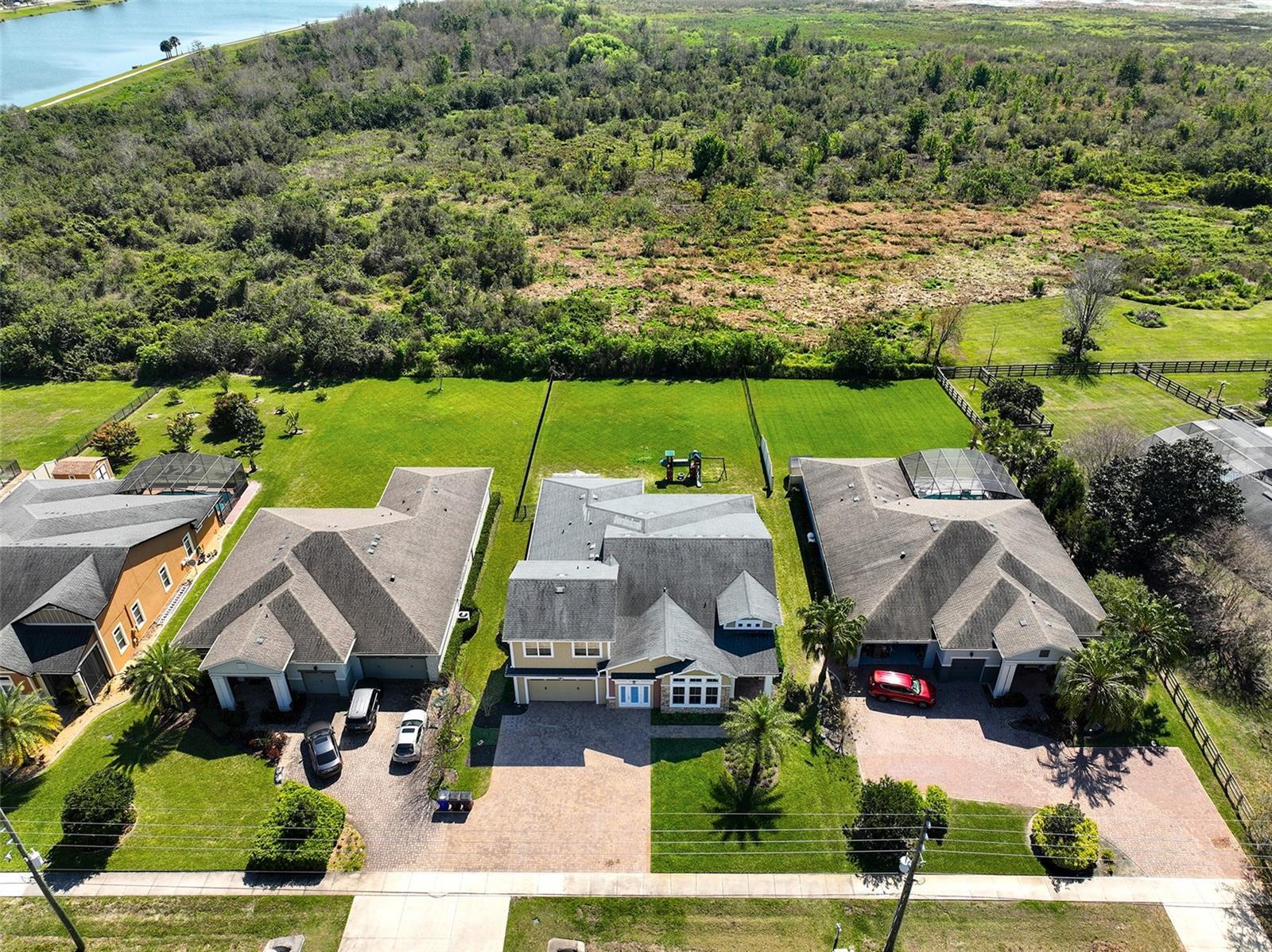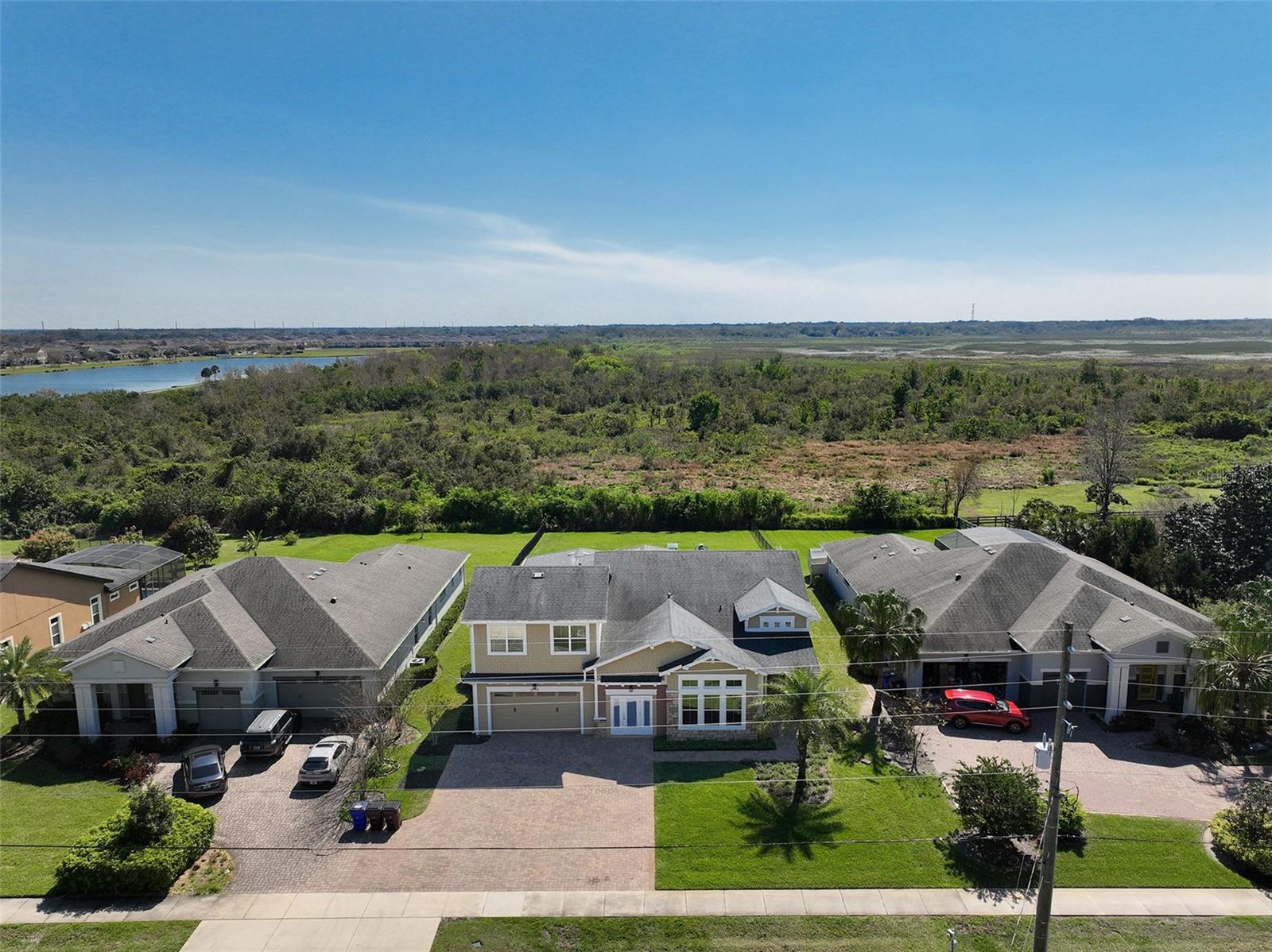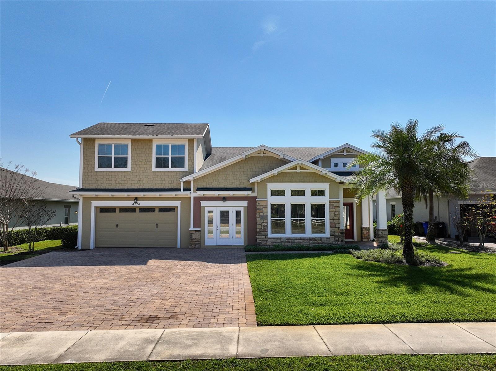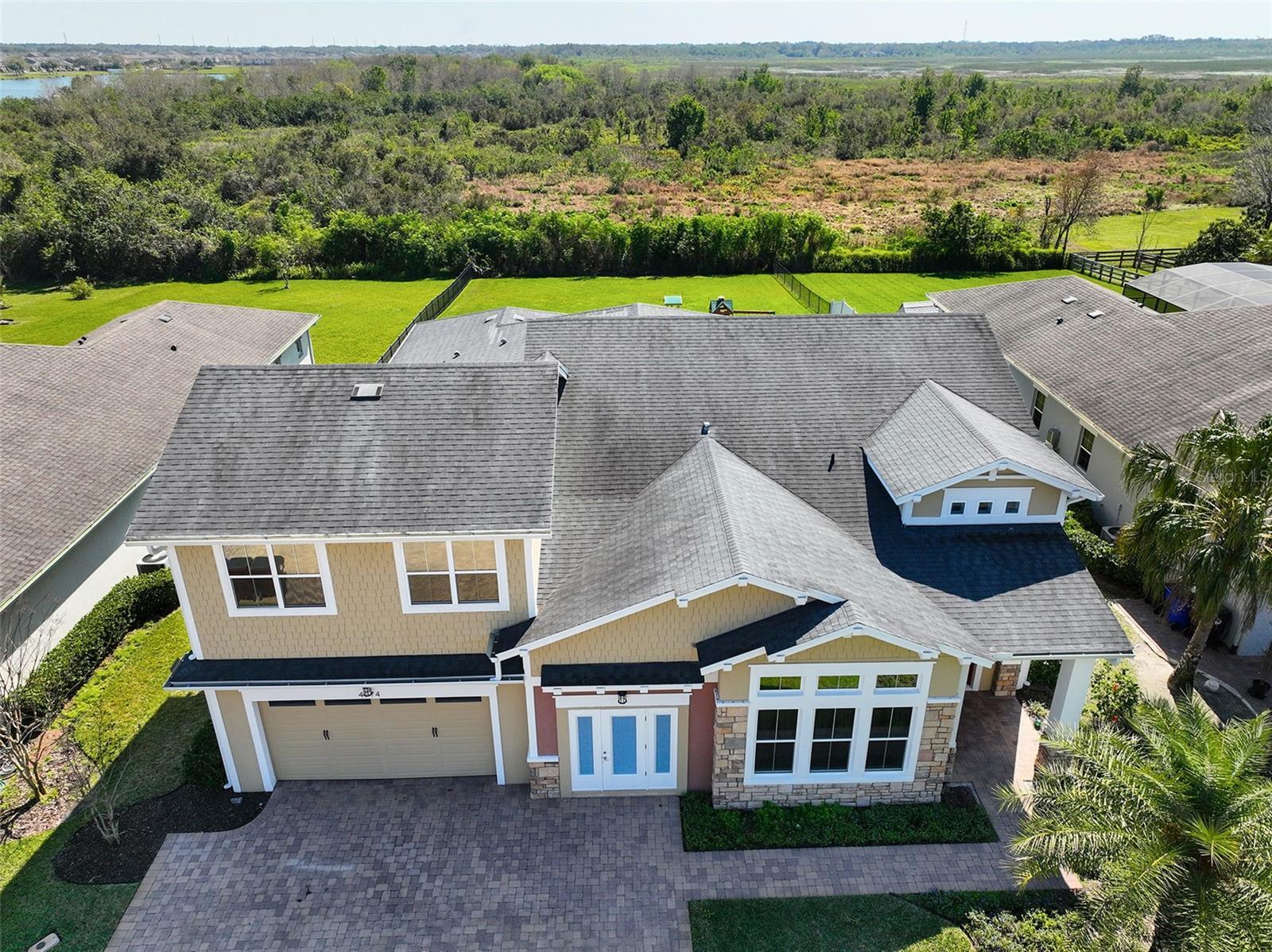 Located just a few miles from LAKEFRONT activities! Amazing GREENBELT views! HANDICAP accessible! Situated on .43 acres. NO HOA! REME HALO Air purification system! GENERAC home generator! TINTED windows! New GUTTERS!. This stunning home offers plenty of space both inside and out, with an extra-wide paver driveway that provides ample parking for multi-car household and guests. Neutral colors complement the beautiful tile flooring that runs throughout the majority of the home. To the right of the foyer is a custom-design space, combining the original flex room and third car garage for a handicap accessible suite. Having it's own entrance also makes it ideal for multi-generational living or a guest retreat. Kitchen, dining, and living areas flow seamlessly for a truly open floor concept for today's lifestyle. Showcasing solid wood cabinetry with 42" uppers and hardware, the kitchen combines quality and style featuring built-in oven and microwave, and stylish stone countertops. A sprawling island seats 8-10 comfortably, making it a natural gathering spot. The owner's suite is tucked away for privacy and features a tray ceiling, 2 oversized walk-in closets and greenbelt views. Luxurious ensuite bath includes dual sinks, stone vanity top, walk-in shower with bench, linen storage and private water closet. Two additional downstair bedrooms have ample closet space, while the 3rd bathroom features upgraded shower tile and granite vanity top that provides plenty of room for daily essentials. To complete the first floor, the laundry room is thoughtfully laid out with cabinets, wash-tub, and counter space for folding clothes and organization. Upstairs, a spacious bedroom with it's own ensuite bath is perfect as a guest suite or flexibility for a media or game room. For your outdoor enjoyment, double sliding doors from the dining and living room opens to an expansive covered, screened-in lanai. A large open patio invites you to unwind and enjoy our Florida weather, while taking in the serene greenbelt views. Conveniently located near a variety of restaurants, shopping, and Lake Nona Medical City. Don't miss out on this incredible opportunity to own this rare blend of convenience, spacious living and well-planned design.