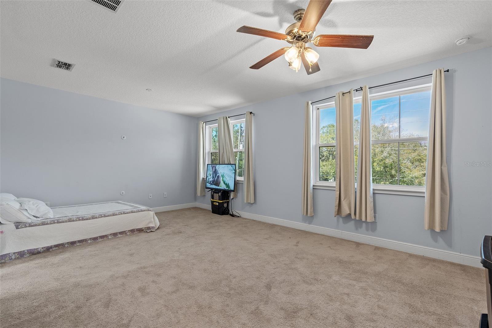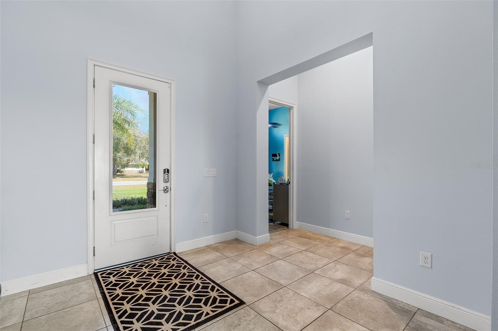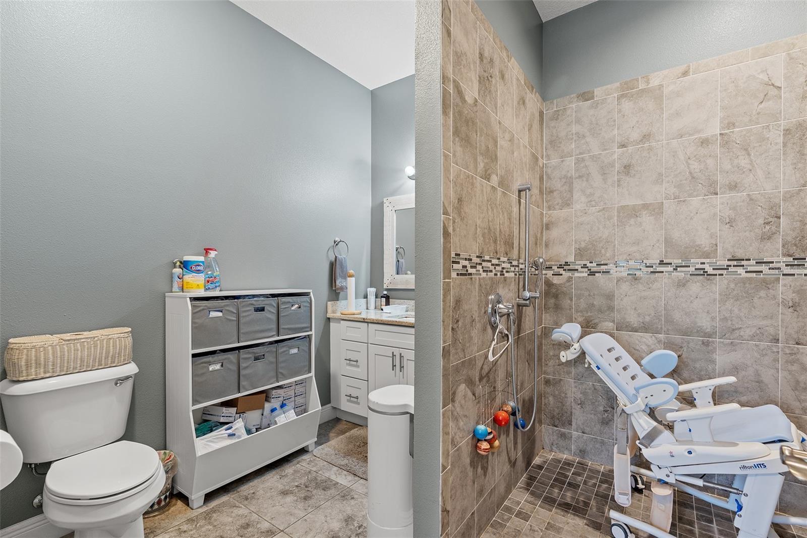 Located just a few miles from LAKEFRONT activities! Amazing GREENBELT views! HANDICAP accessible! Situated on .43 acres. NO HOA! REME HALO Air purification system! GENERAC home generator! TINTED windows! New GUTTERS!. This stunning home offers plenty of space both inside and out, with an extra-wide paver driveway that provides ample parking for multi-car household and guests. Neutral colors complement the beautiful tile flooring that runs throughout the majority of the home. To the right of the foyer is a custom-design space, combining the original flex room and third car garage for a handicap accessible suite. Having it's own entrance also makes it ideal for multi-generational living or a guest retreat. Kitchen, dining, and living areas flow seamlessly for a truly open floor concept for today's lifestyle. Showcasing solid wood cabinetry with 42" uppers and hardware, the kitchen combines quality and style featuring built-in oven and microwave, and stylish stone countertops. A sprawling island seats 8-10 comfortably, making it a natural gathering spot. The owner's suite is tucked away for privacy and features a tray ceiling, 2 oversized walk-in closets and greenbelt views. Luxurious ensuite bath includes dual sinks, stone vanity top, walk-in shower with bench, linen storage and private water closet. Two additional downstair bedrooms have ample closet space, while the 3rd bathroom features upgraded shower tile and granite vanity top that provides plenty of room for daily essentials. To complete the first floor, the laundry room is thoughtfully laid out with cabinets, wash-tub, and counter space for folding clothes and organization. Upstairs, a spacious bedroom with it's own ensuite bath is perfect as a guest suite or flexibility for a media or game room. For your outdoor enjoyment, double sliding doors from the dining and living room opens to an expansive covered, screened-in lanai. A large open patio invites you to unwind and enjoy our Florida weather, while taking in the serene greenbelt views. Conveniently located near a variety of restaurants, shopping, and Lake Nona Medical City. Don't miss out on this incredible opportunity to own this rare blend of convenience, spacious living and well-planned design.