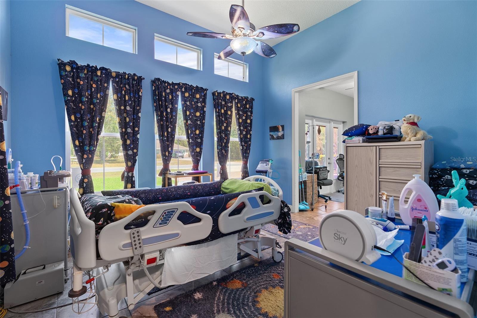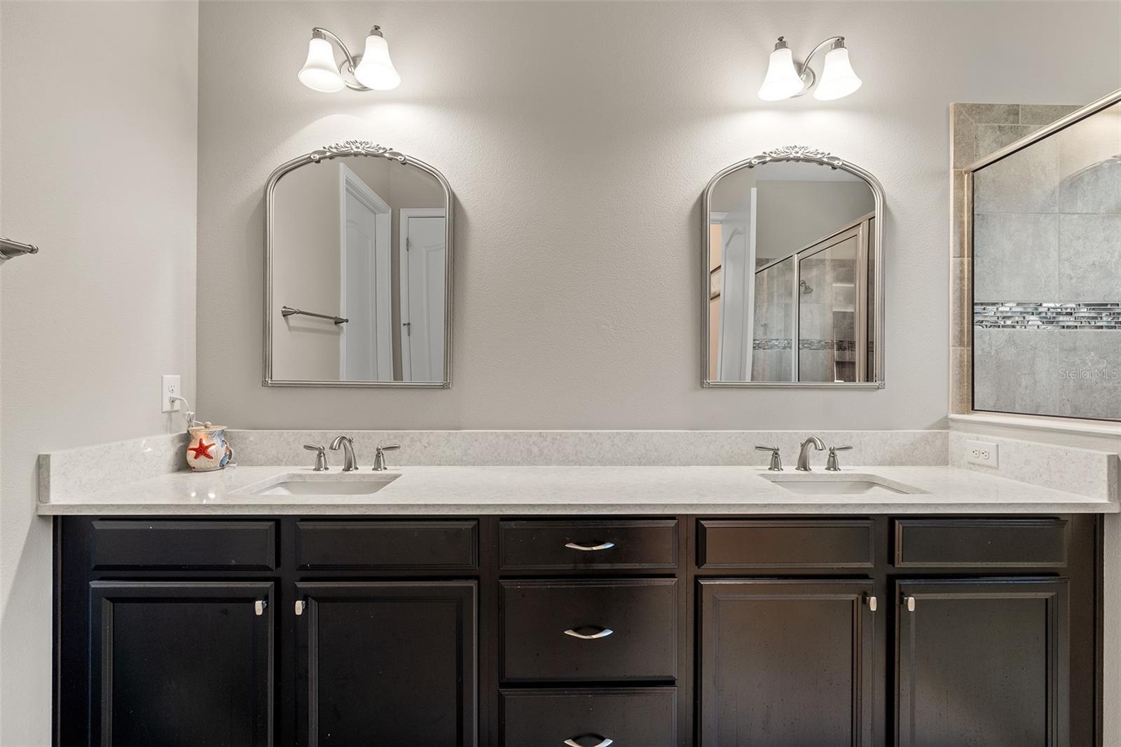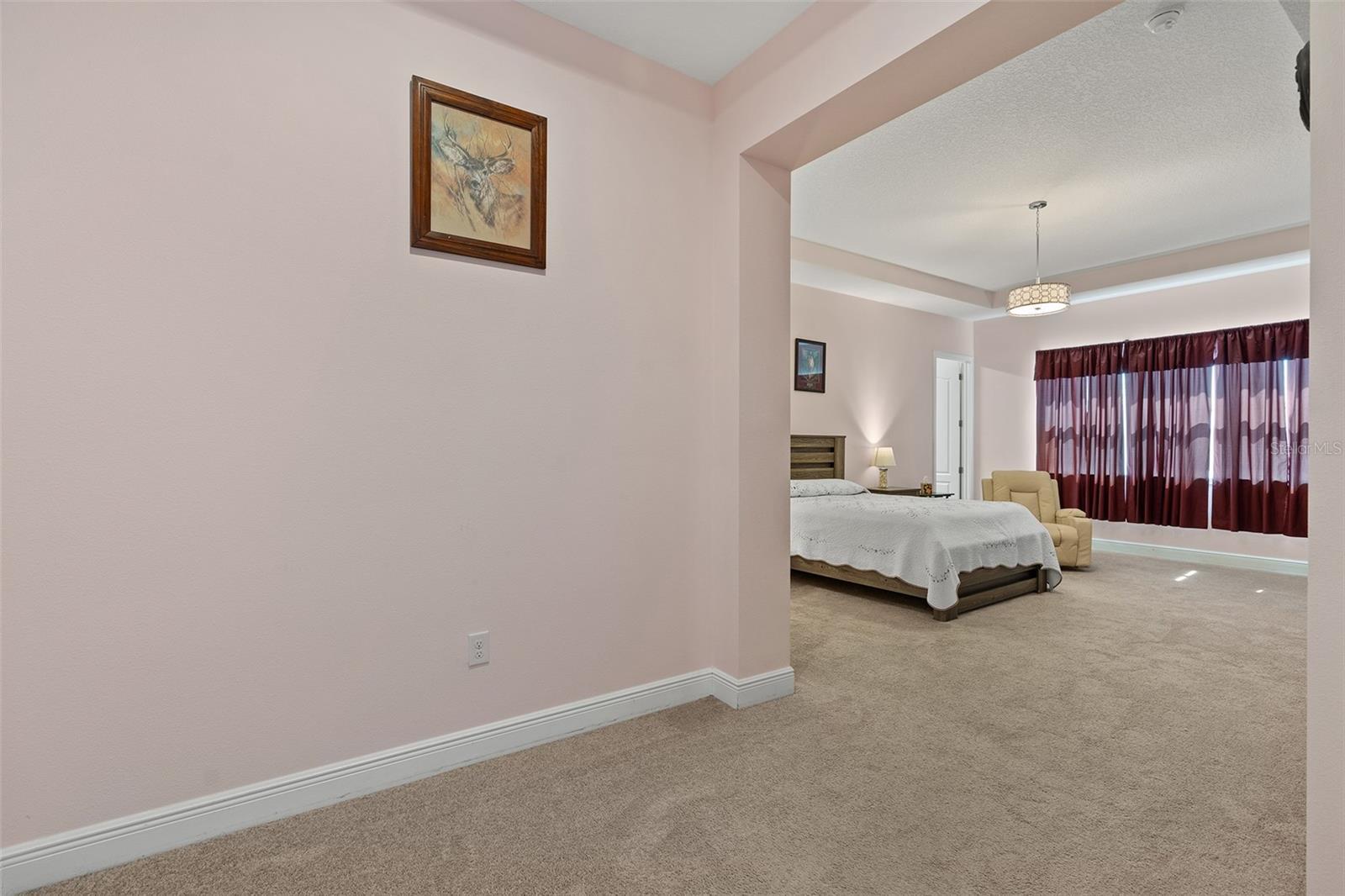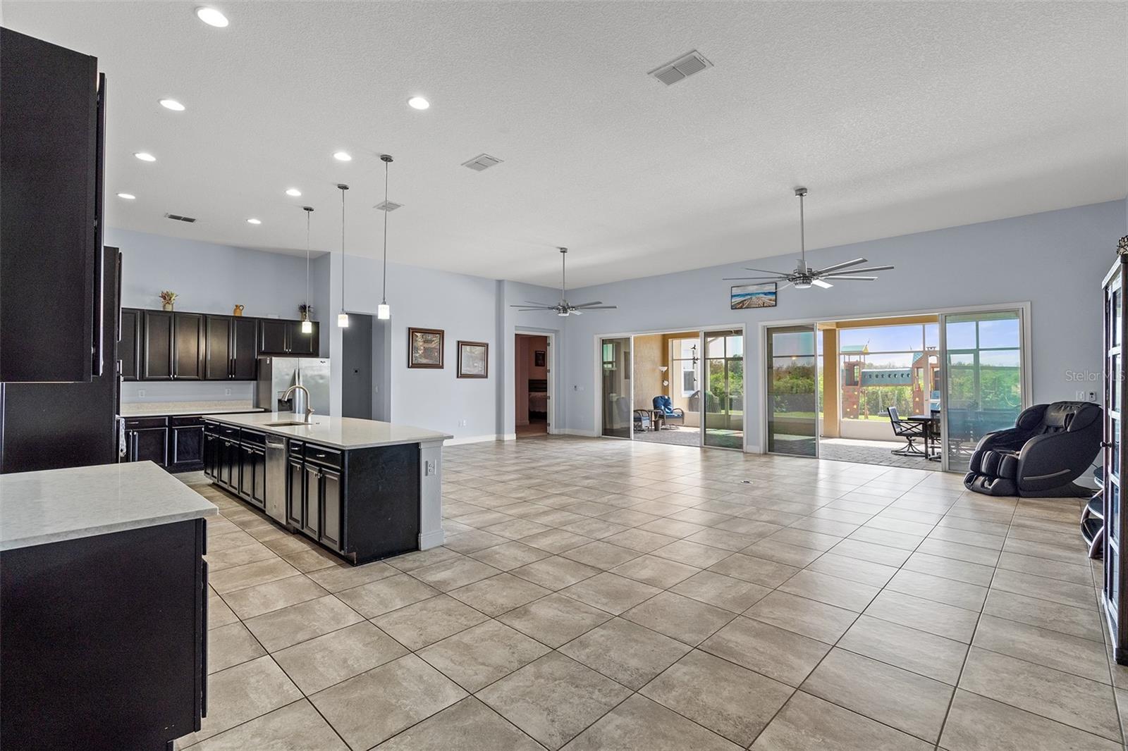 Located just a few miles from LAKEFRONT activities! Amazing GREENBELT views! HANDICAP accessible! Situated on .43 acres. NO HOA! REME HALO Air purification system! GENERAC home generator! TINTED windows! New GUTTERS!. This stunning home offers plenty of space both inside and out, with an extra-wide paver driveway that provides ample parking for multi-car household and guests. Neutral colors complement the beautiful tile flooring that runs throughout the majority of the home. To the right of the foyer is a custom-design space, combining the original flex room and third car garage for a handicap accessible suite. Having it's own entrance also makes it ideal for multi-generational living or a guest retreat. Kitchen, dining, and living areas flow seamlessly for a truly open floor concept for today's lifestyle. Showcasing solid wood cabinetry with 42" uppers and hardware, the kitchen combines quality and style featuring built-in oven and microwave, and stylish stone countertops. A sprawling island seats 8-10 comfortably, making it a natural gathering spot. The owner's suite is tucked away for privacy and features a tray ceiling, 2 oversized walk-in closets and greenbelt views. Luxurious ensuite bath includes dual sinks, stone vanity top, walk-in shower with bench, linen storage and private water closet. Two additional downstair bedrooms have ample closet space, while the 3rd bathroom features upgraded shower tile and granite vanity top that provides plenty of room for daily essentials. To complete the first floor, the laundry room is thoughtfully laid out with cabinets, wash-tub, and counter space for folding clothes and organization. Upstairs, a spacious bedroom with it's own ensuite bath is perfect as a guest suite or flexibility for a media or game room. For your outdoor enjoyment, double sliding doors from the dining and living room opens to an expansive covered, screened-in lanai. A large open patio invites you to unwind and enjoy our Florida weather, while taking in the serene greenbelt views. Conveniently located near a variety of restaurants, shopping, and Lake Nona Medical City. Don't miss out on this incredible opportunity to own this rare blend of convenience, spacious living and well-planned design.