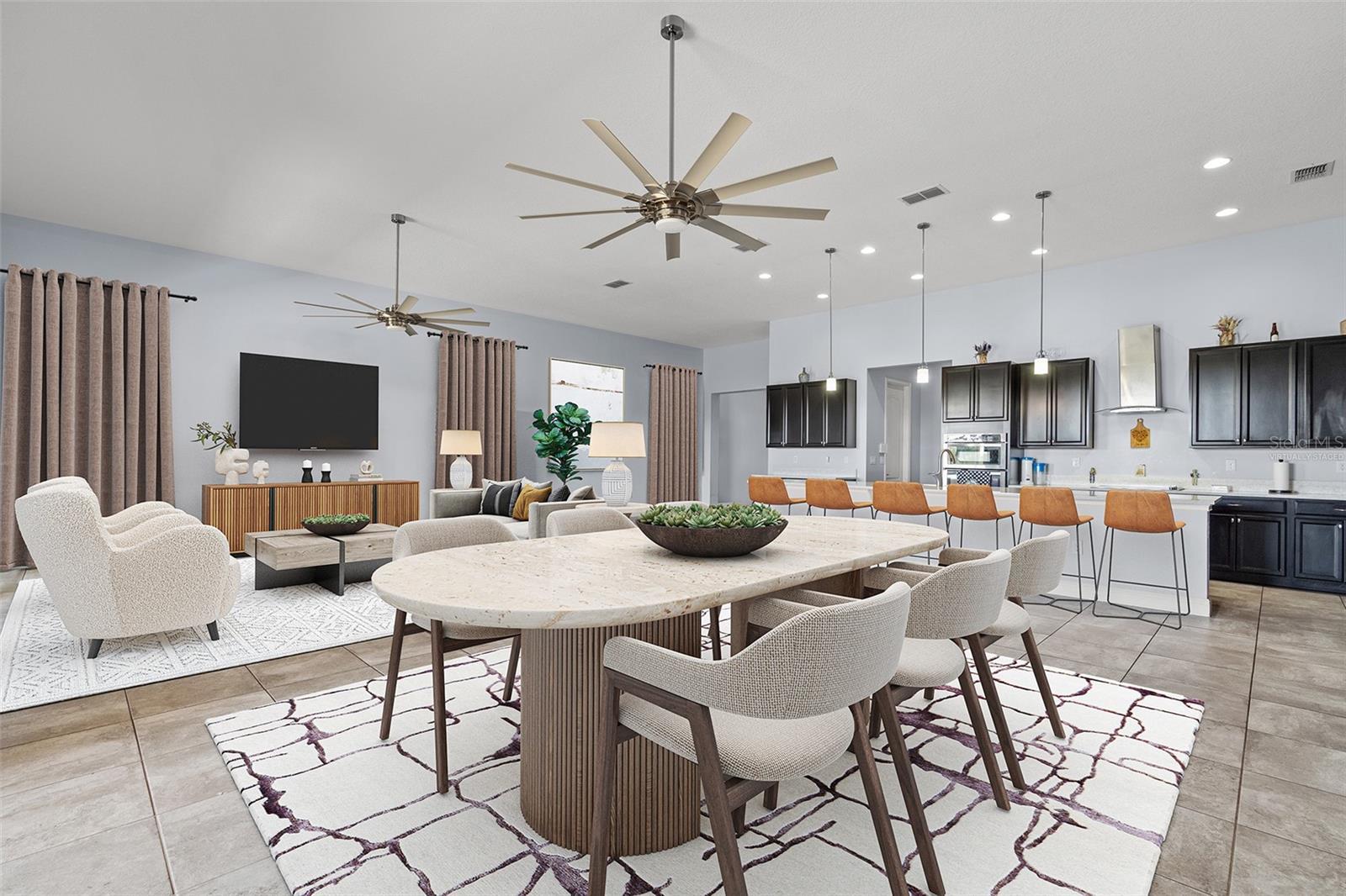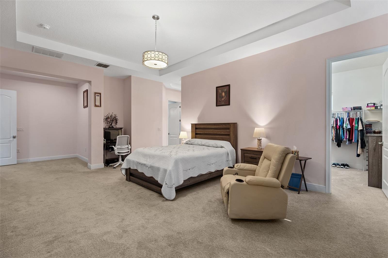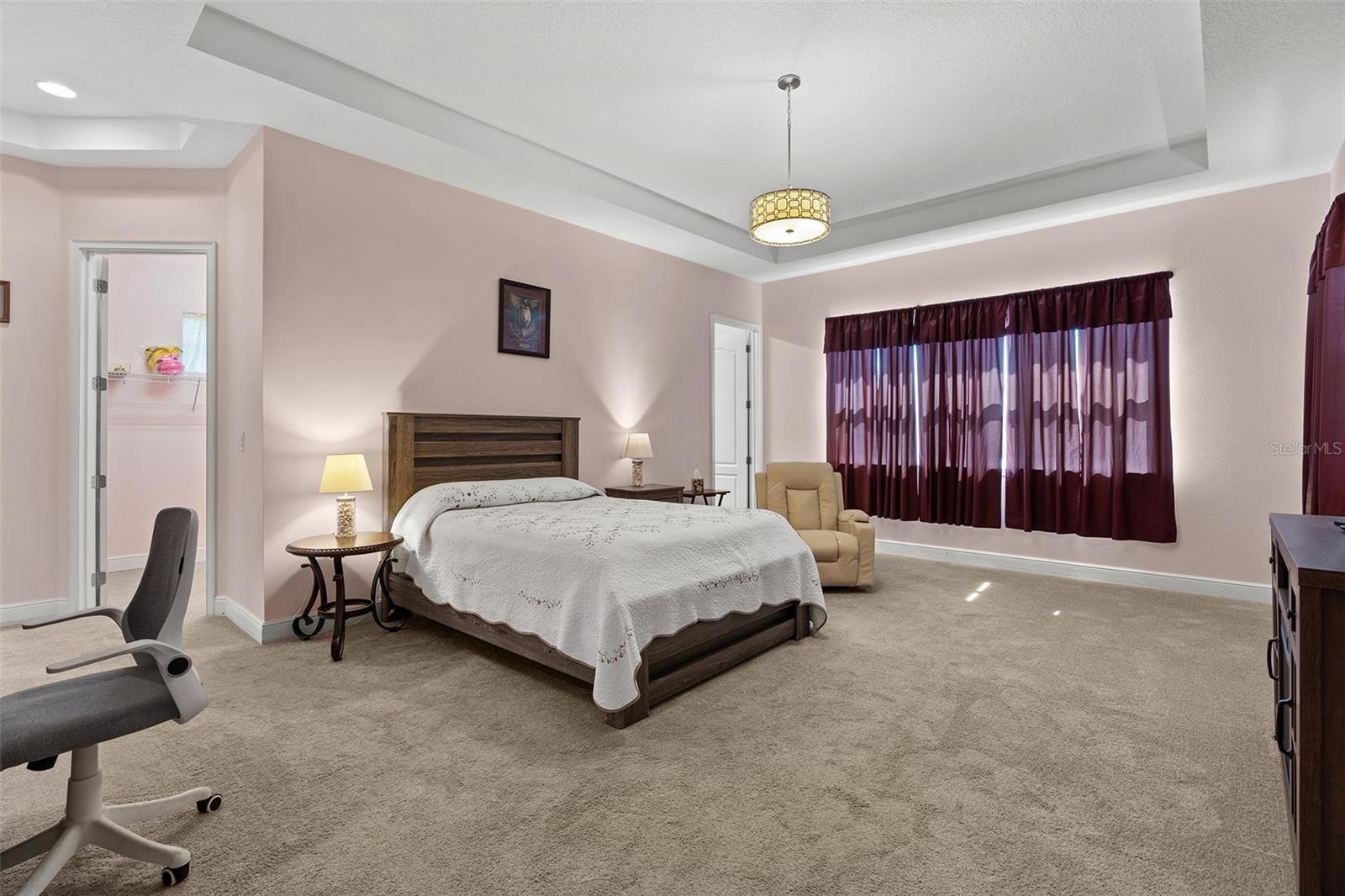 - Accessibility Features, Ceiling Fans(s), High Ceilings, Living Room/Dining Room Combo, Open Floorplan, Primary Bedroom Main Floor, Solid Wood Cabinets, Split Bedroom, Stone Counters, Tray Ceiling(s), Walk-In Closet(s)
