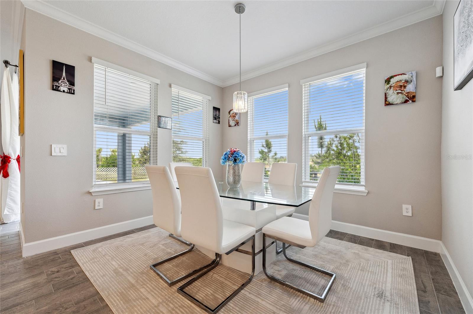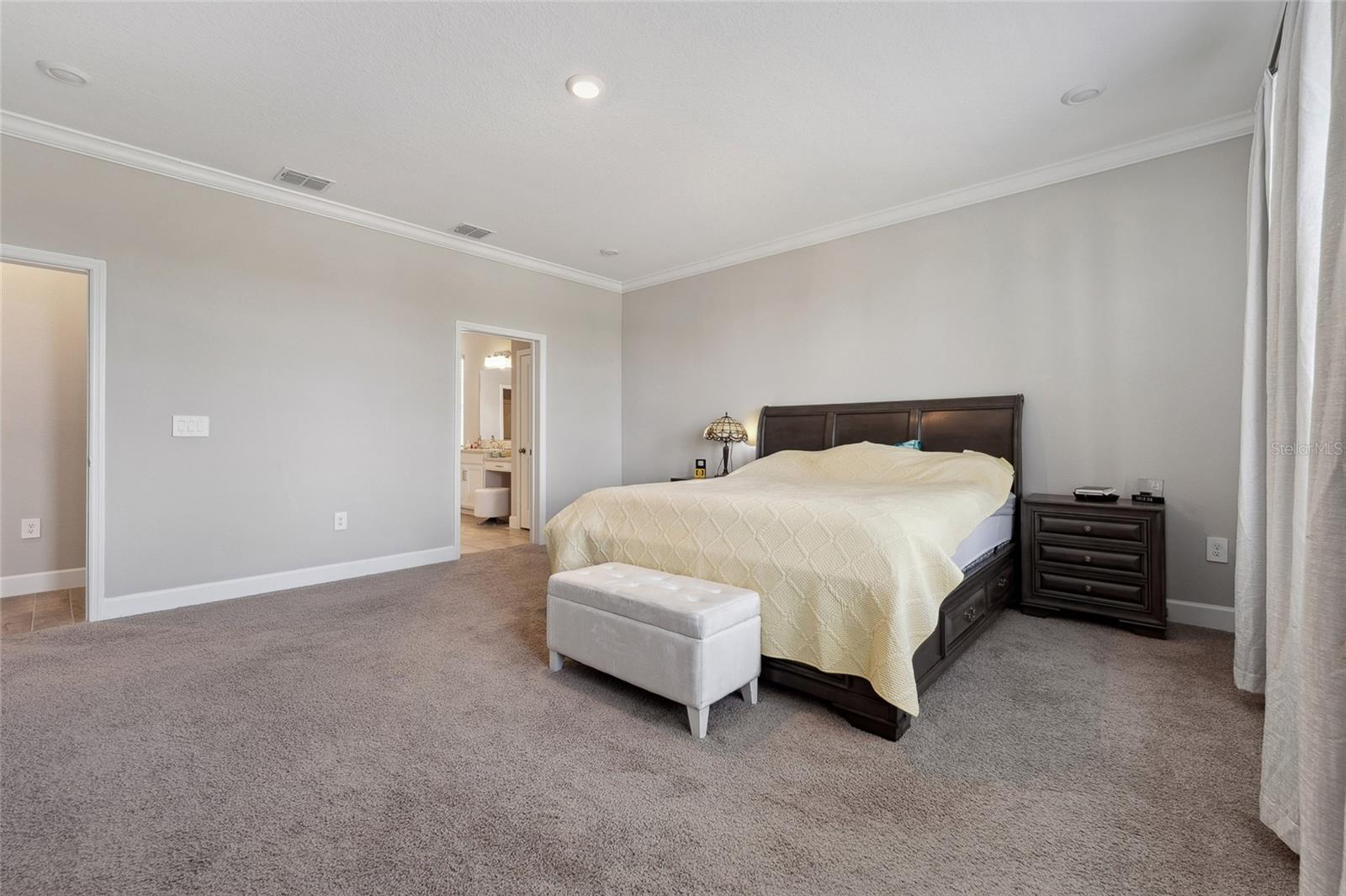 - Crown Molding, High Ceilings, Kitchen/Family Room Combo, Open Floorplan, Primary Bedroom Main Floor, Smart Home, Solid Surface Counters, Solid Wood Cabinets, Stone Counters, Thermostat, Walk-In Closet(s), Window Treatments
