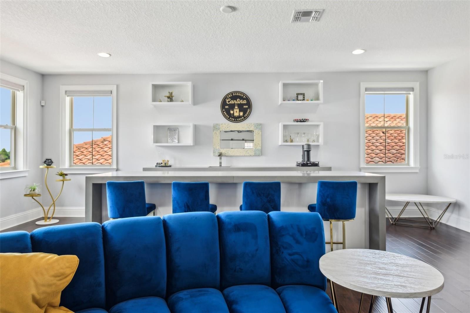 - Ceiling Fans(s), High Ceilings, Living Room/Dining Room Combo, Open Floorplan, Primary Bedroom Main Floor, Smart Home, Solid Surface Counters, Split Bedroom, Thermostat, Walk-In Closet(s), Wet Bar, Window Treatments