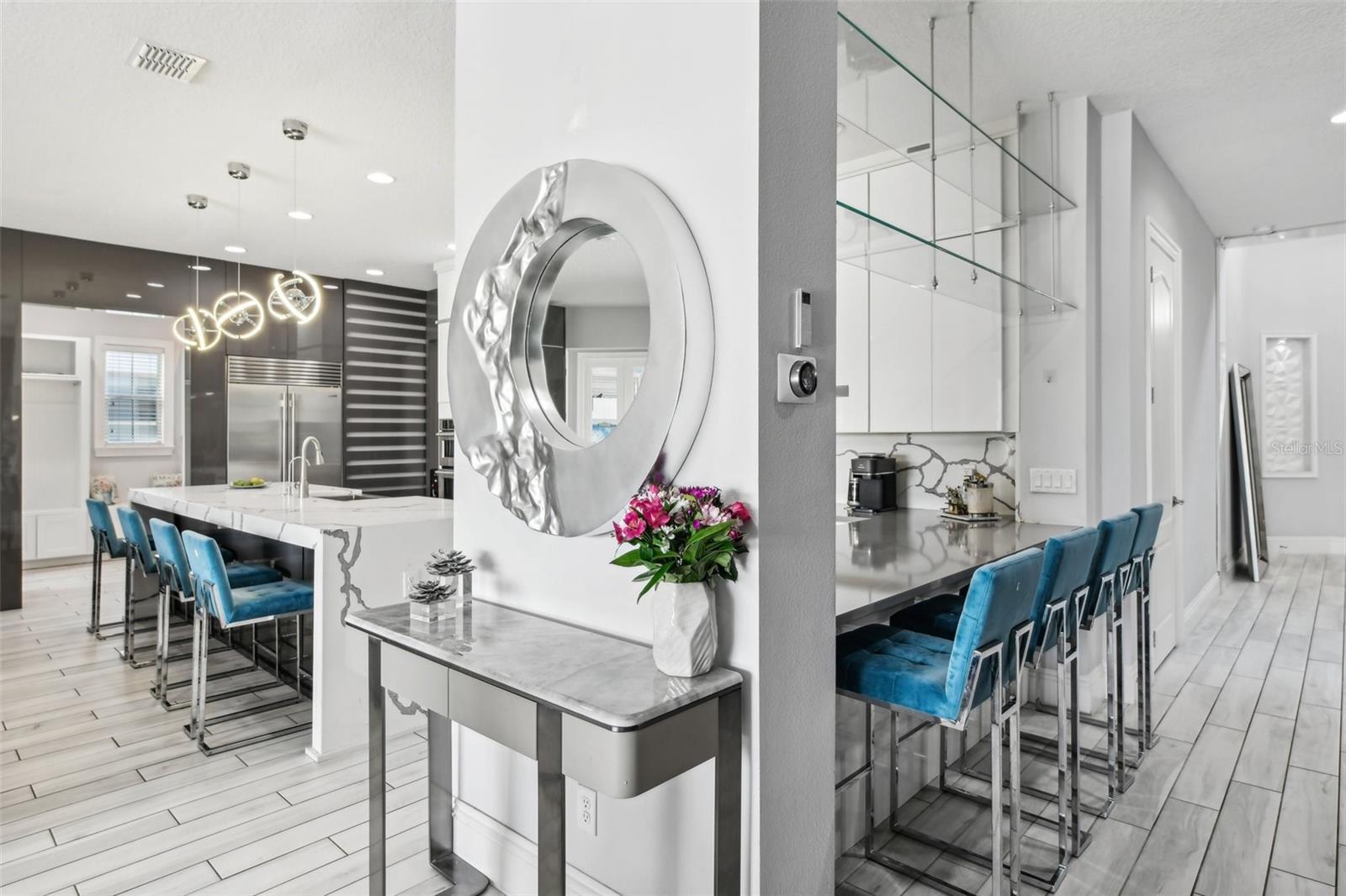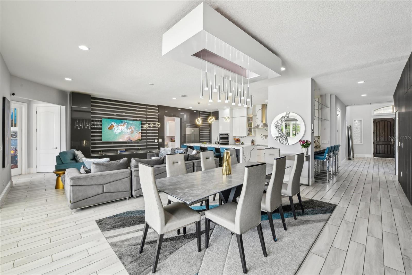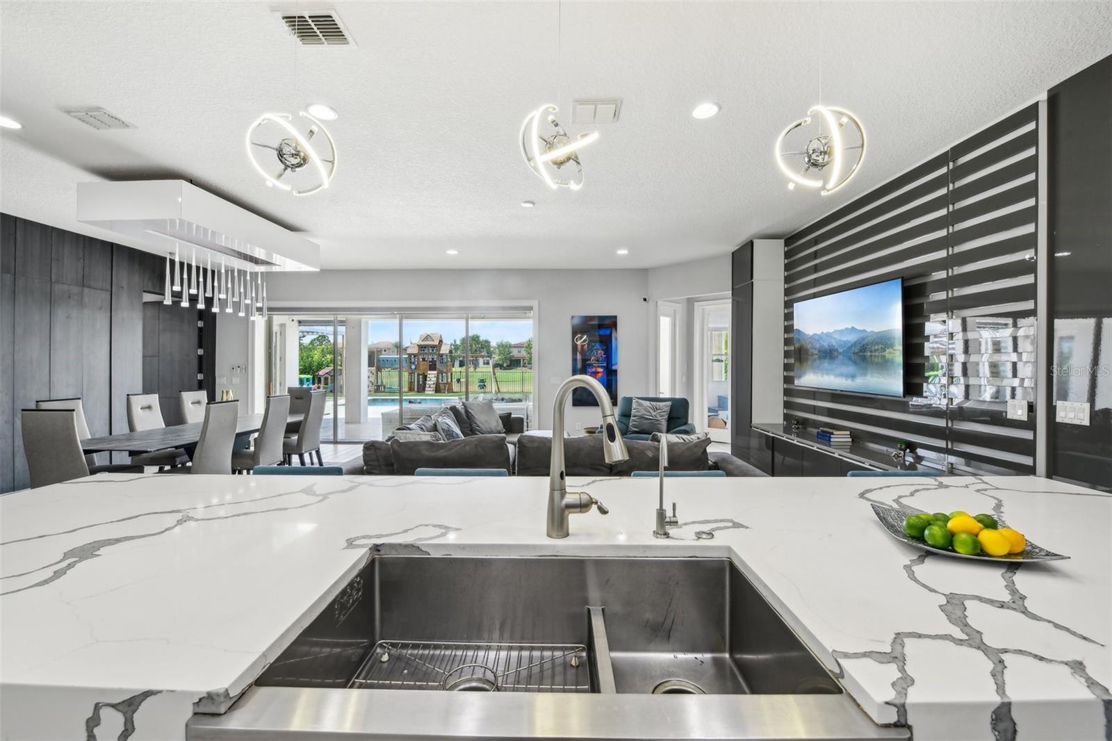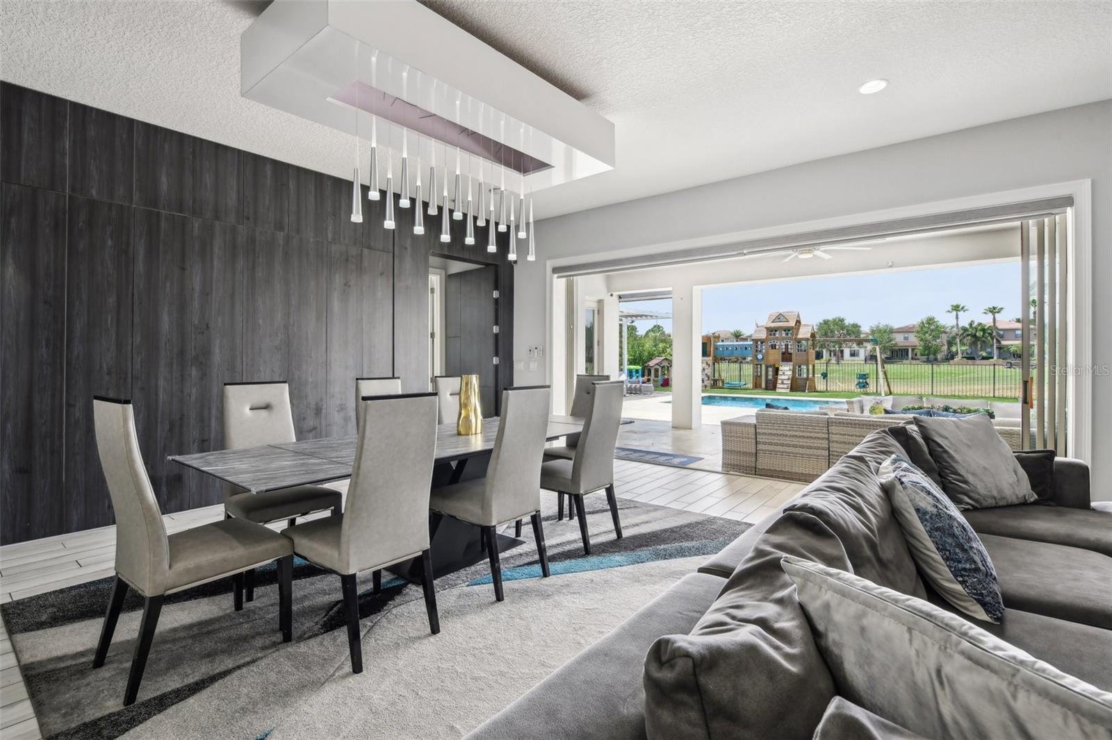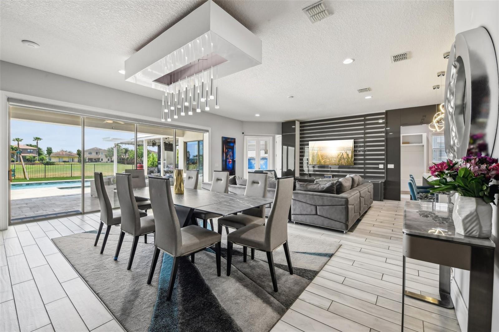 PRICE IMPROVEMENT AND SELLER IS OFFERING $30,000 BUYER CONCESSION! Welcome to 13136 Alderley Drive – a luxurious 5-bedroom, 5-bath estate offering over 5,400 heated sq ft of exquisitely designed living space in one of Orlando's most sought-after gated golf course communities, Eagle Creek. Situated on an oversized lot with sweeping views of the 16th hole, this home defines Orlando Florida luxury living featuring a heated waterfall pool and spa, expansive sunbathing areas, an outdoor kitchen with pizza oven, a private playground and the back porch which is an entertainers dream. Inside, a grand entryway with a dramatic staircase sets the tone for the open-concept layout connecting the living and dining rooms to a gourmet kitchen with high-end appliances and elegant two-tone quartz waterfall countertops. The primary suite is a serene retreat with private pool access, a spa-inspired en-suite featuring a dual waterfall walk-in shower, soaking tub, dual vanities, and a custom walk-in closet with built-ins.Upstairs, enjoy a spacious loft with a wet bar and direct access to an expansive balcony – the perfect place to unwind and watch the beautiful sunsets over the golf course. Additional features include a wine room, dual laundry rooms, a drop zone, built-in storage, a 3-car garage with extra storage, retractable screens and solar panels which provide lower utilities. With a golf cart drop-off to the on-site elementary school, this home blends elegance, convenience, and family-friendly amenities like a resort style pool area in the heart of Lake Nona.Don’t miss your opportunity to own this one-of-a-kind dream home in the gated community of Eagle Creek! Close to Disney, Medical City, Orlando International Airport, Medical City (Nemours, VA Hospital), Beaches and USTA. Zoned for Florida Dept of Education A rated schools.