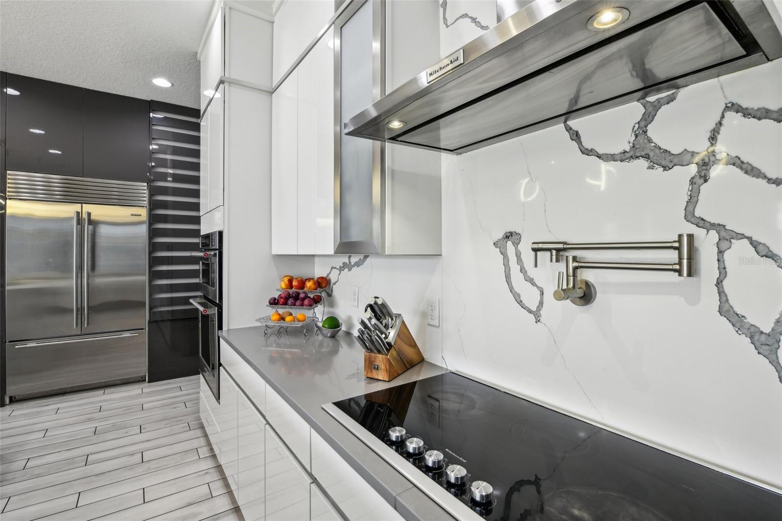 - Bar Fridge, Built-In Oven, Cooktop, Dishwasher, Disposal, Dryer, Microwave, Refrigerator, Washer, Water Softener, Wine Refrigerator