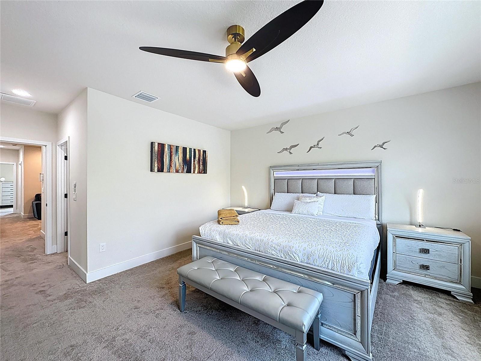 - Ceiling Fans(s), High Ceilings, Kitchen/Family Room Combo, Living Room/Dining Room Combo, Open Floorplan, PrimaryBedroom Upstairs, Split Bedroom, Stone Counters, Thermostat, Tray Ceiling(s), Walk-In Closet(s)
