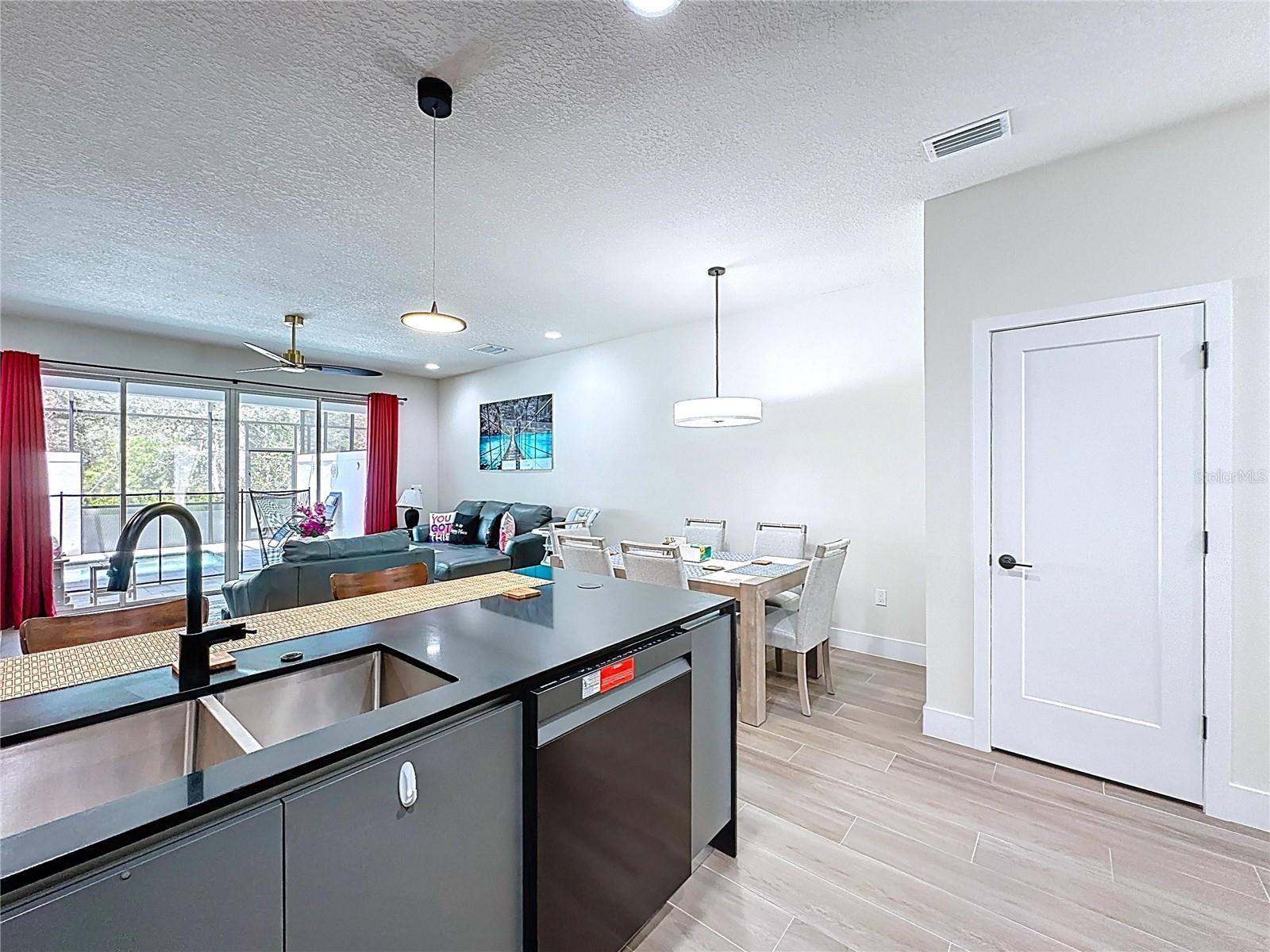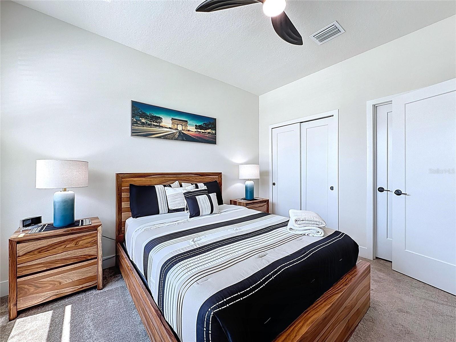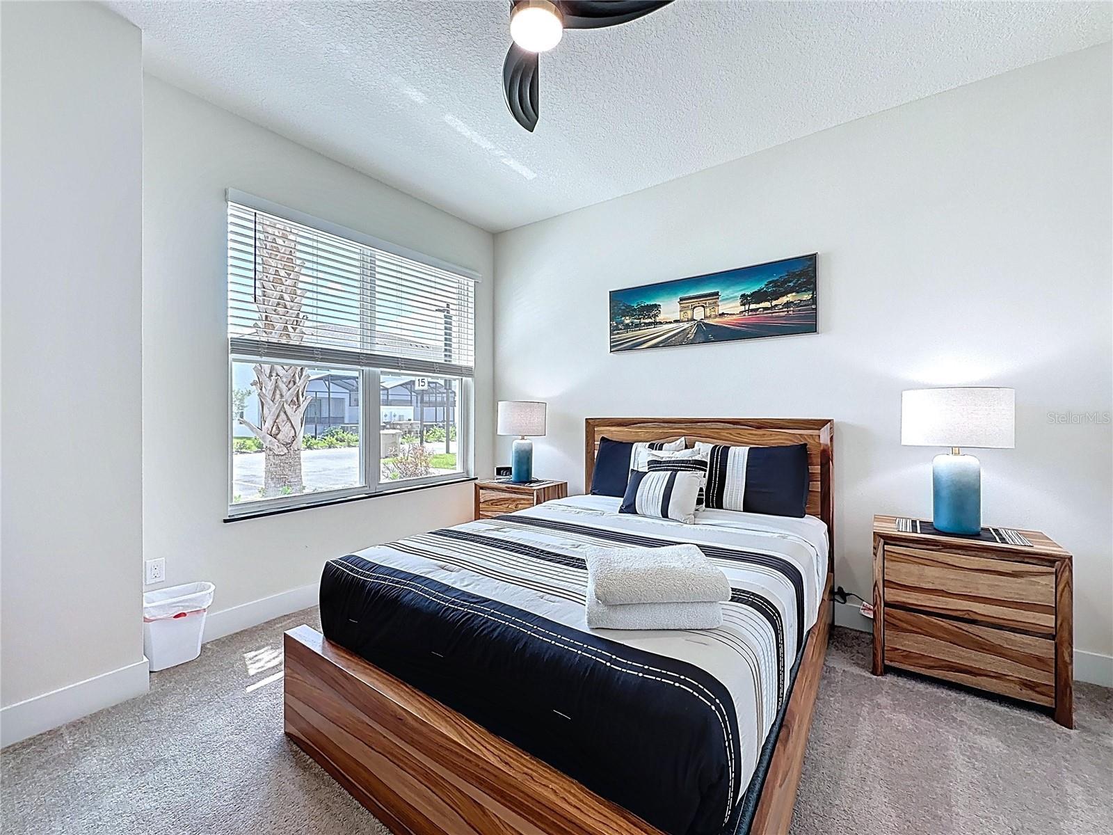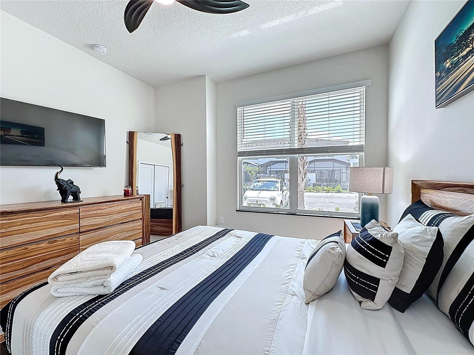 Welcome to 1425 Serendipity Ln in the sought after Tranquility Townhomes community. Built in 2024 and offering 1,854 square feet of thoughtfully designed living space, this luxury furnished home blends modern comfort with strong rental appeal. The open main level features ceramic tile floors, a spacious living and dining layout, stone counters, high ceilings, and a sleek kitchen with stainless appliances. A first floor bedroom and full bath create flexibility for guests or long term living. Upstairs, the primary suite features a tray ceiling, walk in closet, and an elegant bathroom with modern finishes. Two additional upstairs bedrooms plus a loft style family room provide extra space and privacy. Enjoy your own screened private pool with heated features, plus access to the community pool, clubhouse, fitness center, playground, and sidewalks. The home is fully furnished and currently operating as a successful Airbnb with existing reservations, making it ideal for investors seeking immediate income or buyers wanting a turnkey retreat close to everything Central Florida offers. Located minutes from US 27, Disney parks, local shopping, dining, and area recreation, this property combines convenience with resort style living. HOA includes water and exterior maintenance. Zoned for Lake County Schools.