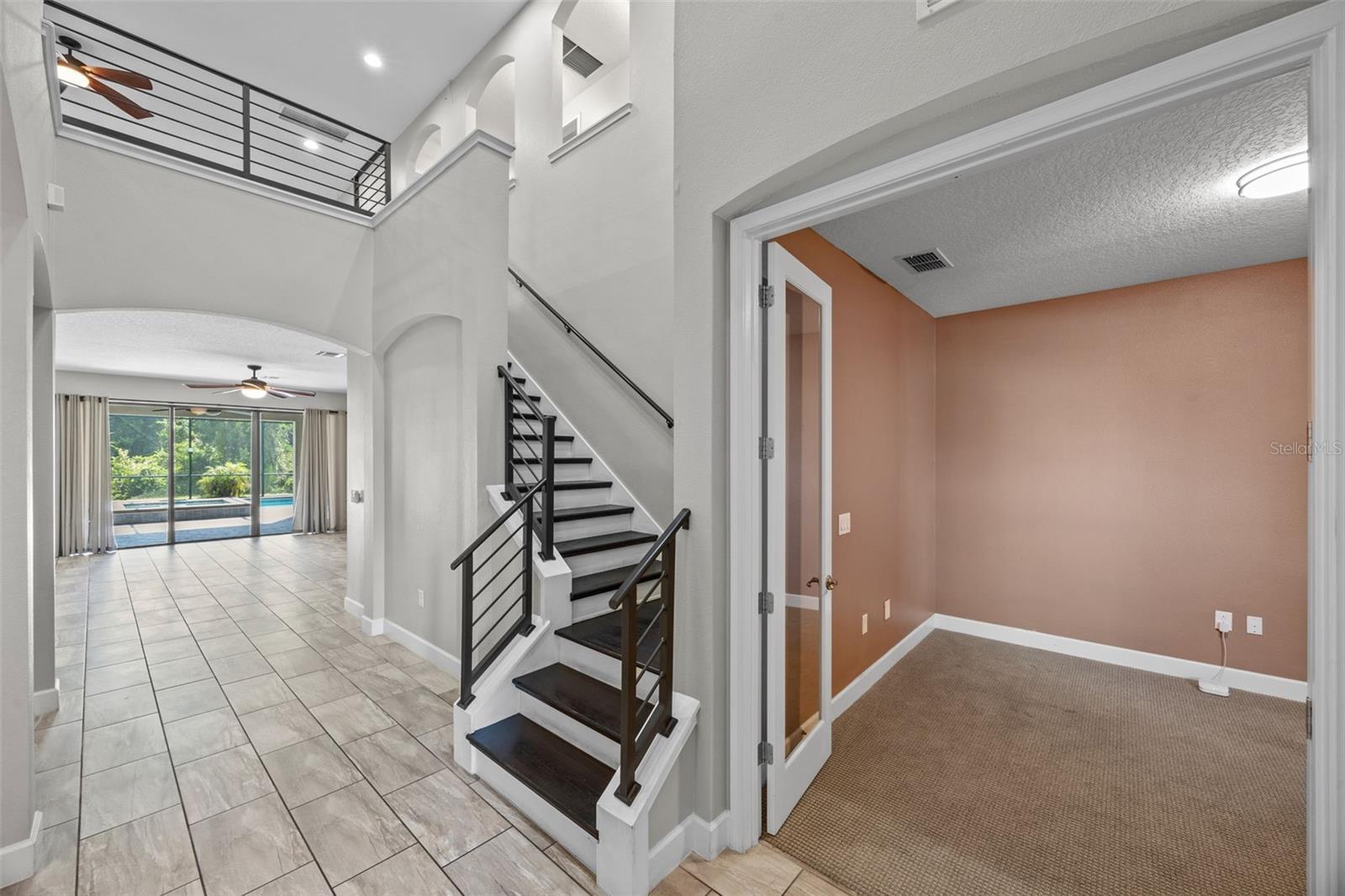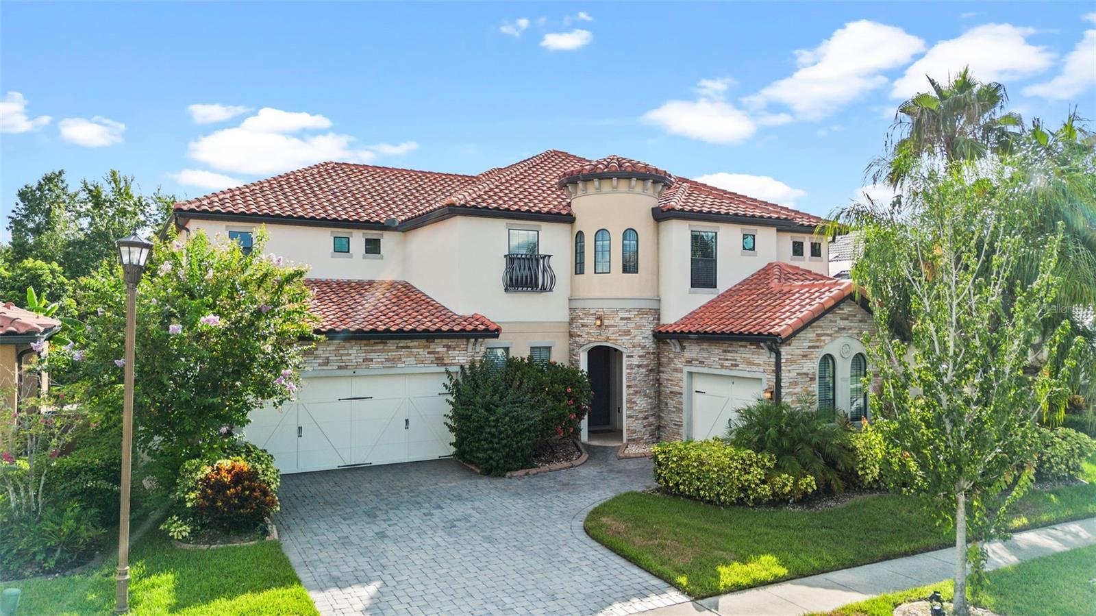 Under contract-accepting backup offers. Step into unparalleled luxury at 3844 Bowfin Trail, a true Mediterranean masterpiece in Bellalago Community. Spanning 5,280 sq ft, this custom “mini-mansion” boasts six bedrooms, a dedicated theatre room, private office/den and an expansive loft that opens to a balcony overlooking your resort-style pool and spa. From the moment you arrive, you’ll be greeted by meticulously landscaped grounds, elegant pavers and a Spanish-Mediterranean tile roof accented with a charming Romeo & Juliet balcony. Inside, soaring ceilings, 8-ft solid-core doors, designer light fixtures and a sweeping wood-and-spindle stairway create an immediate sense of grandeur. The gourmet kitchen features granite countertops, stainless-steel appliances, custom cabinetry and an oversized island ideal for casual meals or cocktail parties. Step through French doors onto the over-extended screened lanai, complete with a built-in outdoor kitchen, ambient lighting and panoramic views of the conservation-backed backyard—perfect for summer soirées or quiet morning coffees. Live like you’re on vacation every day with Bellalago’s 24-hour guard-gated security, championship-style pool, water-park slides, fitness center, lakeside fishing piers and “Flip Flops” poolside bar. All this just 35 minutes from Walt Disney World, Universal Orlando and Central Florida’s top attractions.