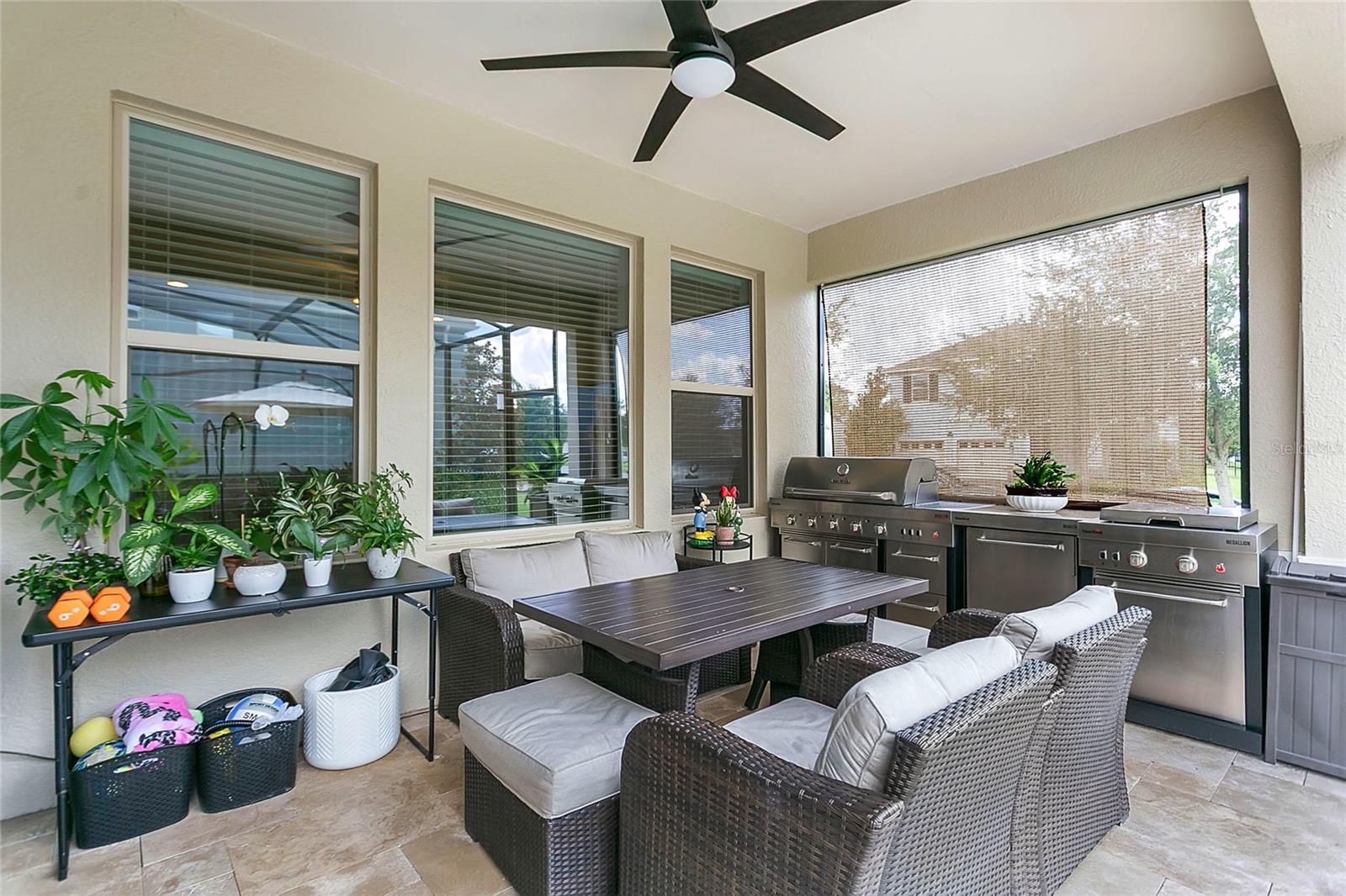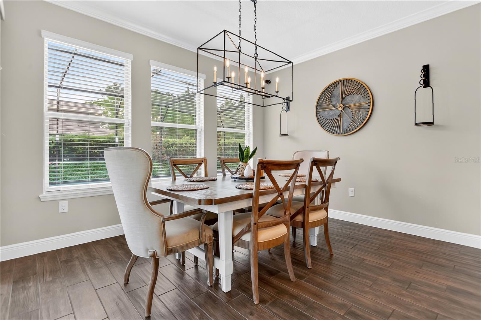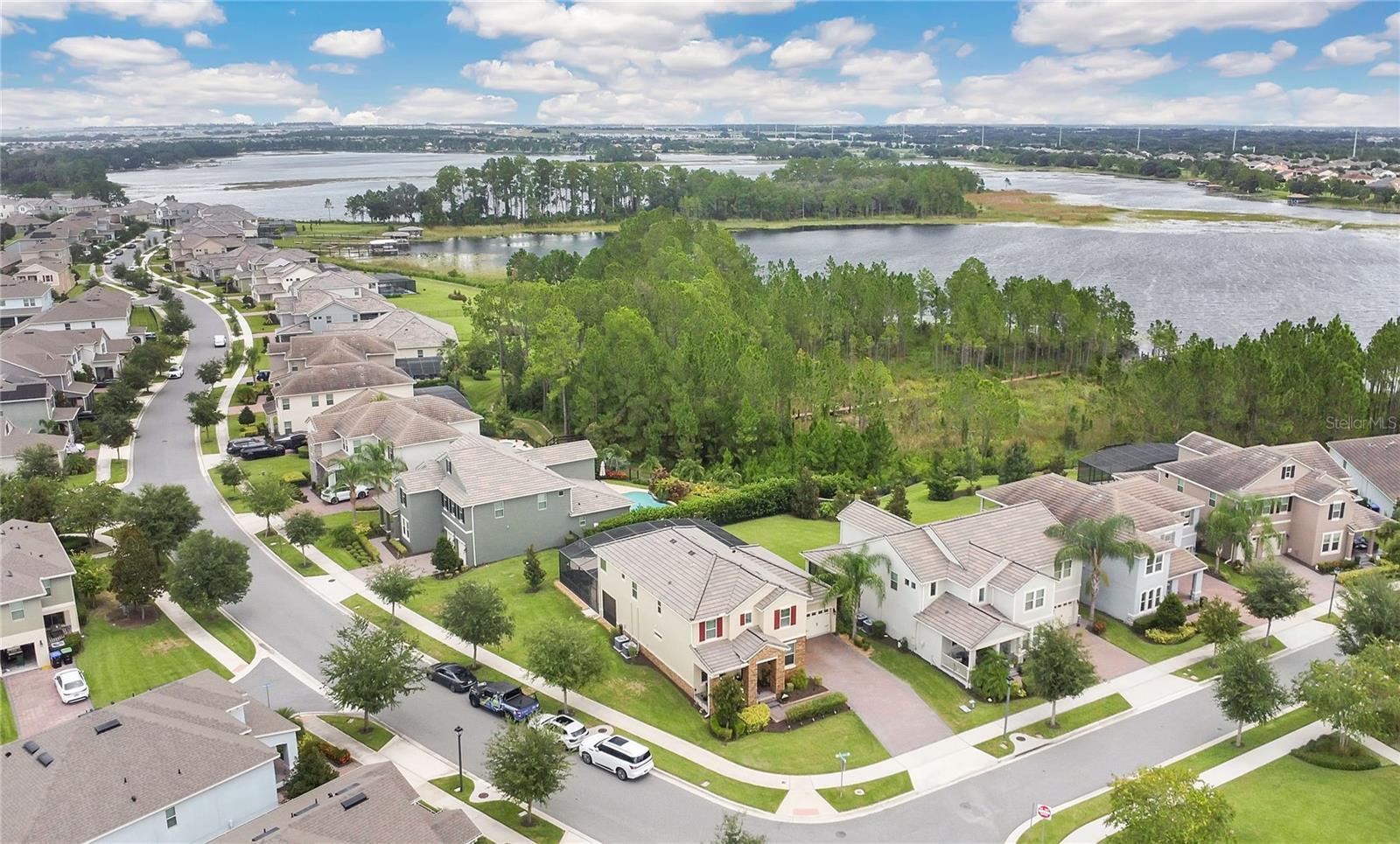 Stunning Emerald serie house, Selden model built in 2018 well maintained, featuring 4 bedrooms, 3.5 bathrooms, and approximately 2,920 sq ft of living space. Situated on a premium corner lot of about 10,585 sq ft, this home offers a 3-car tandem garage, spacious backyard, private wooded views, and a screen-enclosed private pool—perfect for year-round Florida living. The open-concept design includes a formal dining room, elegant foyer with wrought-iron staircase, and a gourmet kitchen with a large island, 42” cabinets with crown molding, granite countertops, stainless steel appliances, and a convenient drop zone from the garage. The owner’s suite boasts a tray ceiling, a spa-like en-suite bathroom with dual sinks, a garden tub, and a spacious walk-in closet. Additional features include a durable concrete tile roof, dual A/C units, and numerous upgrades: exterior lighting, sealed paver driveway and porch, landscape lighting, decorative stonework, epoxy-finished garage floor, and professional landscaping. Lawn care is included with HOA fee. Located in the highly sought-after Waterleigh community in Winter Garden, residents enjoy resort-style amenities: two community clubhouses, 4 resort-style pools, 2 fitness center, beach volleyball, 2 tennis courts, mini-golf, community garden, dog park, fishing pier, and scenic walking/biking trails. The neighborhood is beautifully landscaped with lakes, green spaces, and planned community events. Conveniently located just minutes from Historic Downtown Winter Garden, Winter Garden Village, and easy access to SR-429 for a quick commute to Orlando and Walt Disney World. Zoned for top-rated schools: Atwater bay Elementary, Water Spring Middle, and Horizon High School.
