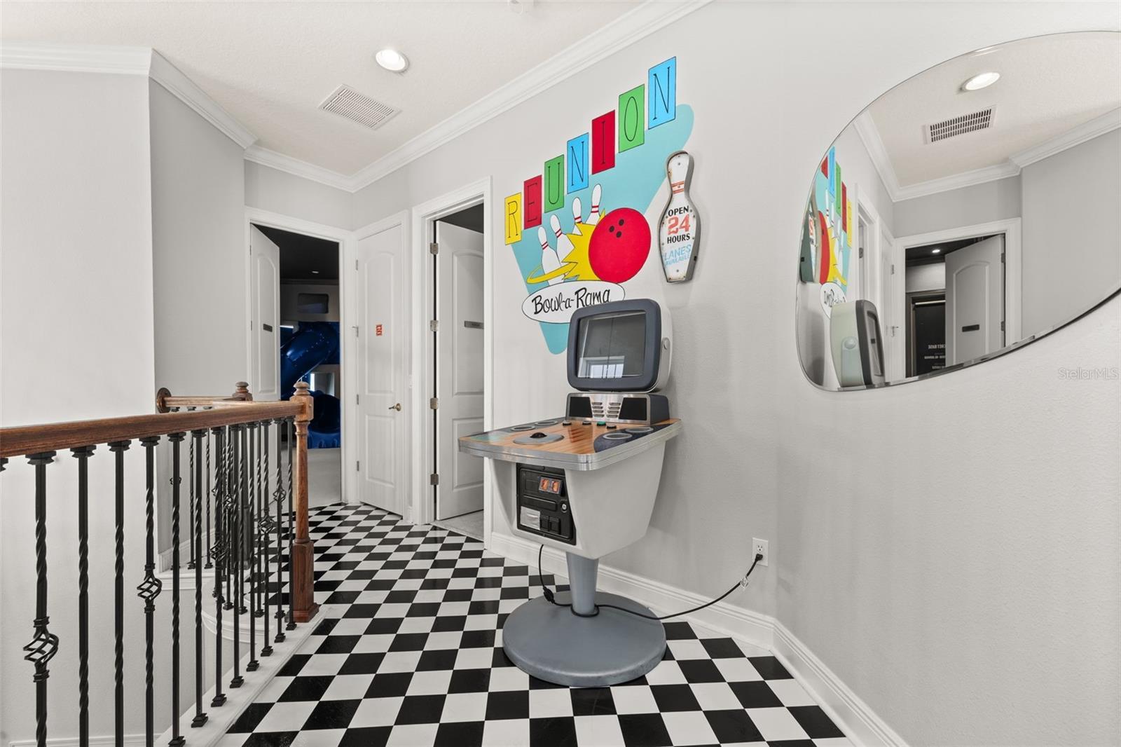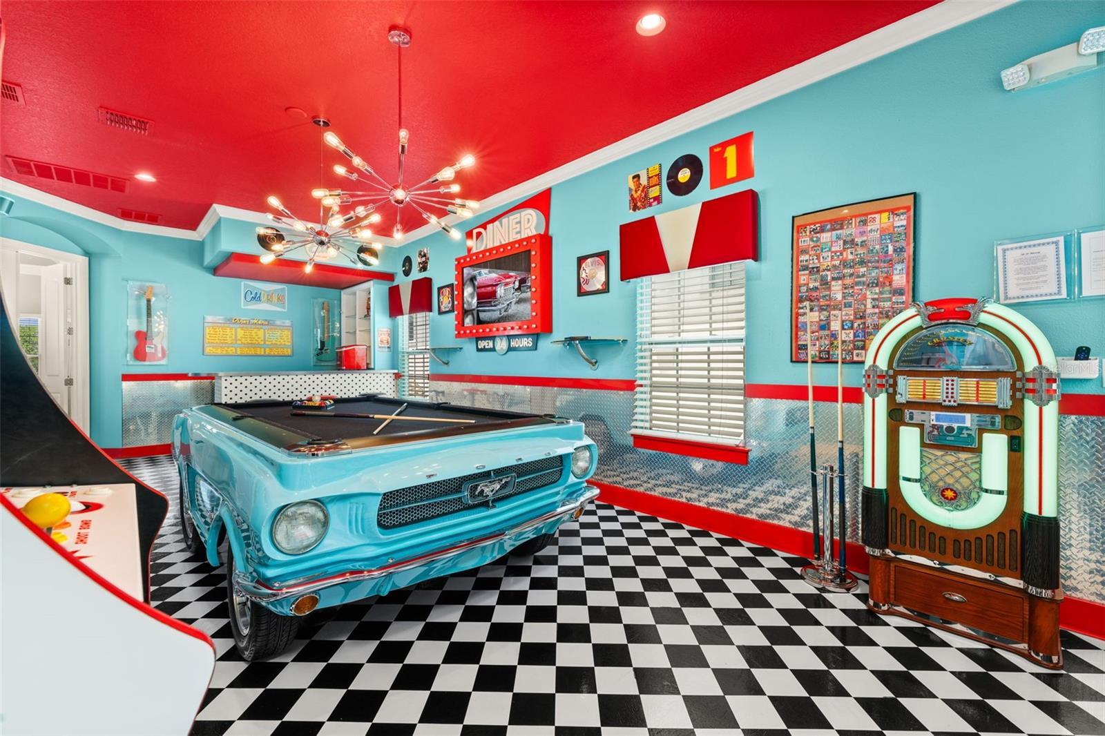 Imagine owning a home that’s not only a dream getaway but also a proven income generator. This stunning 5-bedroom, 5.5-bath pool home sits on an oversized southwest-facing lot with sweeping views of the Jack Nicklaus golf course and it comes with a transferable Reunion Resort golf membership. Already a thriving short-term rental with future bookings in place, you can start earning from day one. Inside, the open-concept kitchen, dining, and living spaces have been beautifully updated, blending modern comfort with a warm, family-friendly feel. There’s even a cozy office nook for work or quiet moments. Step outside to your private paradise: an expansive southwest-facing pool and hot tub, a summer kitchen for effortless outdoor dining, and a covered lanai perfect for enjoying evening sunsets. The oversized lot also features a fire pit overlooking the fairway, with room to expand your outdoor living space. This home is designed for unforgettable moments. On the first floor, the fully converted garage offers a luxury theater experience with reclining seats and a high-top bar. Upstairs, the retro loft steals the show with its custom 1967 Mustang slate pool table. Every bedroom features its own ensuite bathroom, including a first-floor London-inspired king suite, an upstairs master suite with balcony golf views, a Frozen-themed bunk room, a Marvel-themed bunk room with front balcony, and a space-themed king suite that’s a favorite among teens and adults. Reunion Resort delivers endless amenities: three signature golf courses, a water park with lazy river, mini golf, tennis, fitness center, and multiple restaurants all just 7 miles from Disney and world-class shopping. Whether you’re searching for an investment, a luxurious vacation retreat, or both, this property offers the complete package. Call today to schedule your private tour opportunities like this don’t last long.
