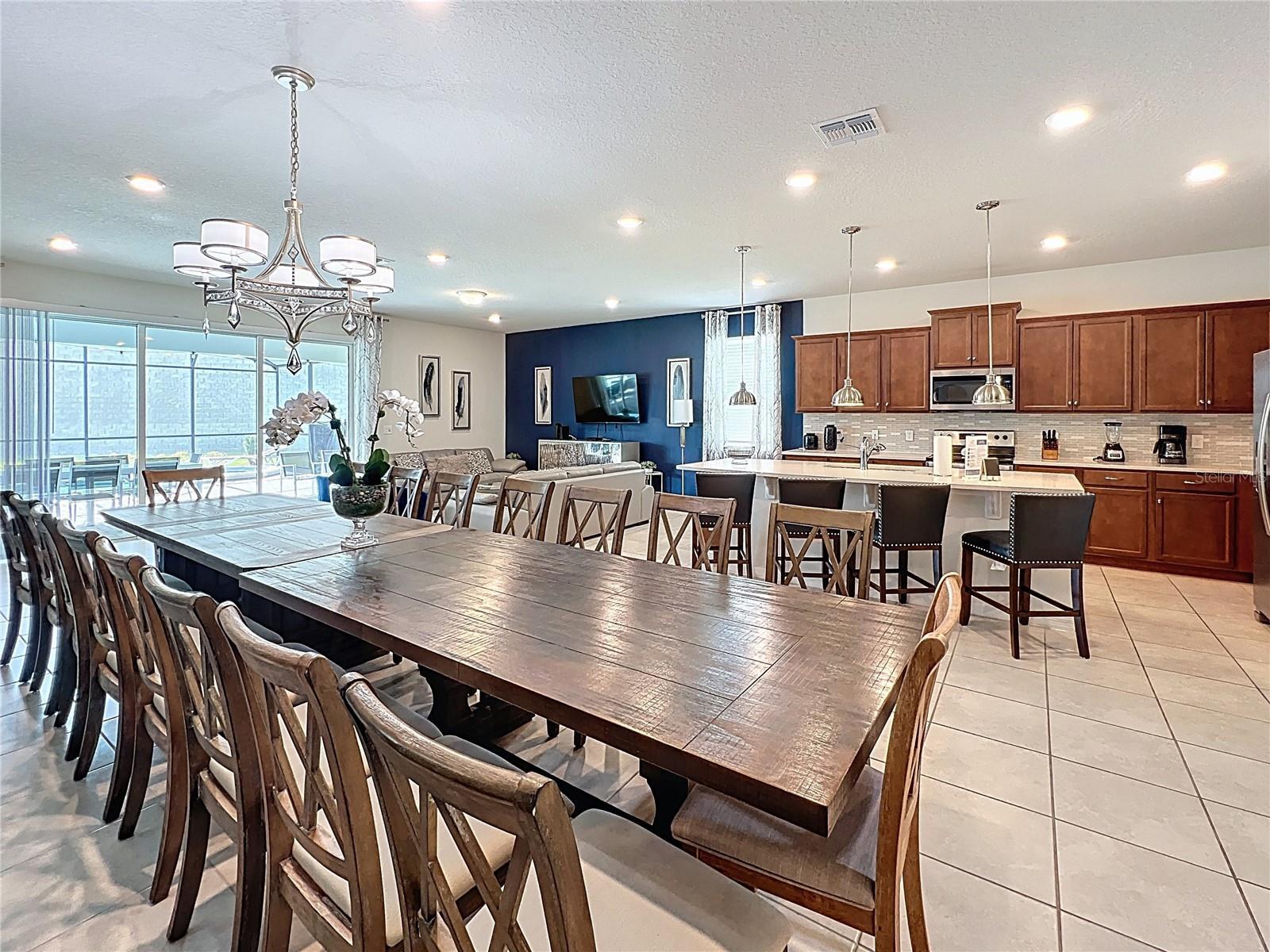 A fantastic choice to be your Vacation Rental Property in the Windsor Island Resort. 8 Bedrooms - 6 Bathrooms and a Gorgeous Loft with a WET BAR. As you step inside, you are greeted by a foyer that sets the stage for the exquisite design and attention to detail found throughout the home. The main level features a master bedroom with a bathroom that connects to the pool area, perfect for accommodating guests and a second bedroom with a full bathroom. Continuing on, you'll discover a spacious and open-concept living area that seamlessly connects the family room, dining area, and kitchen. The kitchen is equipped with stainless steel appliances, abundant counter space, and a breakfast bar, making it a central hub for culinary adventures and social gatherings and the dining table has enough space to accommodate the guests. Upstairs you will find the large loft with gaming equipment, a great couch and tv, and the best, a wet bar ready for you to enjoy. Also upstairs you will find 2 more en suites, and 4 more bedrooms with a bathroom between them, one is a jack and jill and the other is a stand alone bathroom. This home features a heated, private pool/spa, a large covered Lanai and large pool deck area with privacy. Fully Furnished. The Windsor Island Resort is a Resort Style Gated Community with a great Clubhouse for vacationers, and features a 24-hour guarded gate. Amenities including a lazy river, splash pool, bar, fitness center, volleyball and game room. Tiki bar, cabanas, mini golf and much more. This is a great vacation home, very close to other area attractions, grocery shop, restaurants and much more. Schedule your visit now. TURN KEY READY.