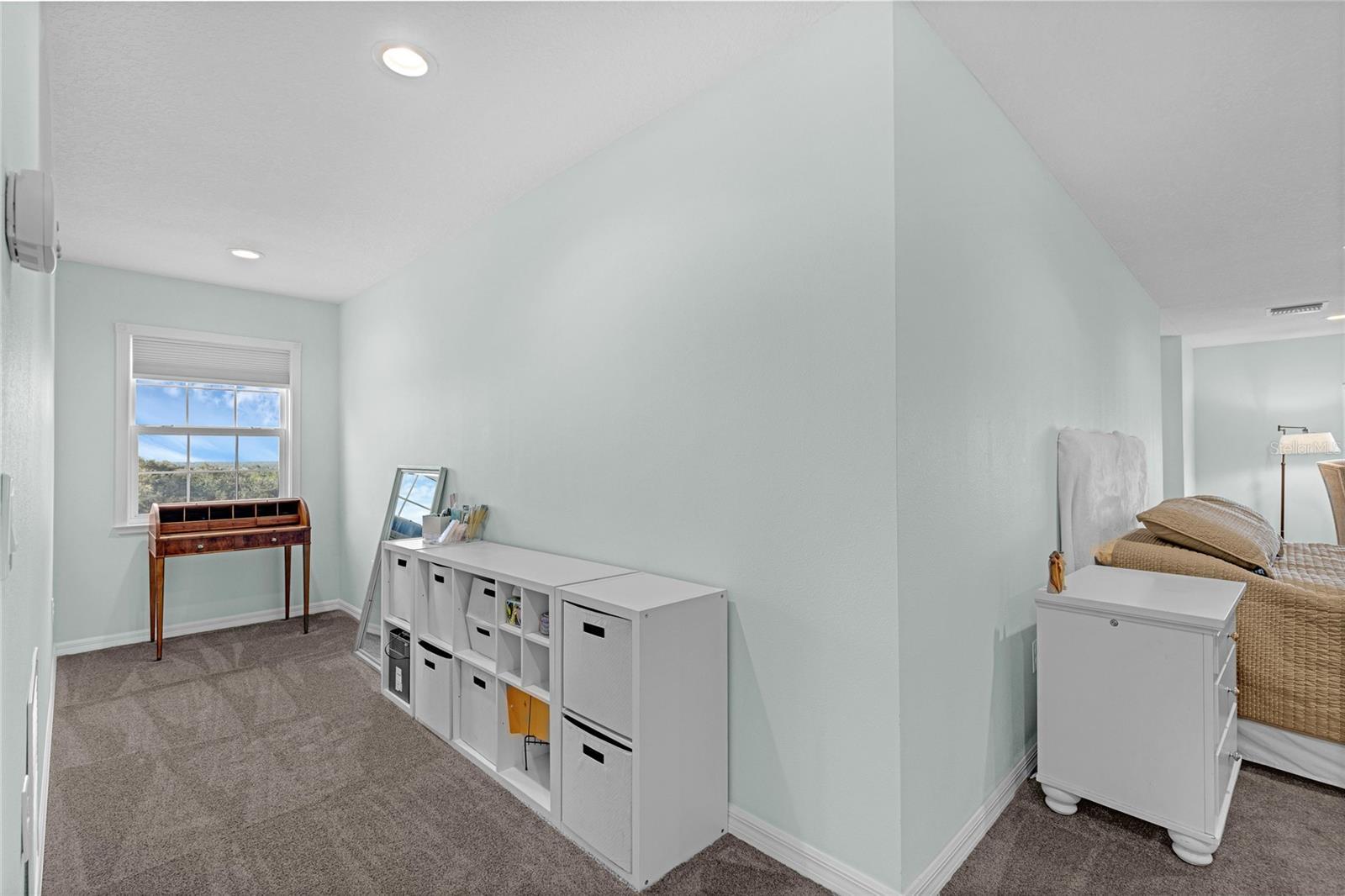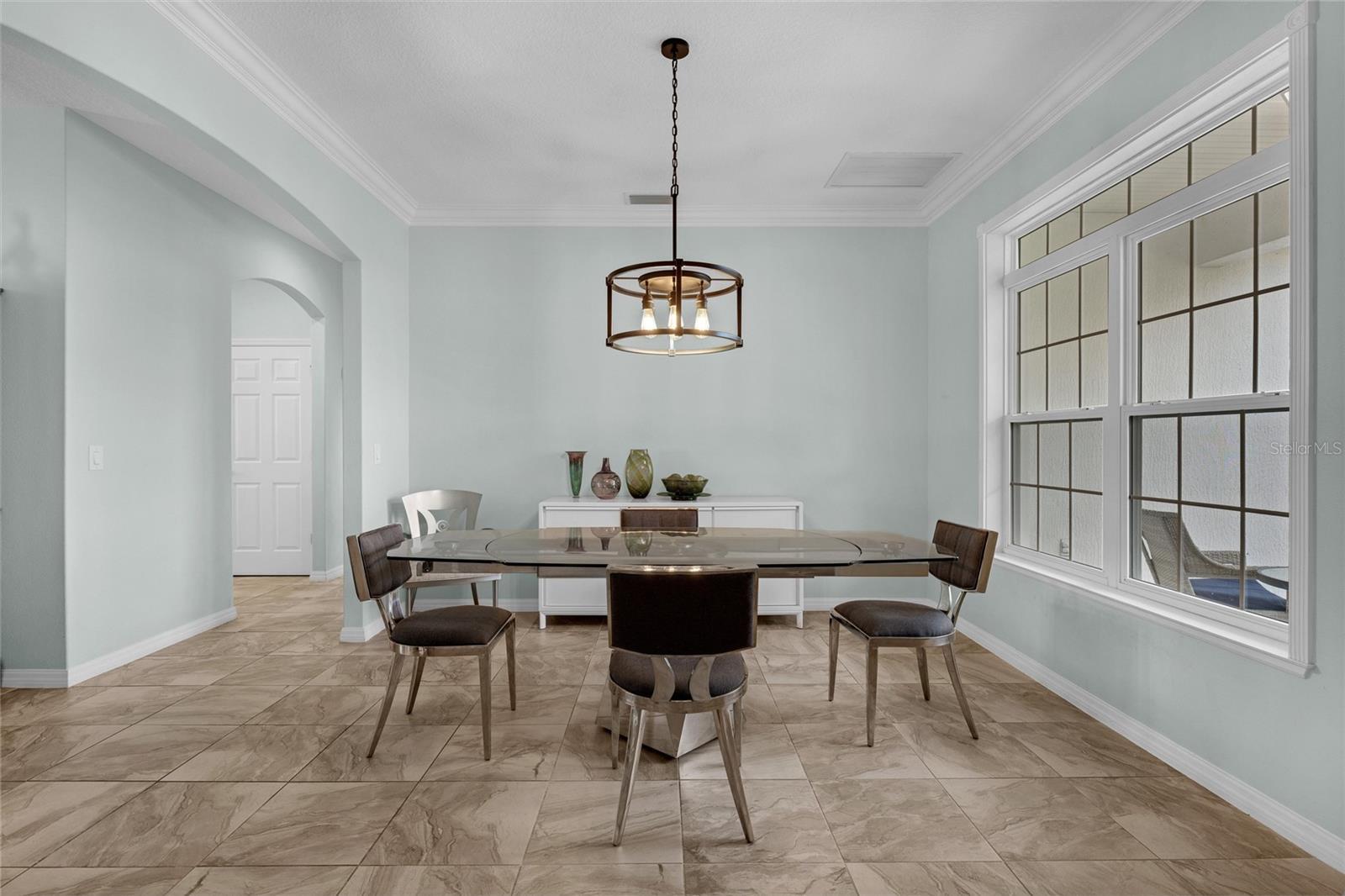- Ceiling Fans(s), Crown Molding, Dry Bar, High Ceilings, Kitchen/Family Room Combo, Living Room/Dining Room Combo, Open Floorplan, Primary Bedroom Main Floor, PrimaryBedroom Upstairs, Stone Counters, Thermostat, Window Treatments