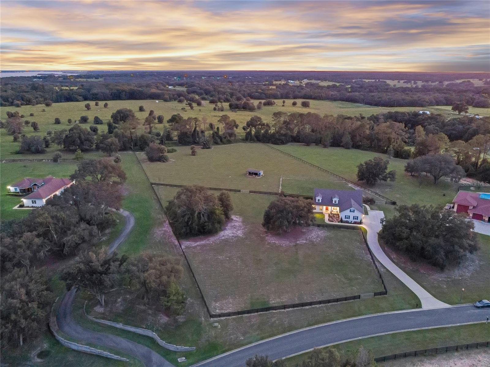 Welcome to luxurious living in the Saddle Ridge, in the heart of the horse community of Lake County Florida. This expansive 3,502-square-foot home offers a blend of comfort and elegance on over 4.5 pristine, fenced acres. Featuring two primary bedrooms, one conveniently located on the first floor and another upstairs, this home is well-suited for multi-generational living. The spacious layout includes five bedrooms, three full bathrooms, and an expansive screened-in back porch perfect for enjoying scenic sunset views. This home offers an ideal location with easy access to a wealth of attractions and conveniences. Just minutes from Grand Oaks Equestrian Center, golf courses, fishing lakes, and a variety of dining, shopping, and entertainment of The Villages plus, 30 miles from the Ocala World Equestrian Center. As the highest lot in Saddle Ridge, you’ll enjoy unparalleled privacy and a stunning view of the Ocala National Forest right from your front porch. This property ensures peace of mind and convenience with a Cummins Full Home Generator, a 500 gallon buried propane gas tank, and an 85 gallon well water tank that offers you limitless water for the entire property. Horse enthusiasts will appreciate the on-property barn and 3 independent horse paddocks plus a holding pen. Reside in a low-cost HOA, gated community that embraces equestrian living. Saddle Ridge allows for a harmonious blend of tranquility and community features, making it an ideal home for those seeking space and serenity. This property is an exceptional find for those searching for a spacious home in a gated community that accommodates horses, offers beautiful sunrise and sunset views, and provides modern conveniences like a full-home generator. Make it your sanctuary today in the heart of Lake County, Florida.
